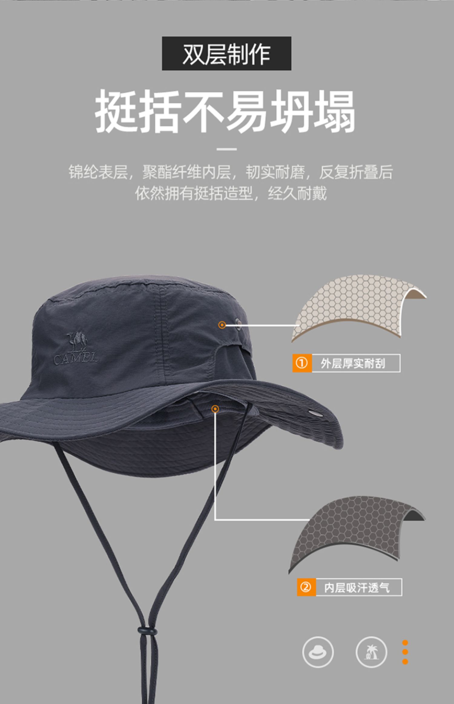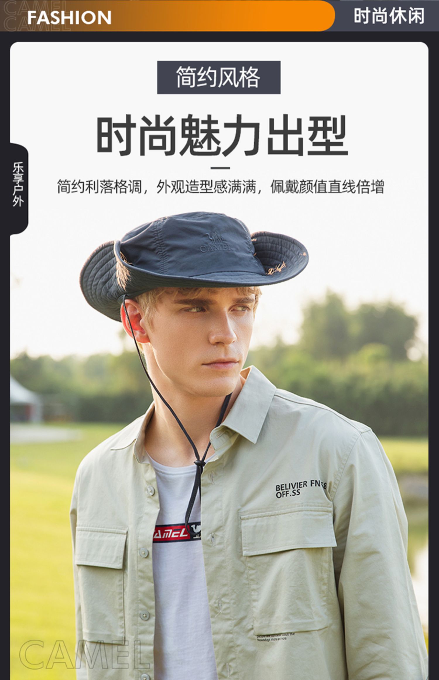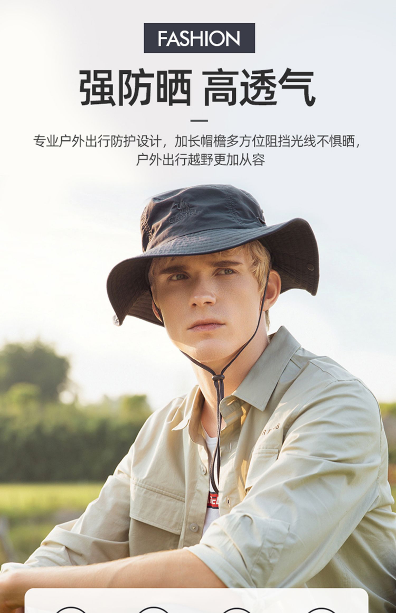 骆驼户外防晒渔夫帽男女夏速干遮阳骑车登山沙滩太阳钓鱼帽子春秋 A0W3M2115-1_A1S3PY101_A0W3K3130_A1S3E3111