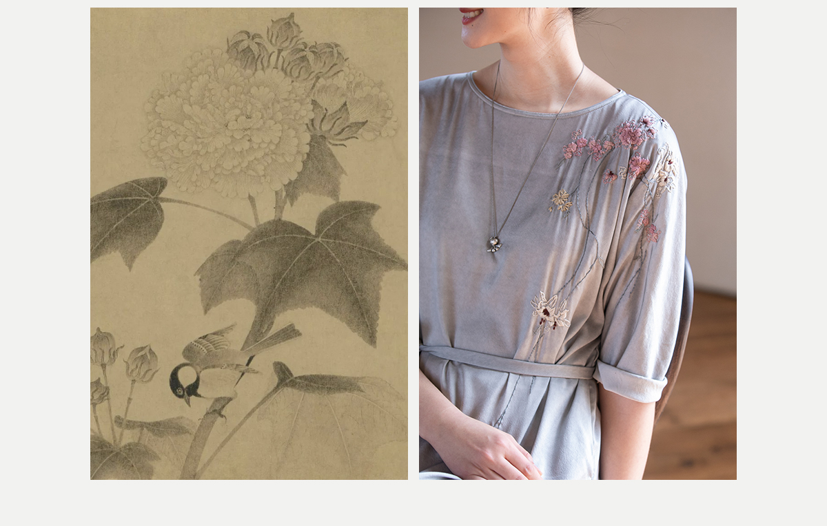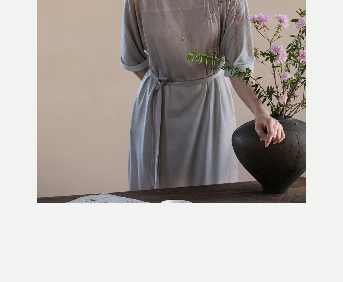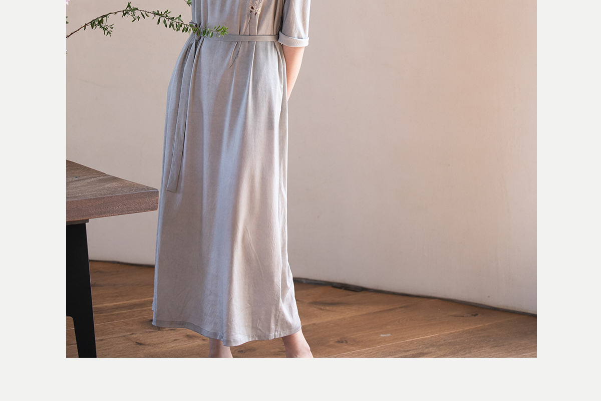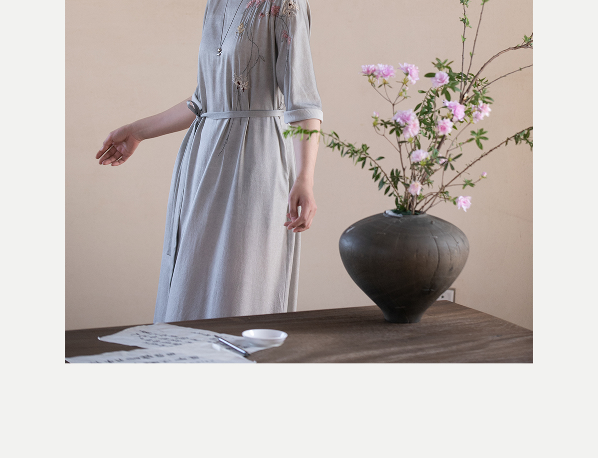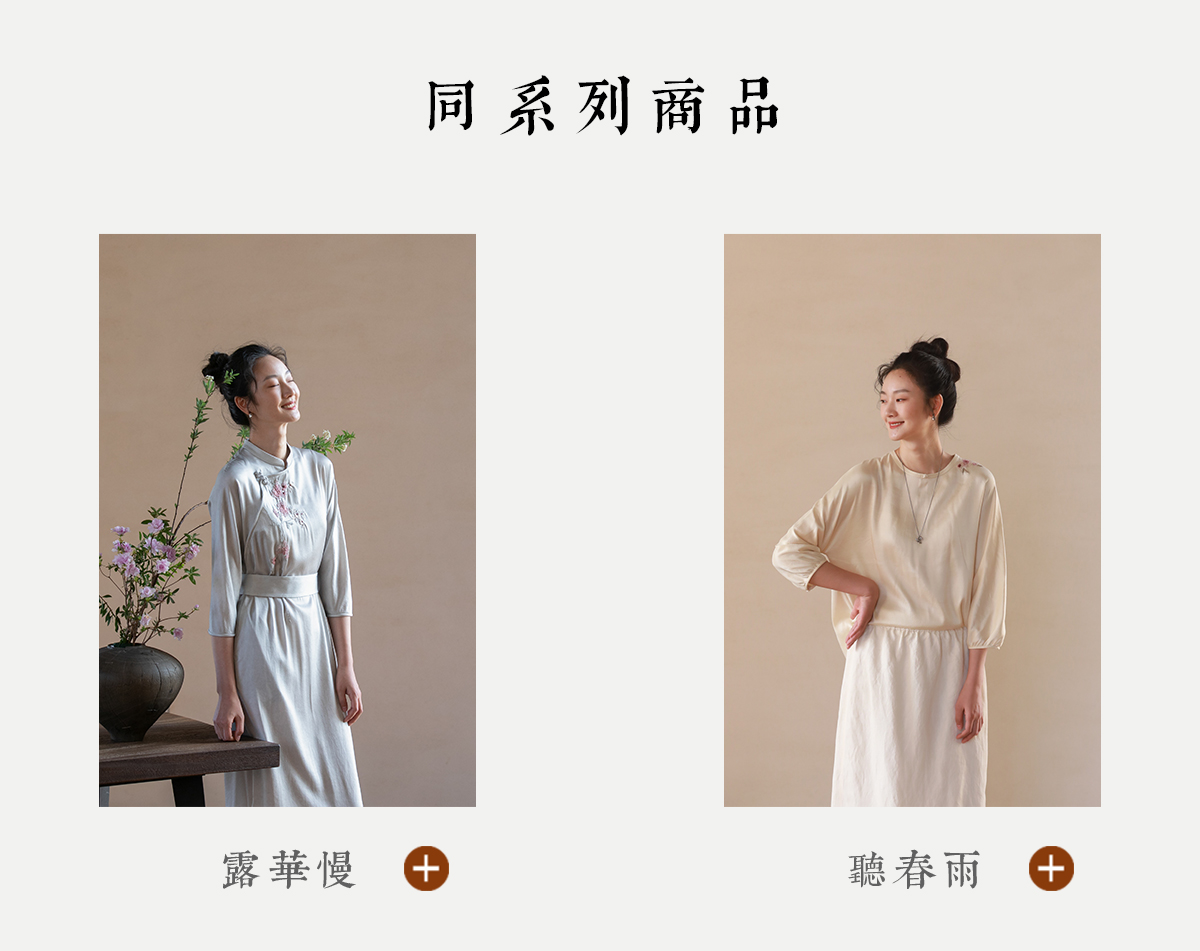 牧衣游原创 手工刺绣重磅真丝炒色连衣裙轻薄圆领宽松长裙 笙调