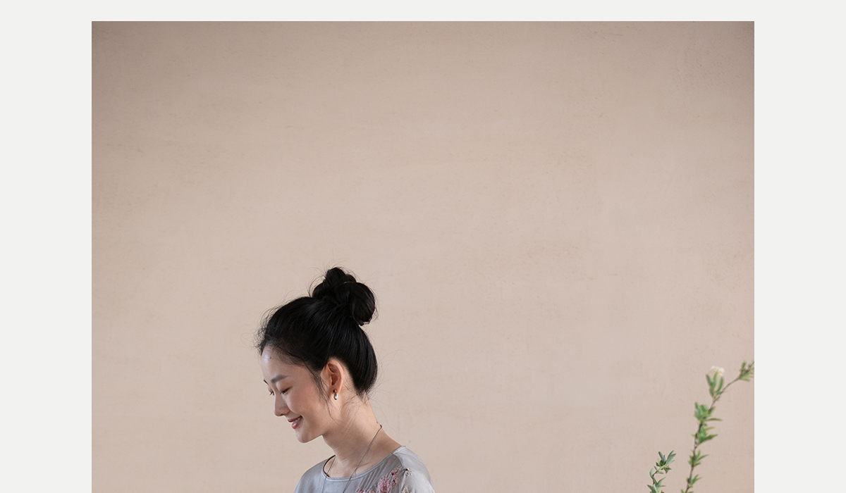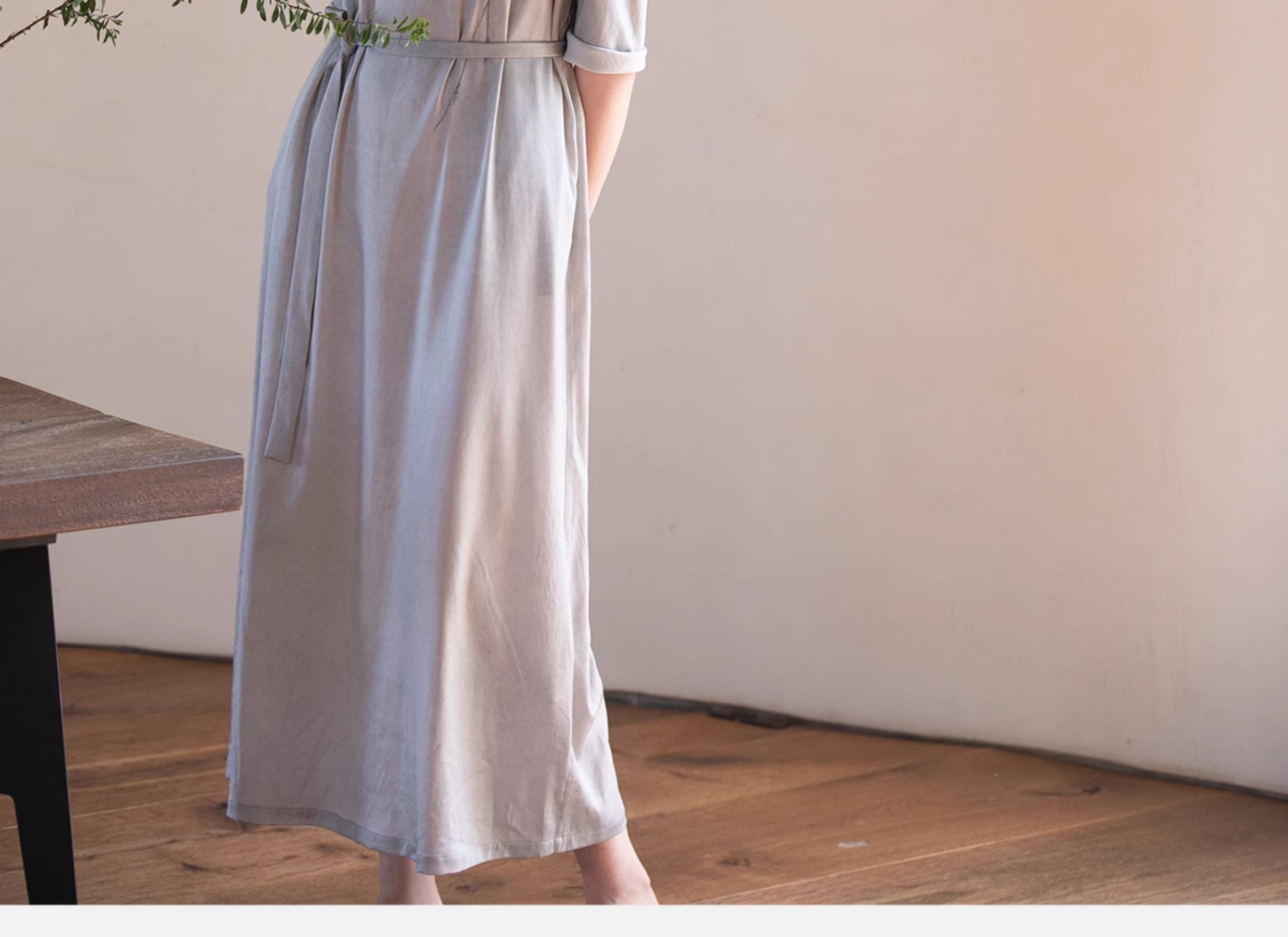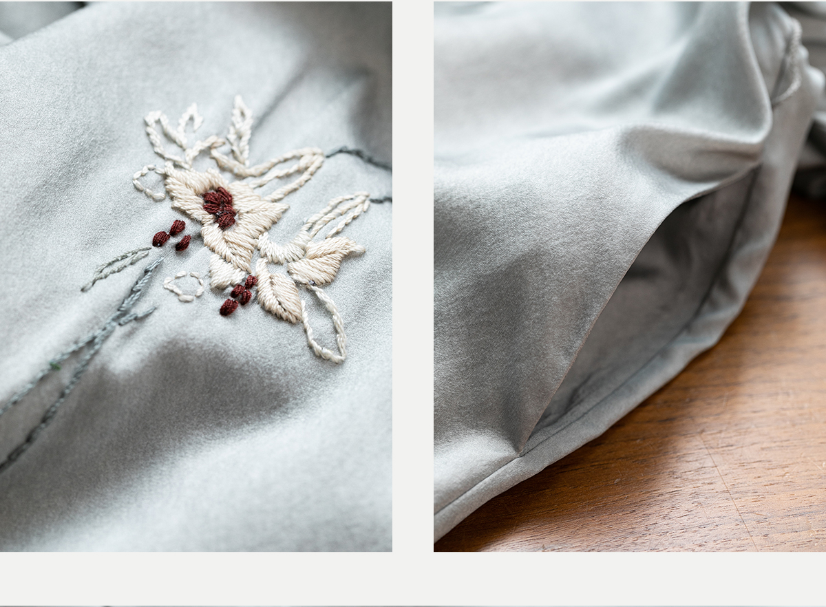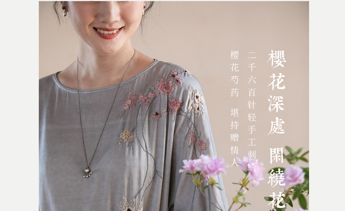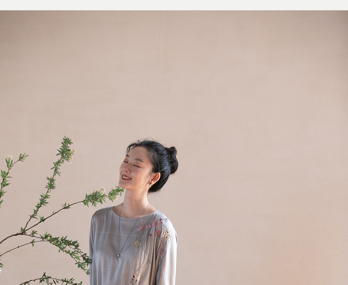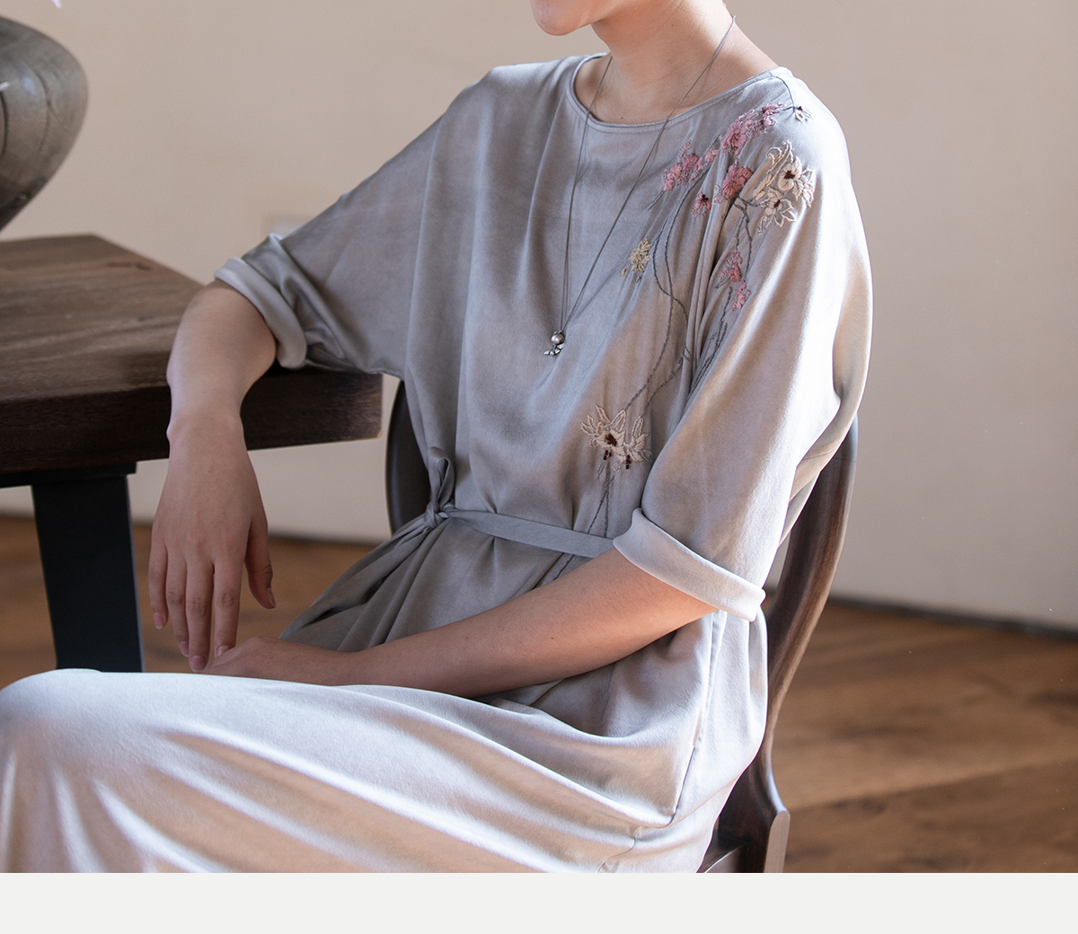 牧衣游原创 手工刺绣重磅真丝炒色连衣裙轻薄圆领宽松长裙 笙调