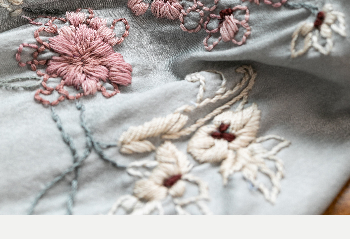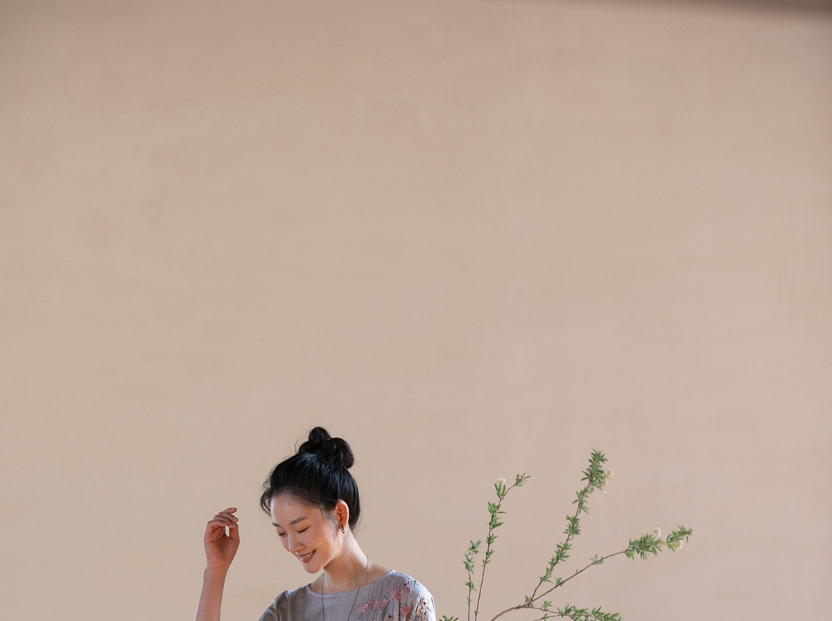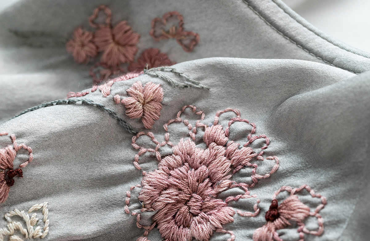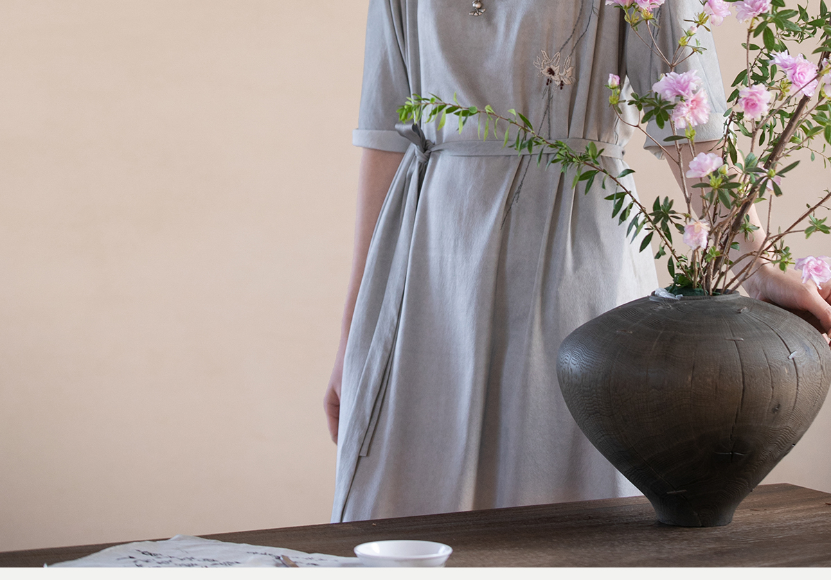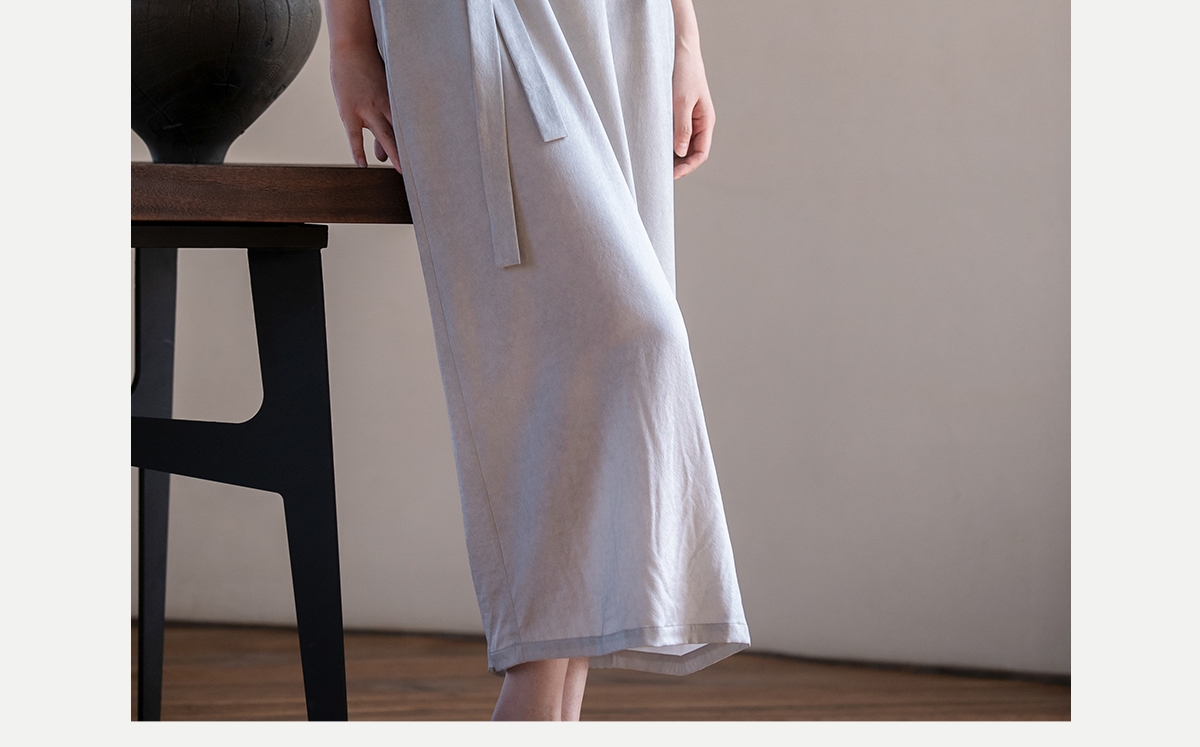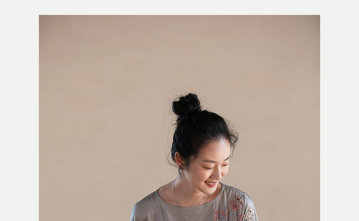 牧衣游原创 手工刺绣重磅真丝炒色连衣裙轻薄圆领宽松长裙 笙调