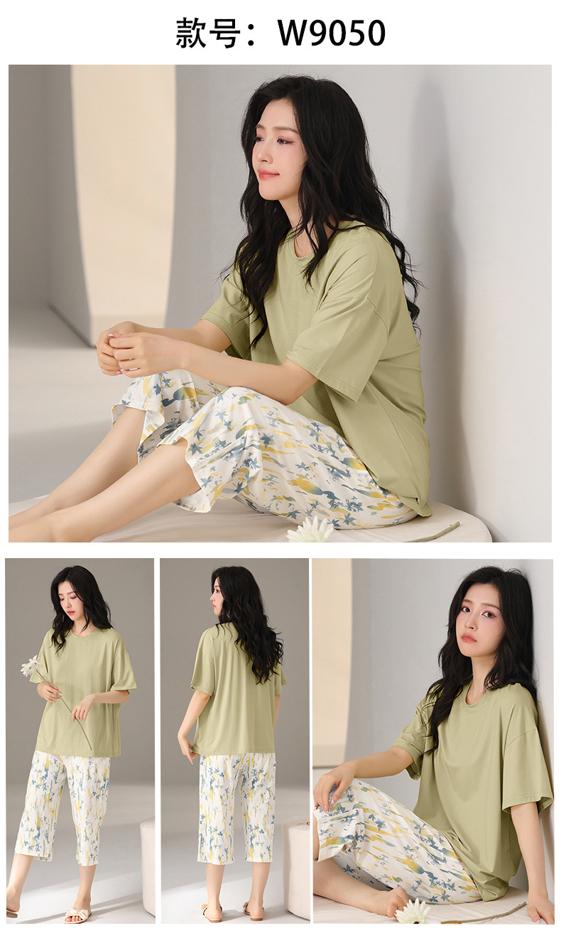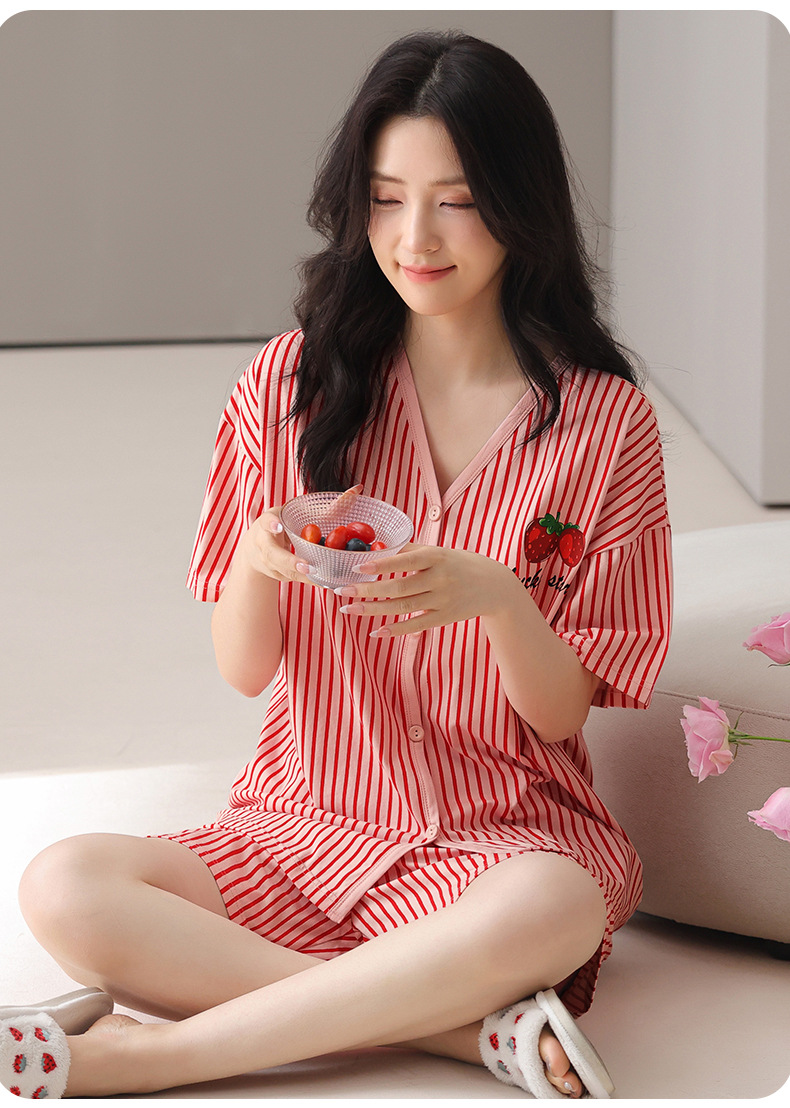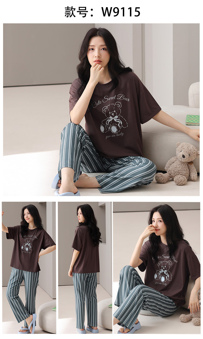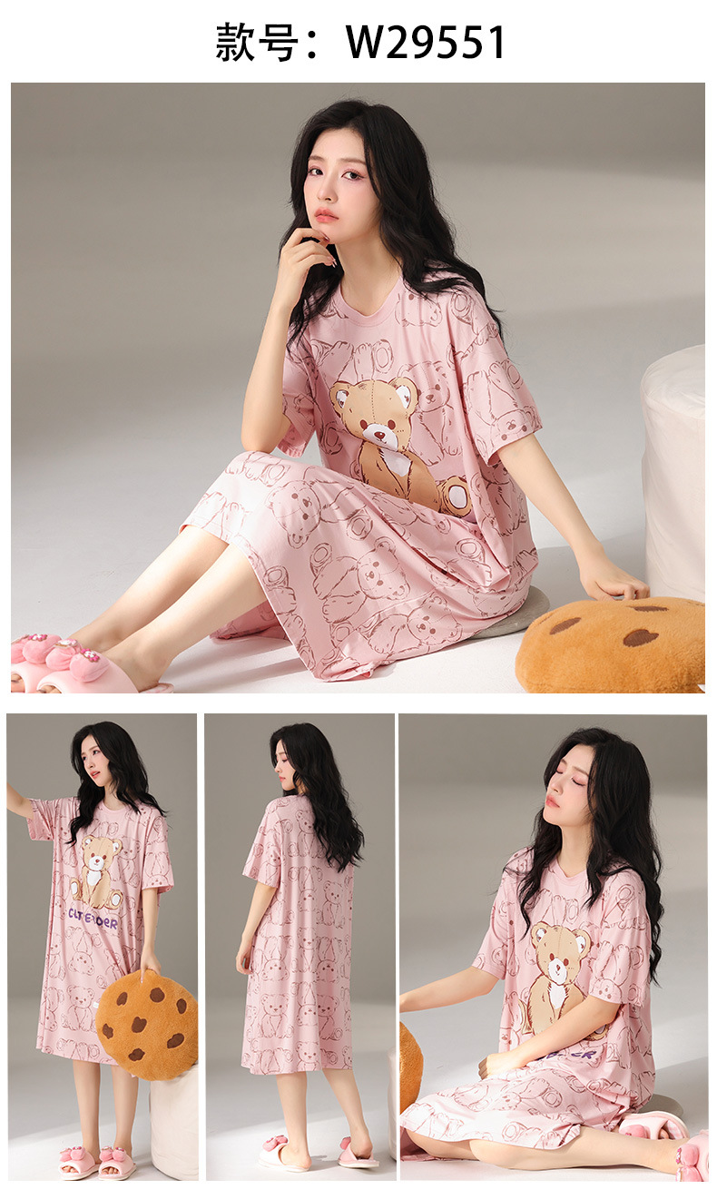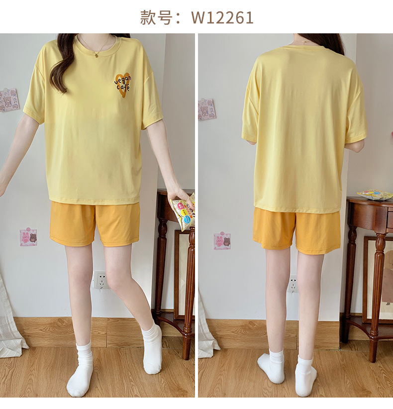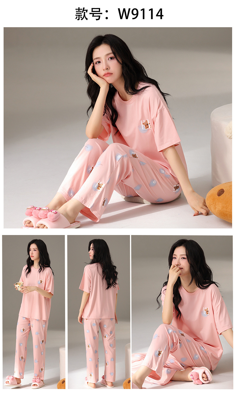 莫代尔棉质短袖睡衣女夏季薄款带胸垫甜美少女学生圆领夏天家居服