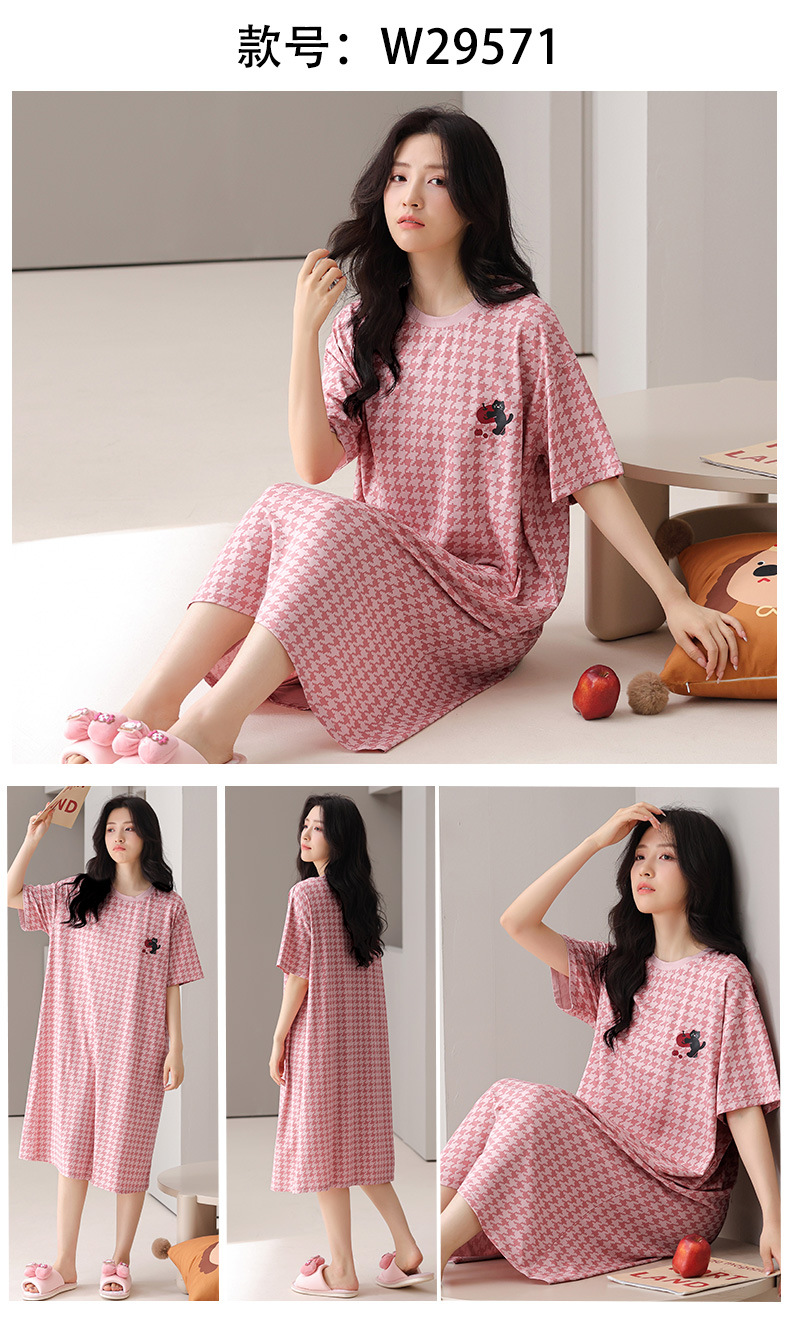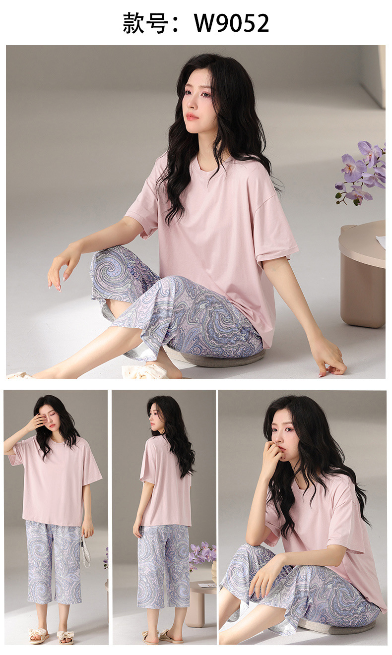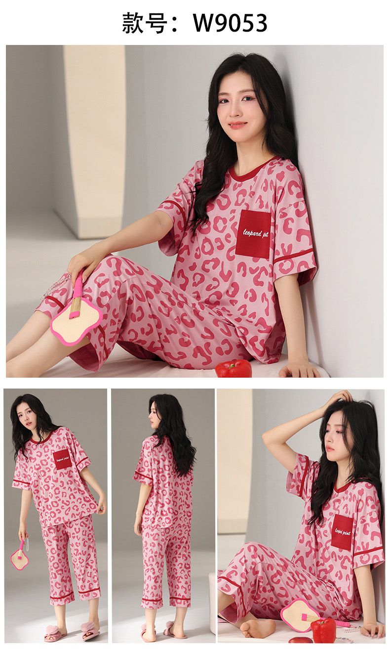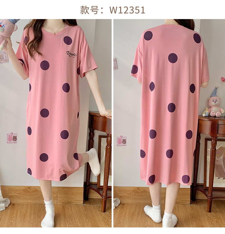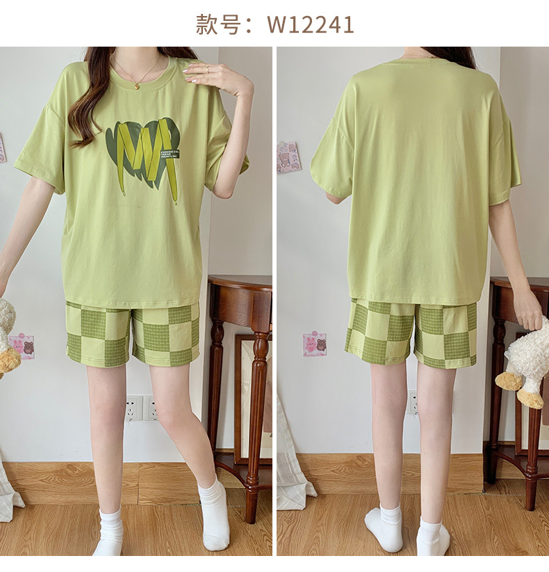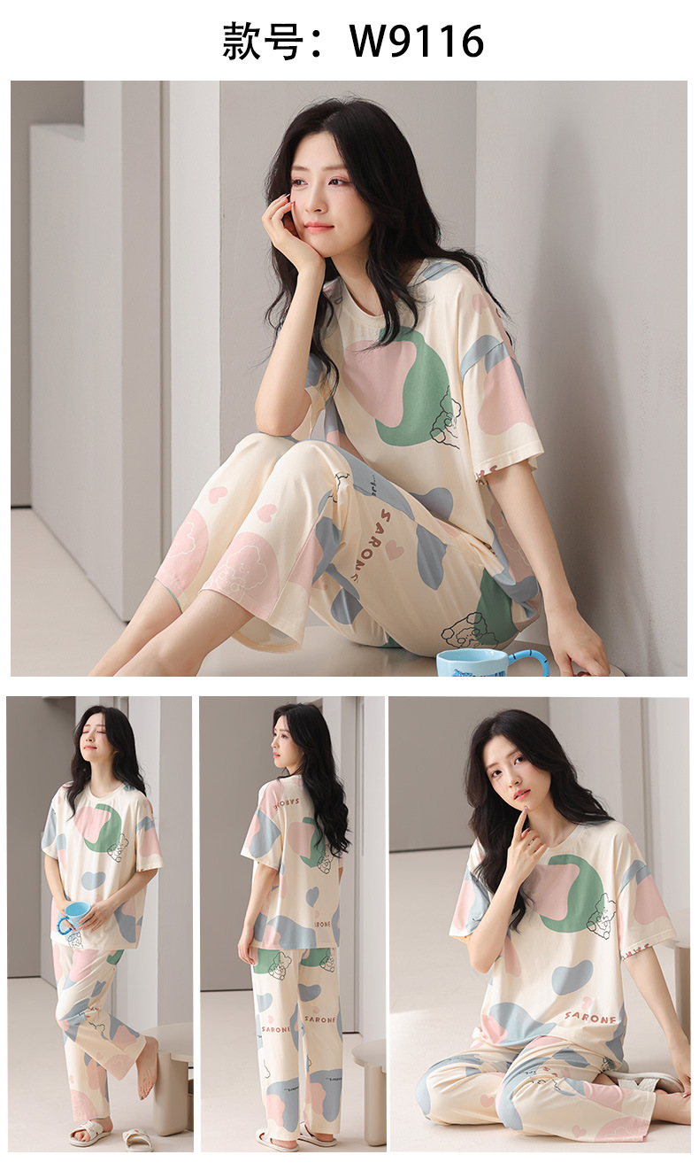 莫代尔棉质短袖睡衣女夏季薄款带胸垫甜美少女学生圆领夏天家居服