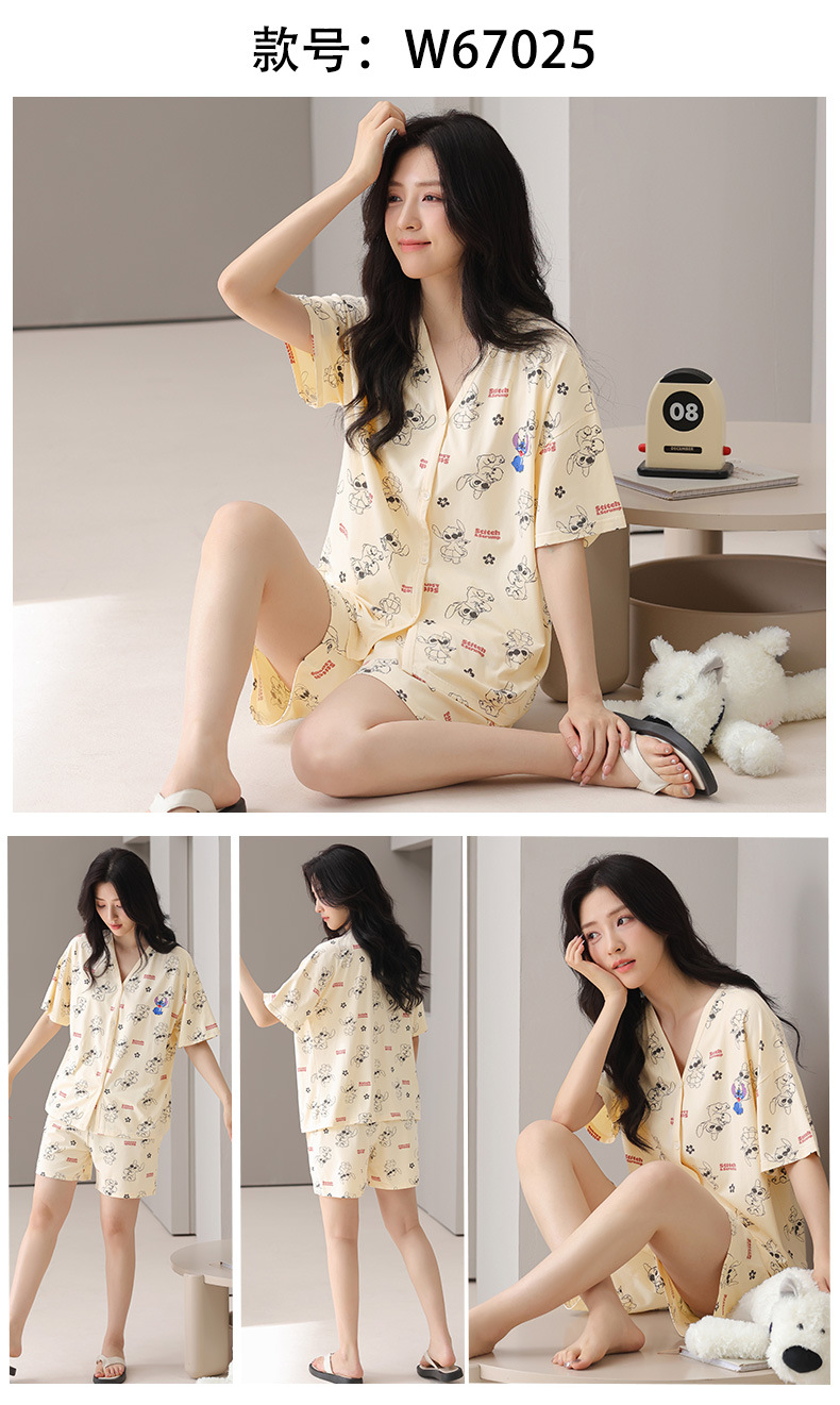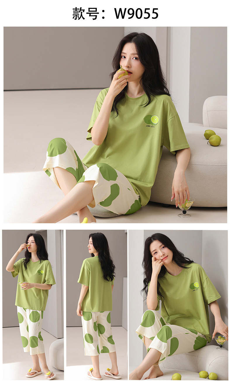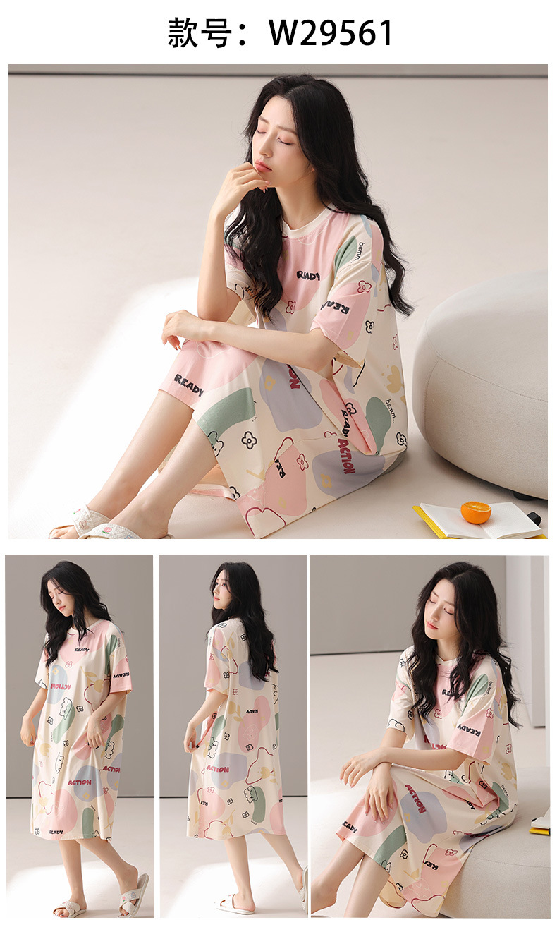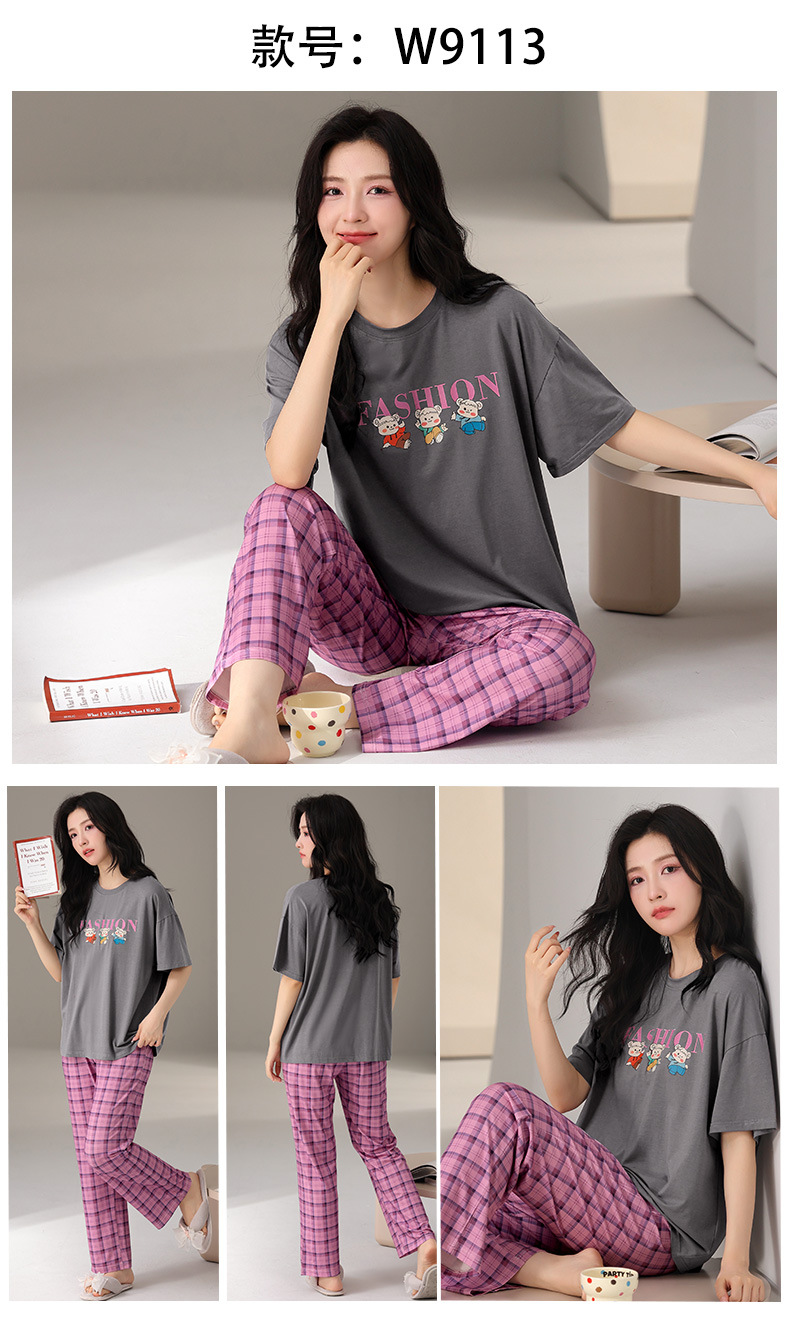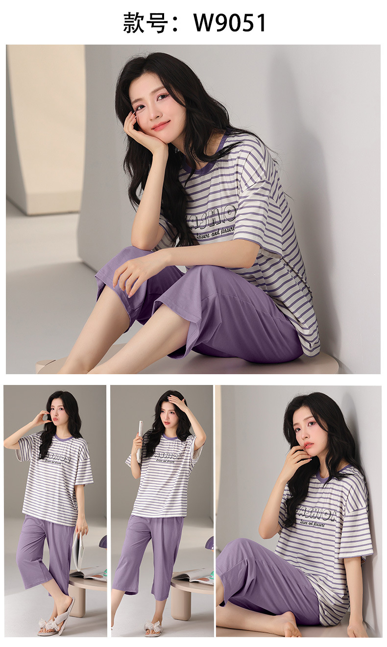 莫代尔棉质短袖睡衣女夏季薄款带胸垫甜美少女学生圆领夏天家居服