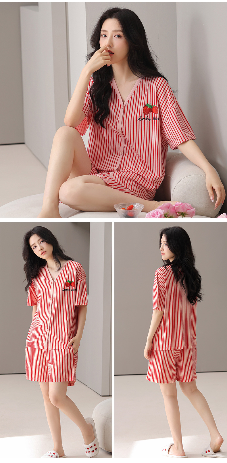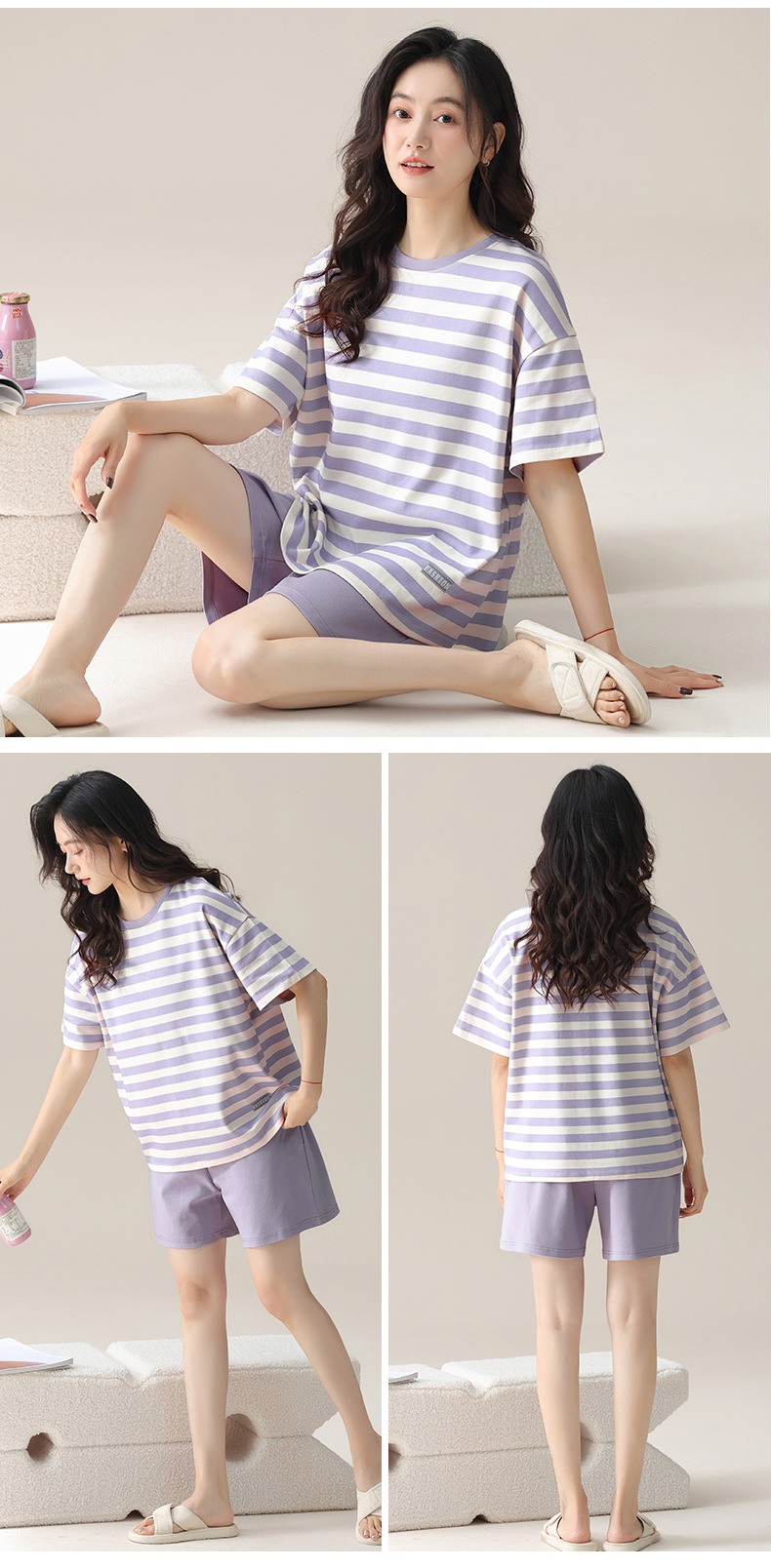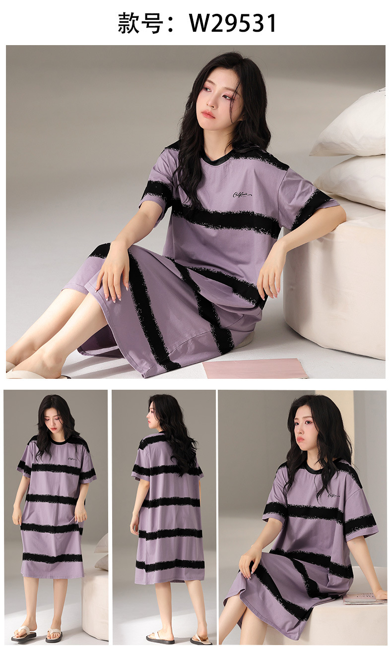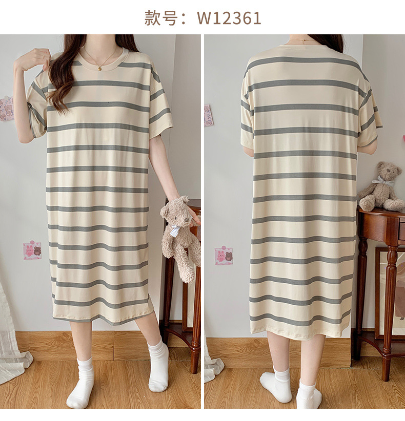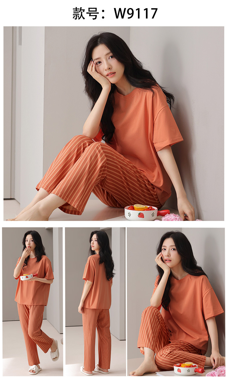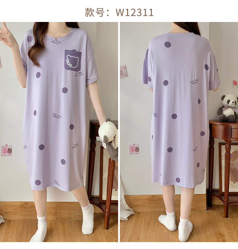 莫代尔棉质短袖睡衣女夏季薄款带胸垫甜美少女学生圆领夏天家居服