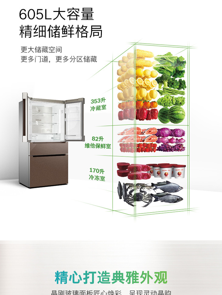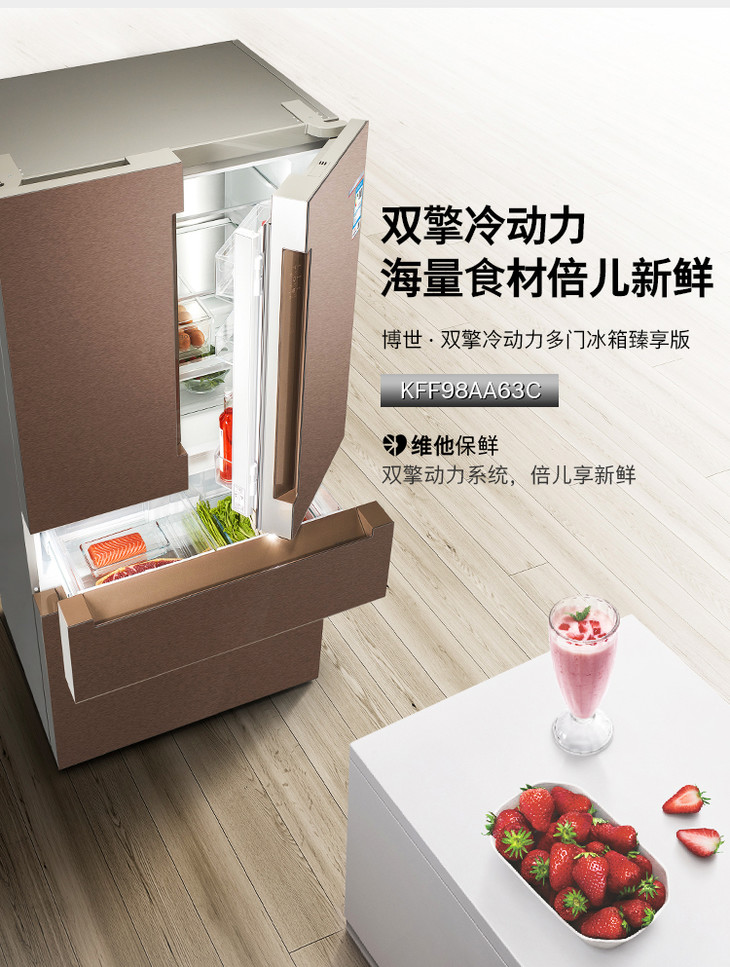 博世 BCD-605W(KFF98AA63C) 605升多门冰箱家用变频法式四门电冰箱 无霜零度维他保鲜