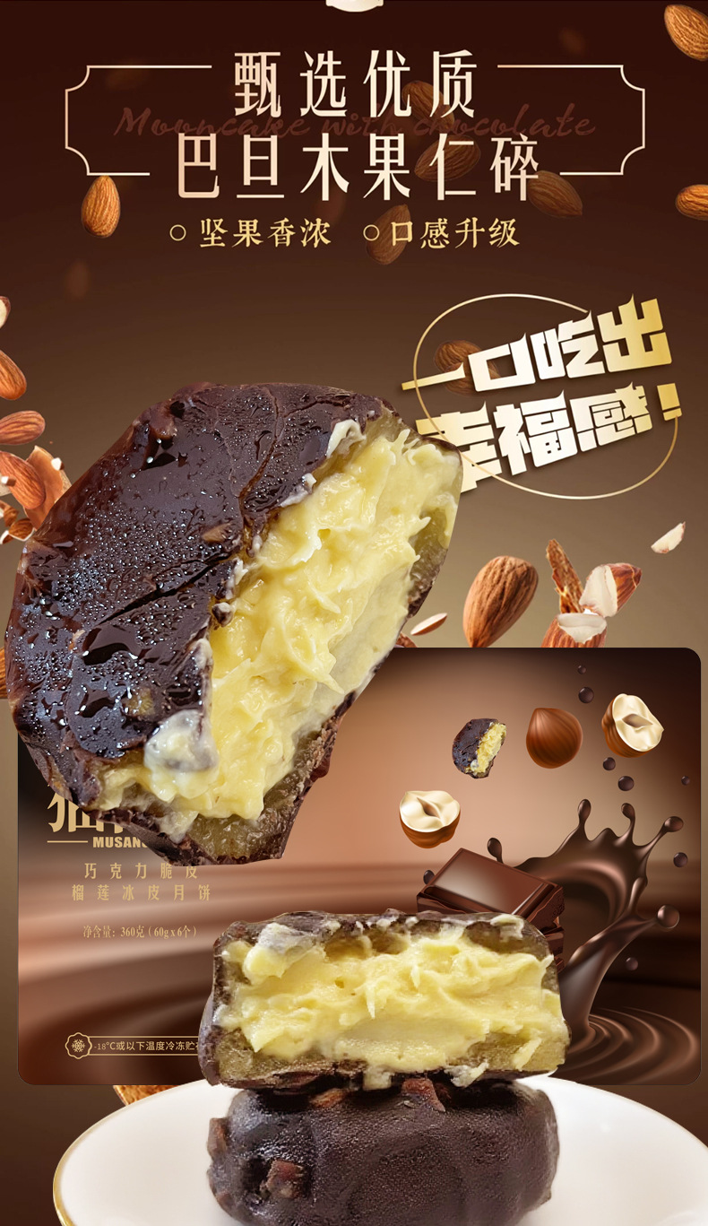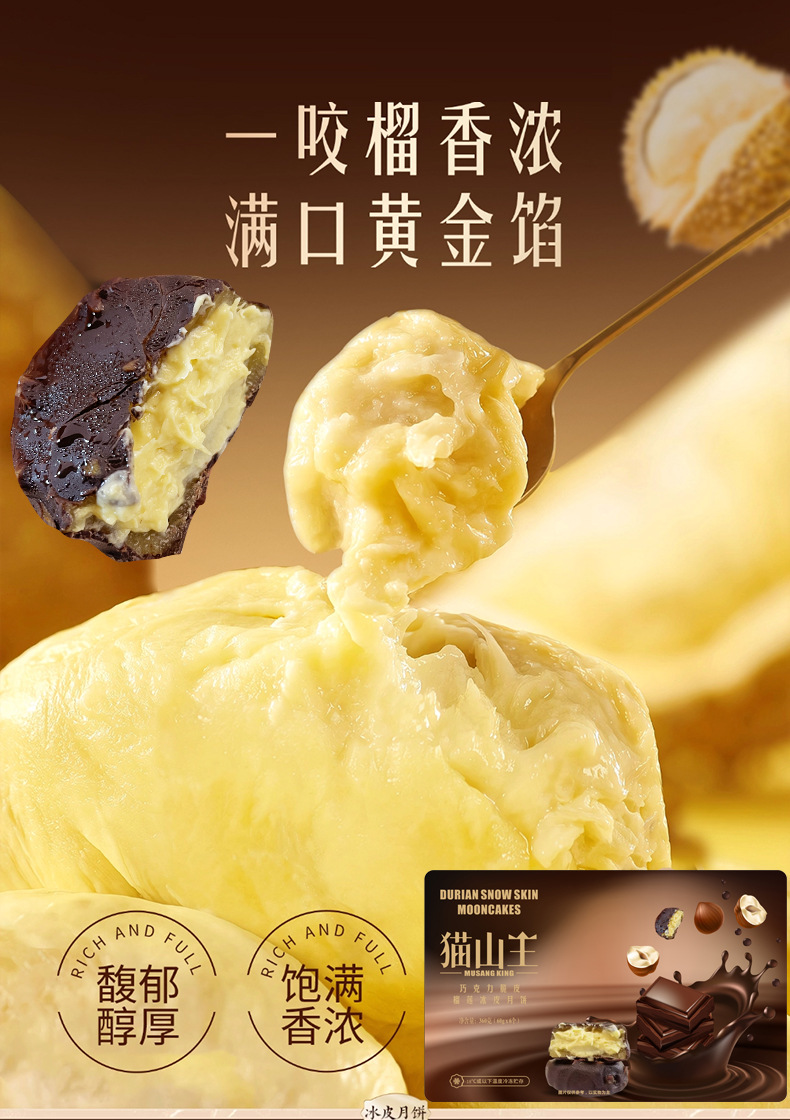 巧克力脆皮榴莲冰皮月饼礼盒装猫山王榴莲味流心月饼中秋礼品新款新品2025新款