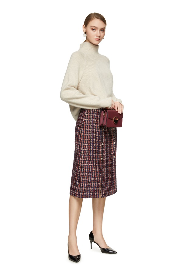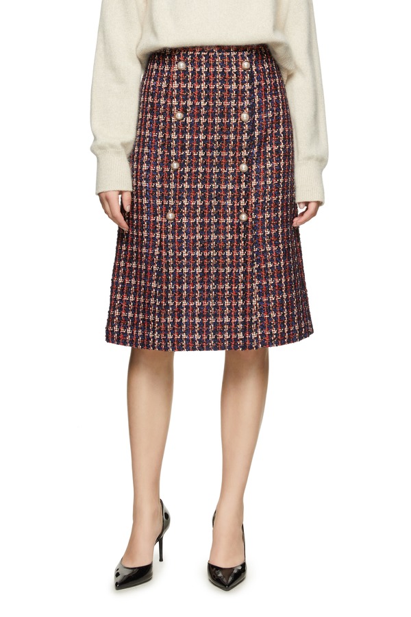 SUMMER & SAGE 小香风双排扣开衩半裙 8611