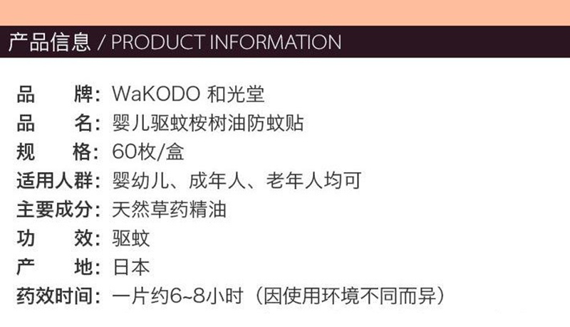和光堂婴儿驱蚊桉树油防蚊贴 60枚
