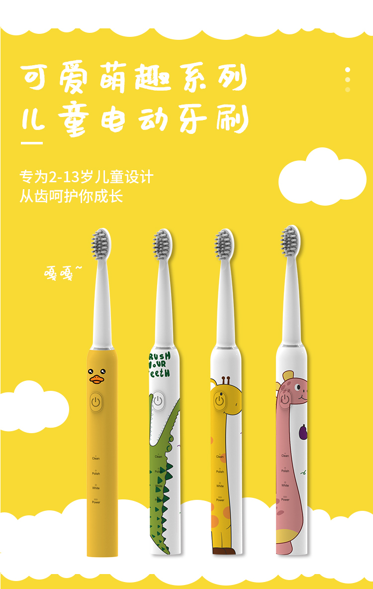 德国铂瑞 | BR-CH905儿童卡通声波电动牙刷 USB充电声