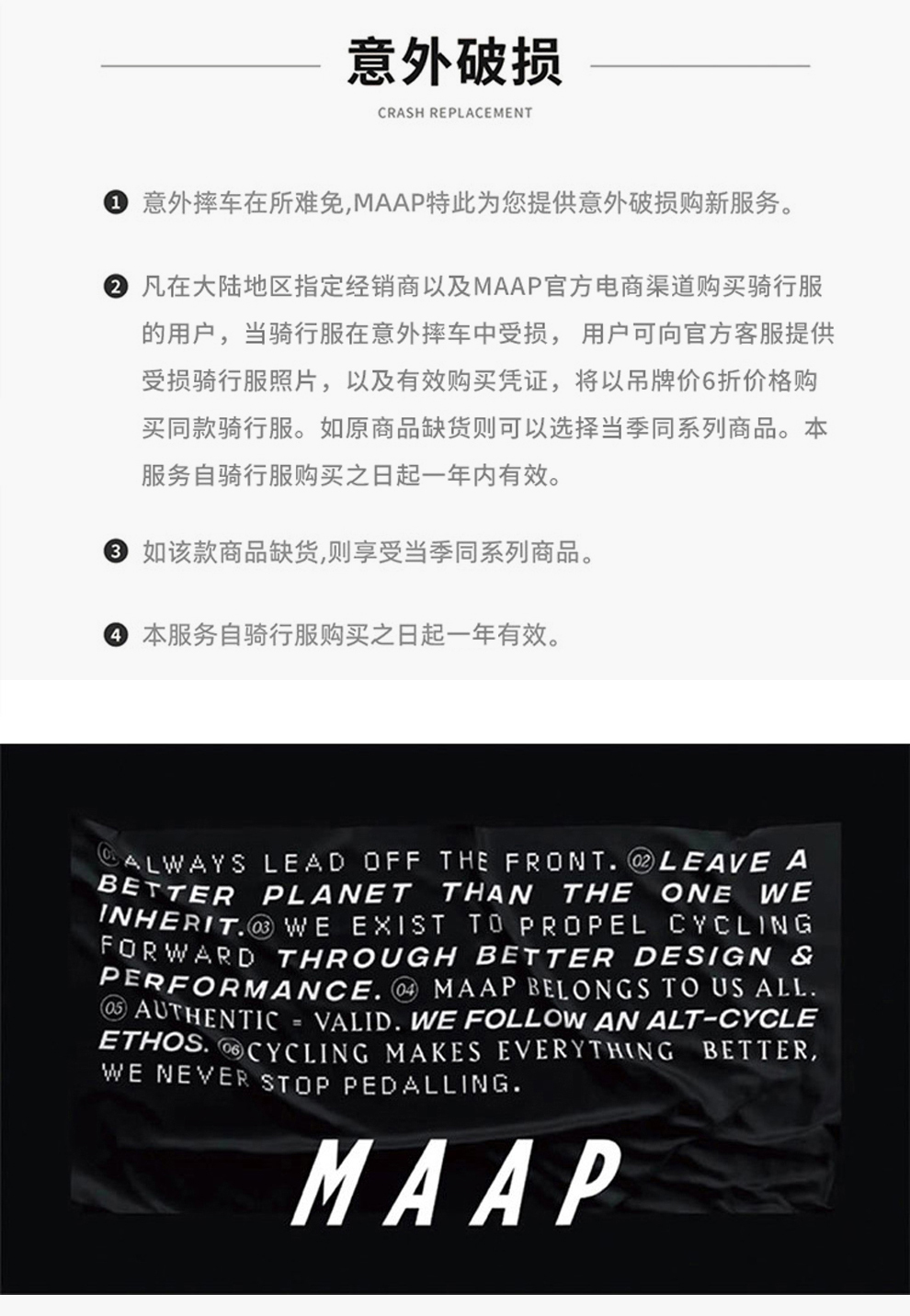 - MAAP作为澳洲功能性骑行服,其出色的时尚设计元素为骑行生活增添色彩。MAAP在为专业车手提升性能表现方面也毫不妥协。