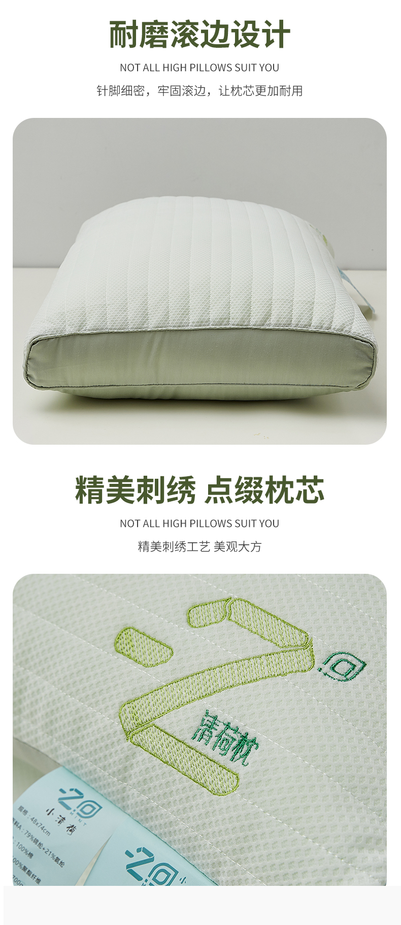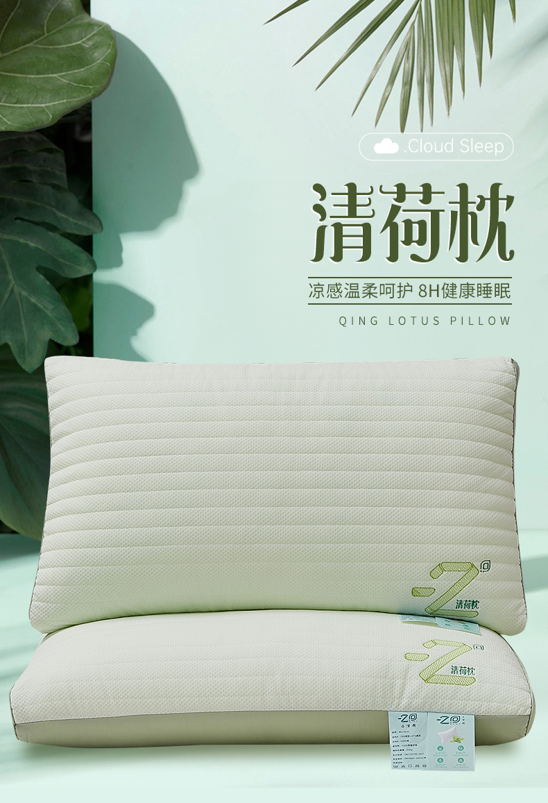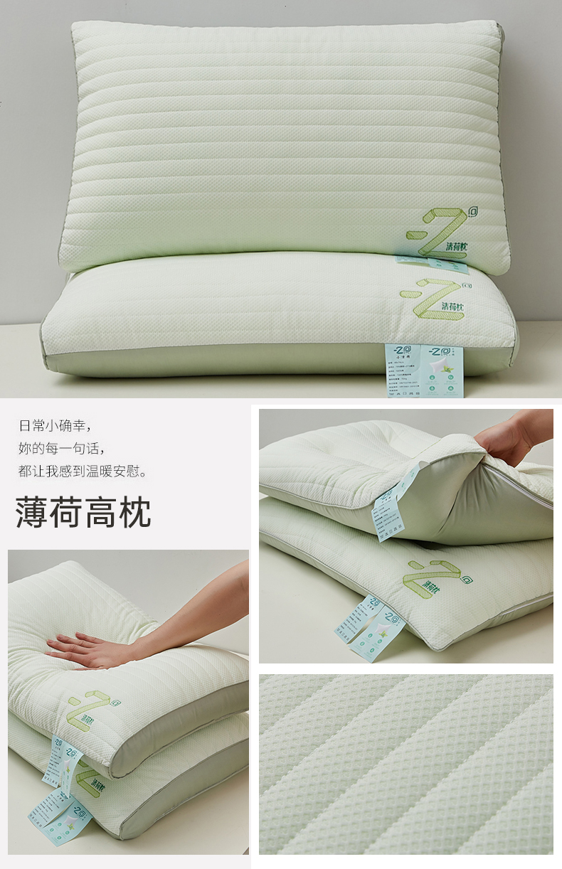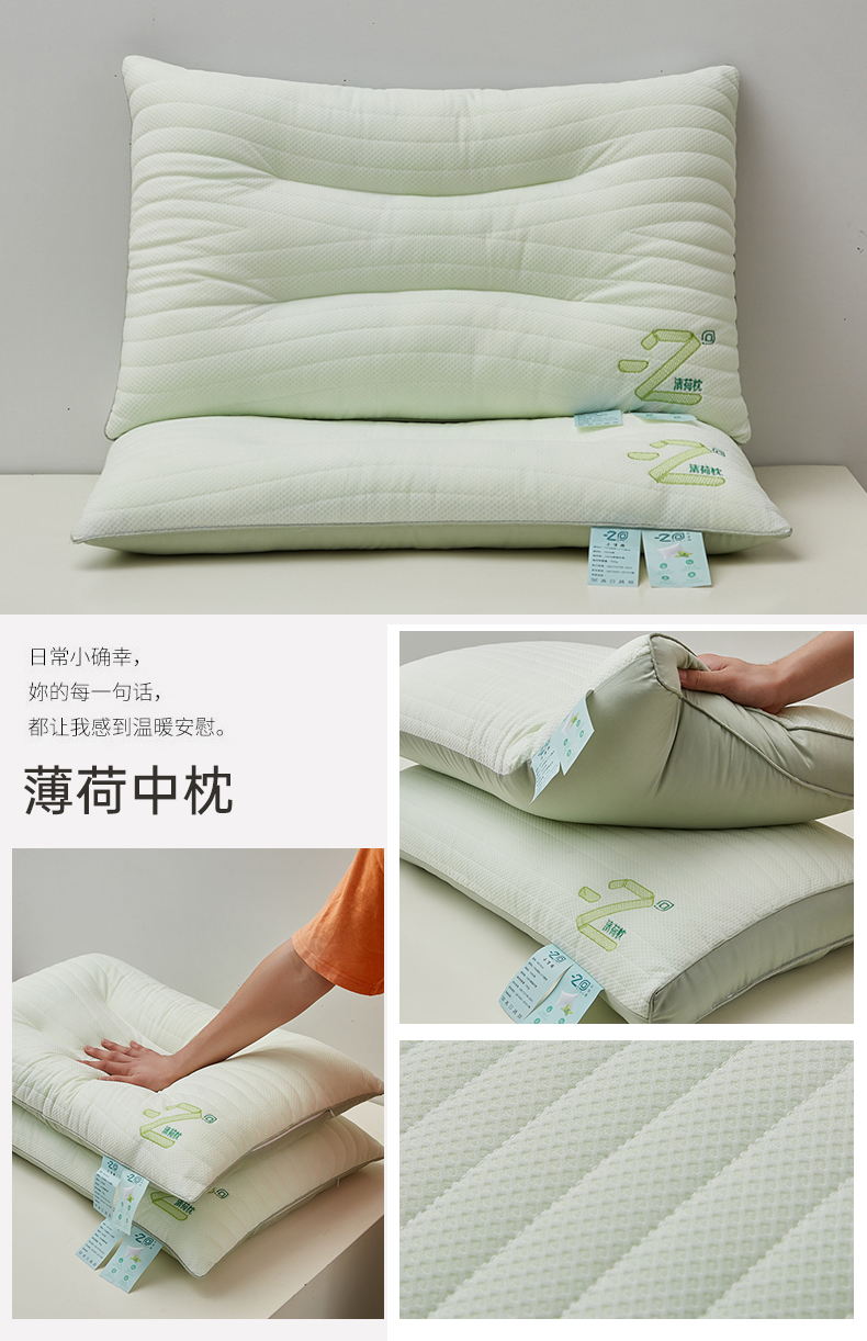 【下架】自然醒针织网眼清荷枕头枕芯护颈椎助睡眠清新薄荷刺绣枕夏季枕芯一对家用宿舍单人枕LK
