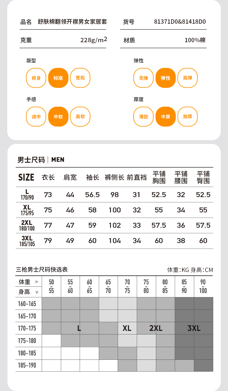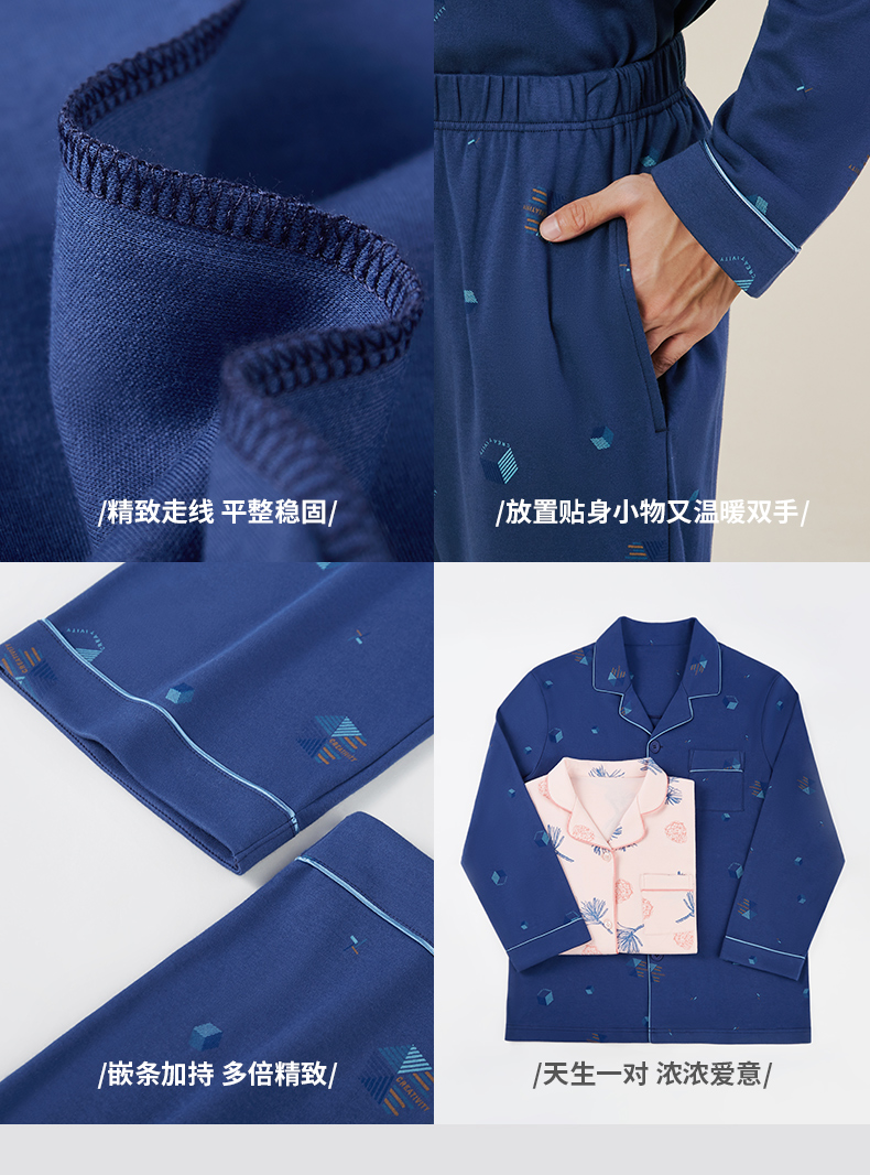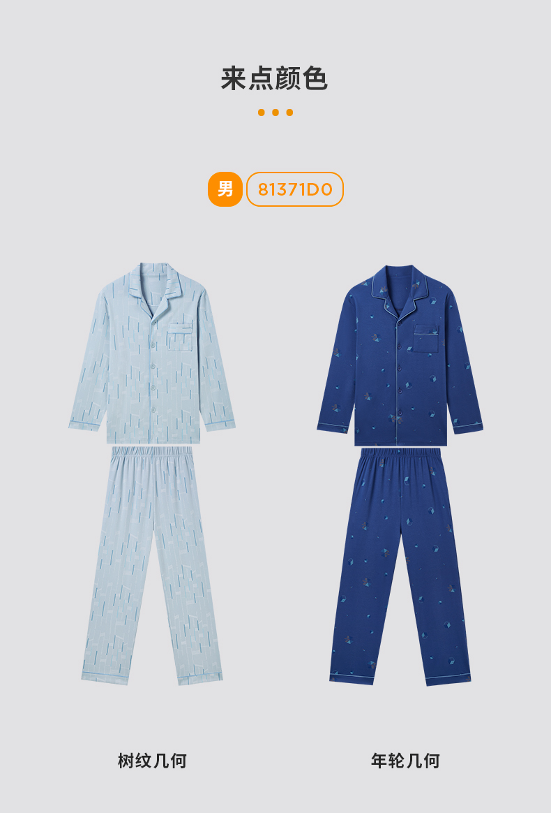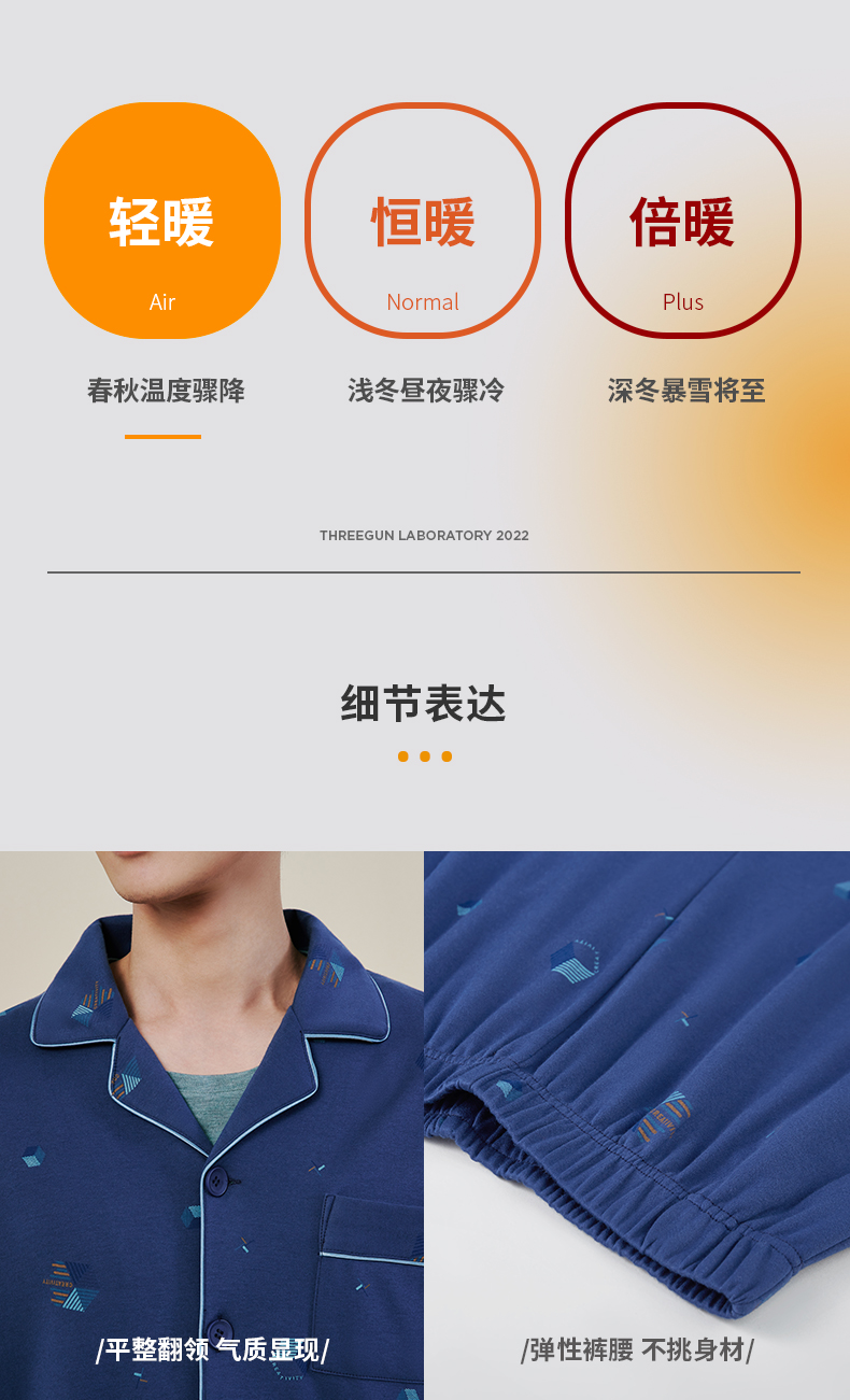 Threegun三枪 【舒肤棉】翻领开襟男士家居套家居服-81371D011