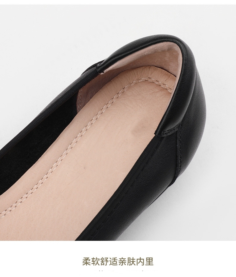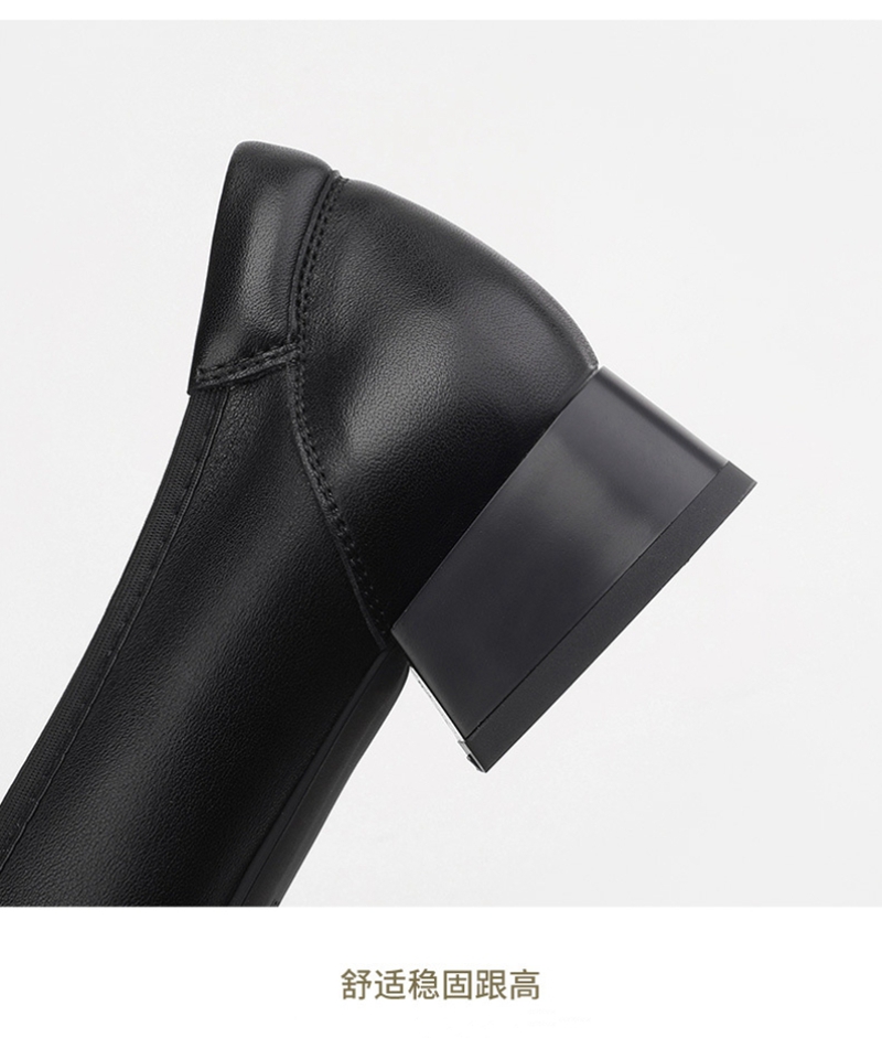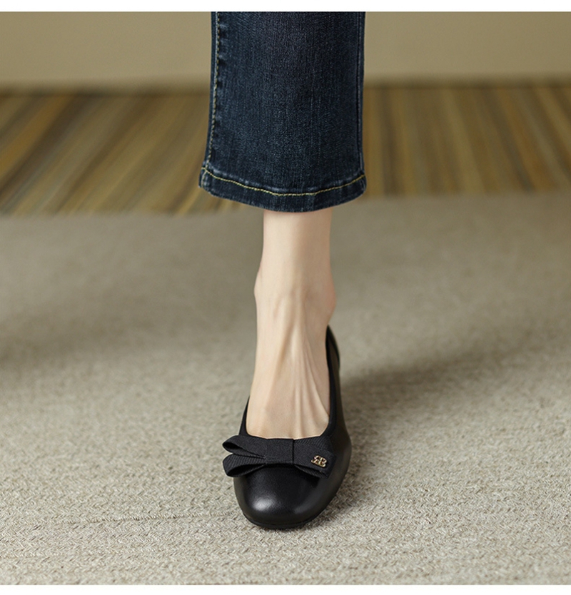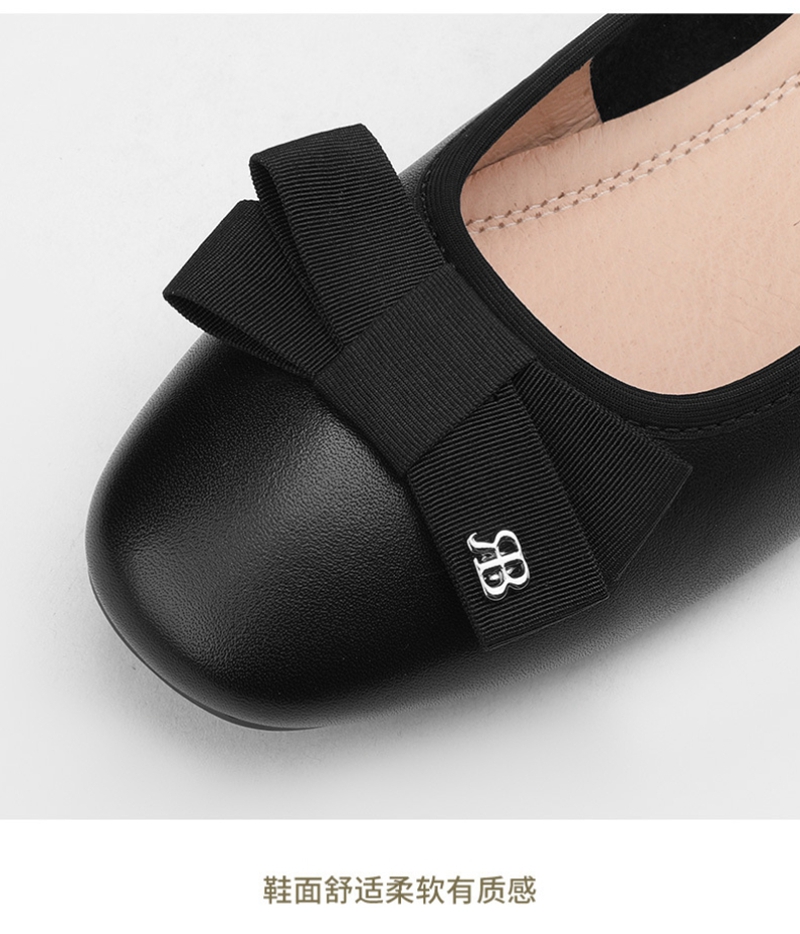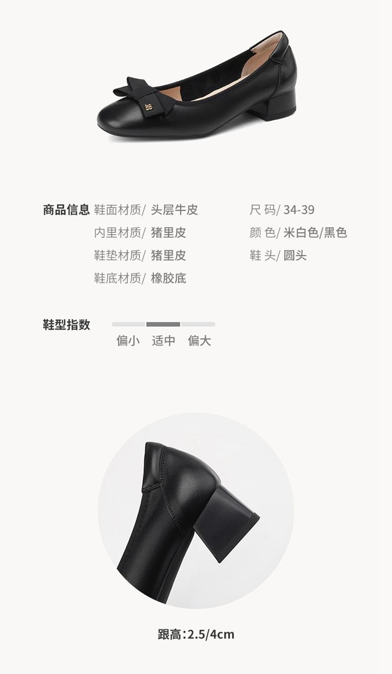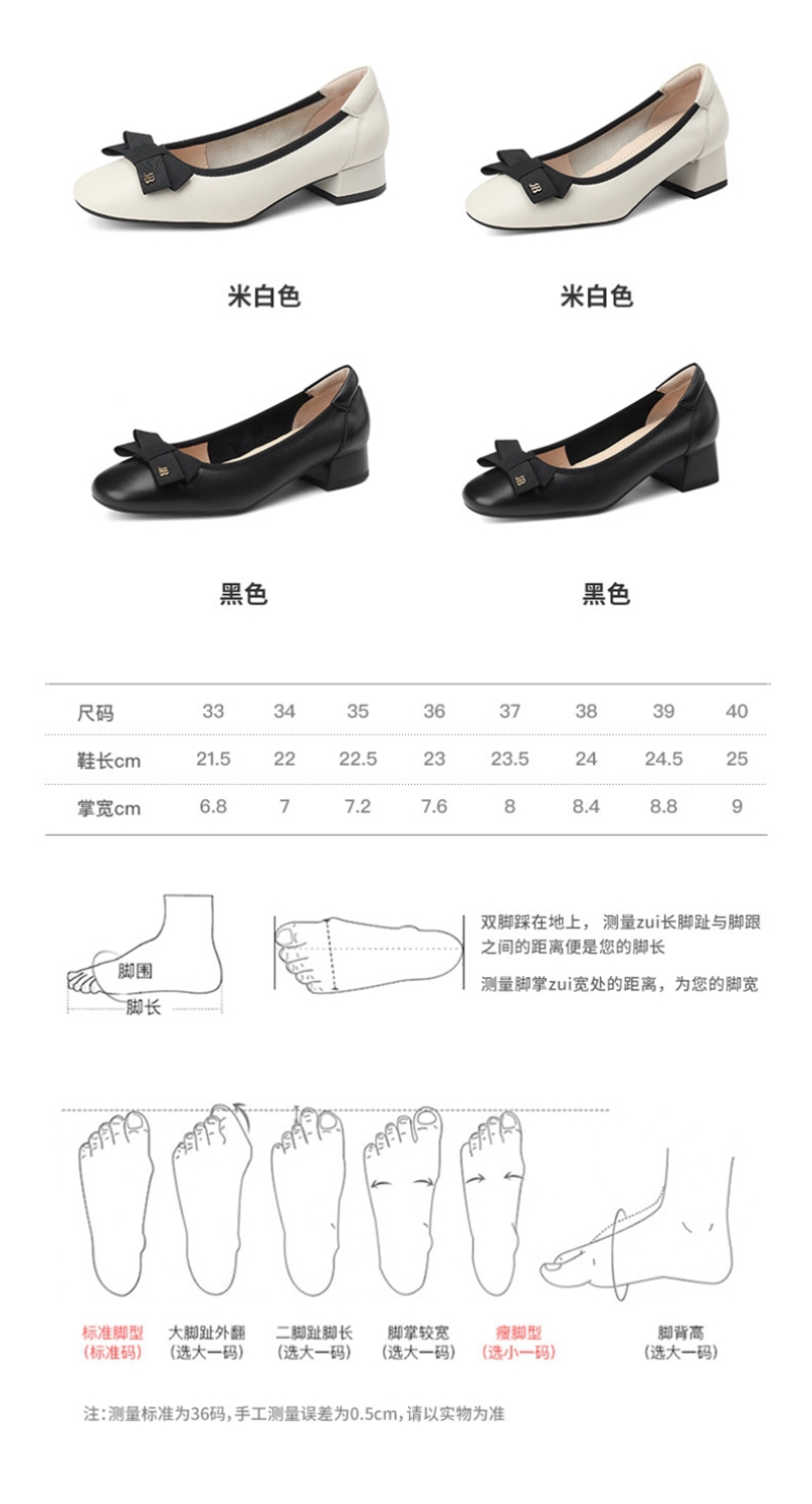 初秋新品头层牛皮方头低帮蝴蝶结浅口粗跟中跟皮鞋