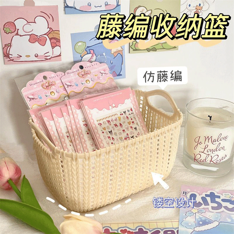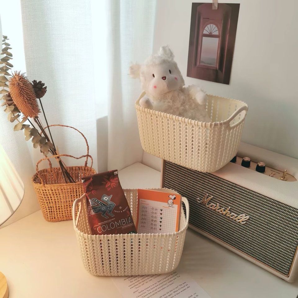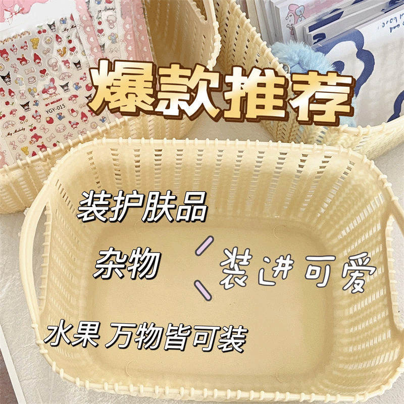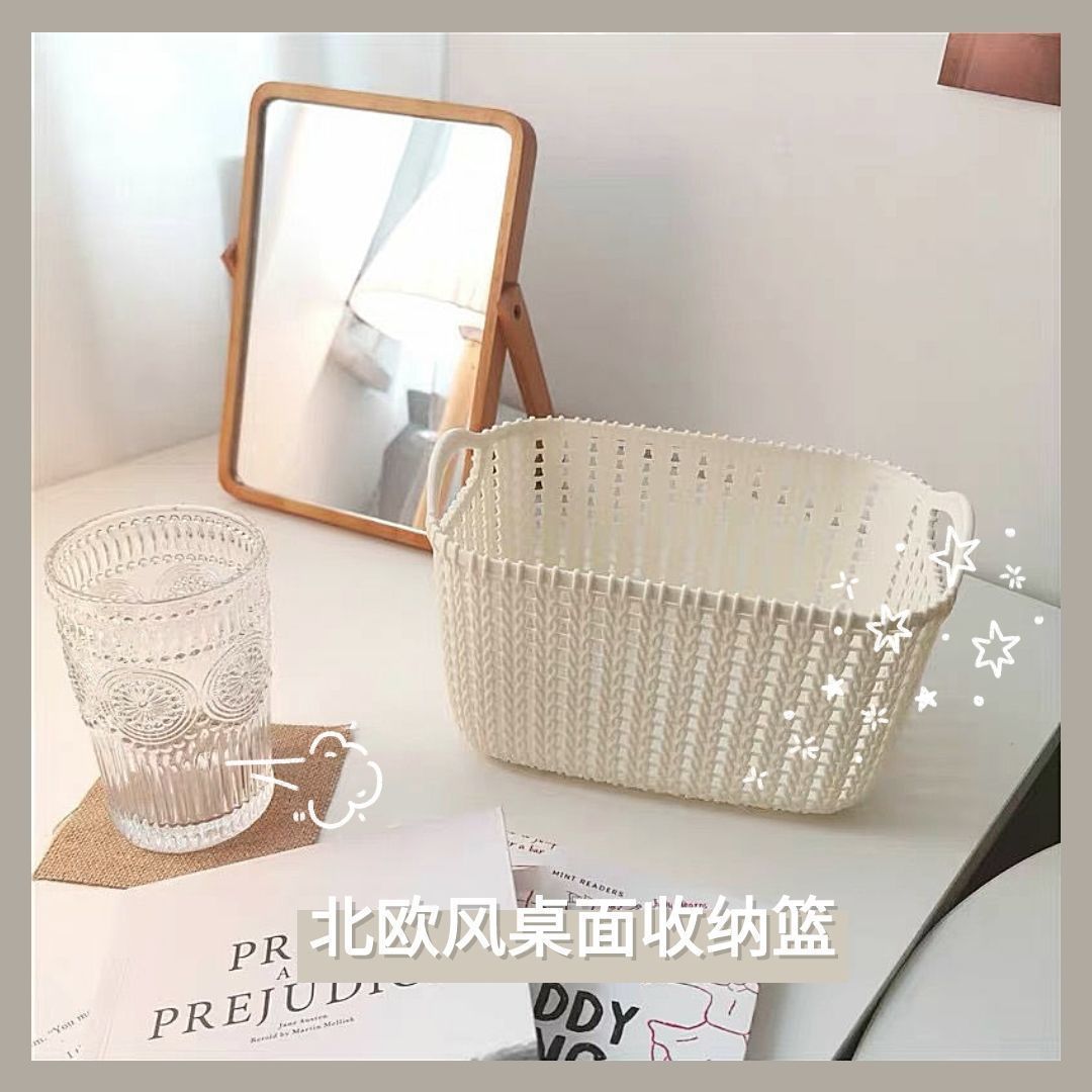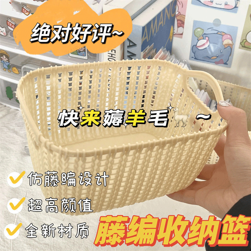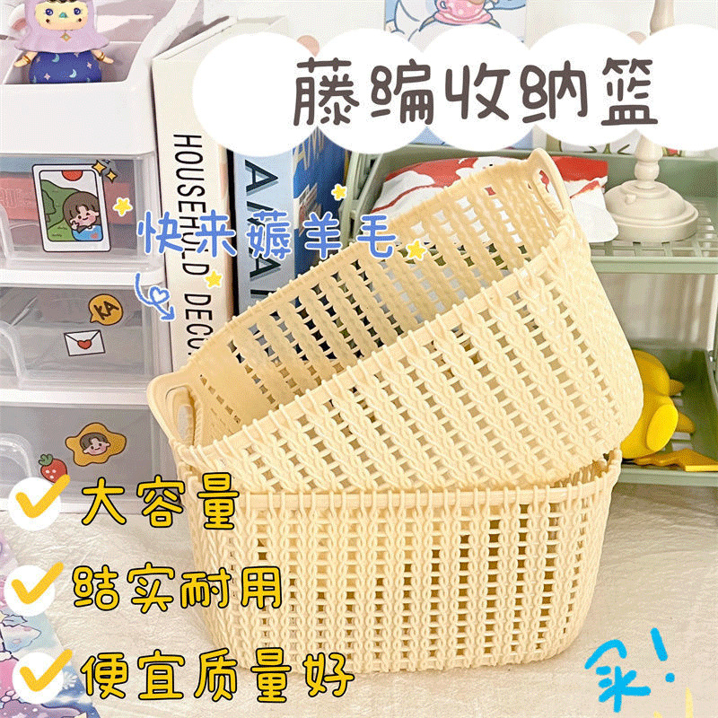 「9.9到手3个」ins日系仿藤编桌面化妆品收纳篮 居家日用塑料篮子收纳整理编织筐杂物储物篮