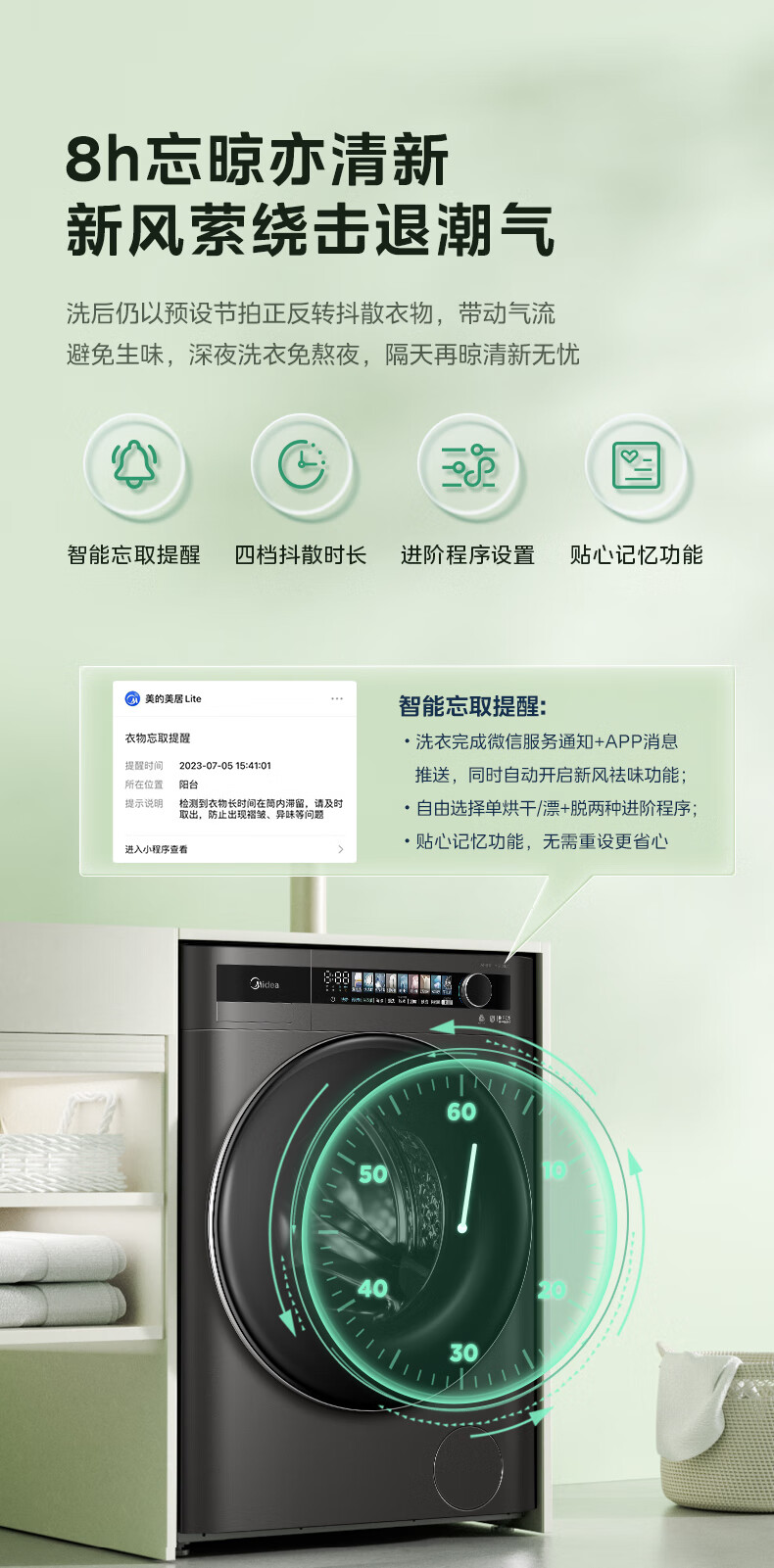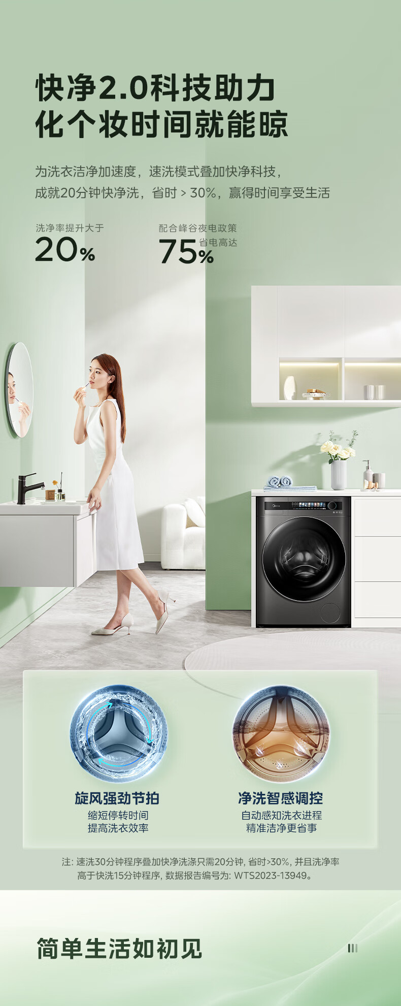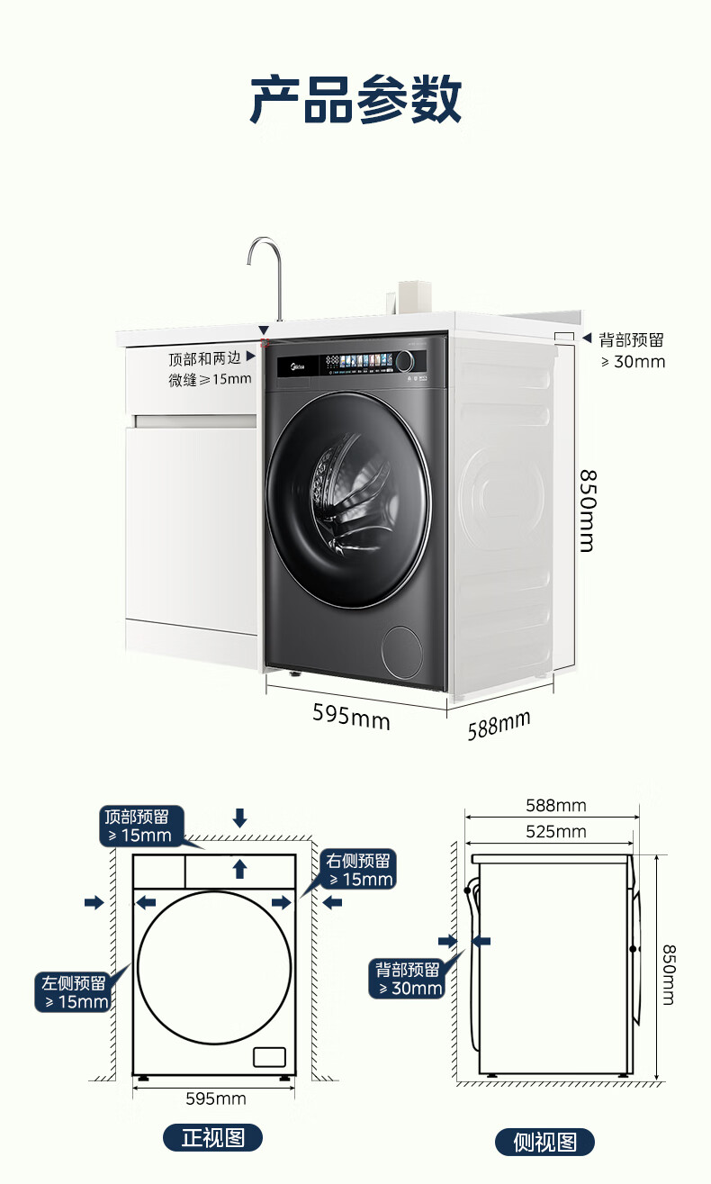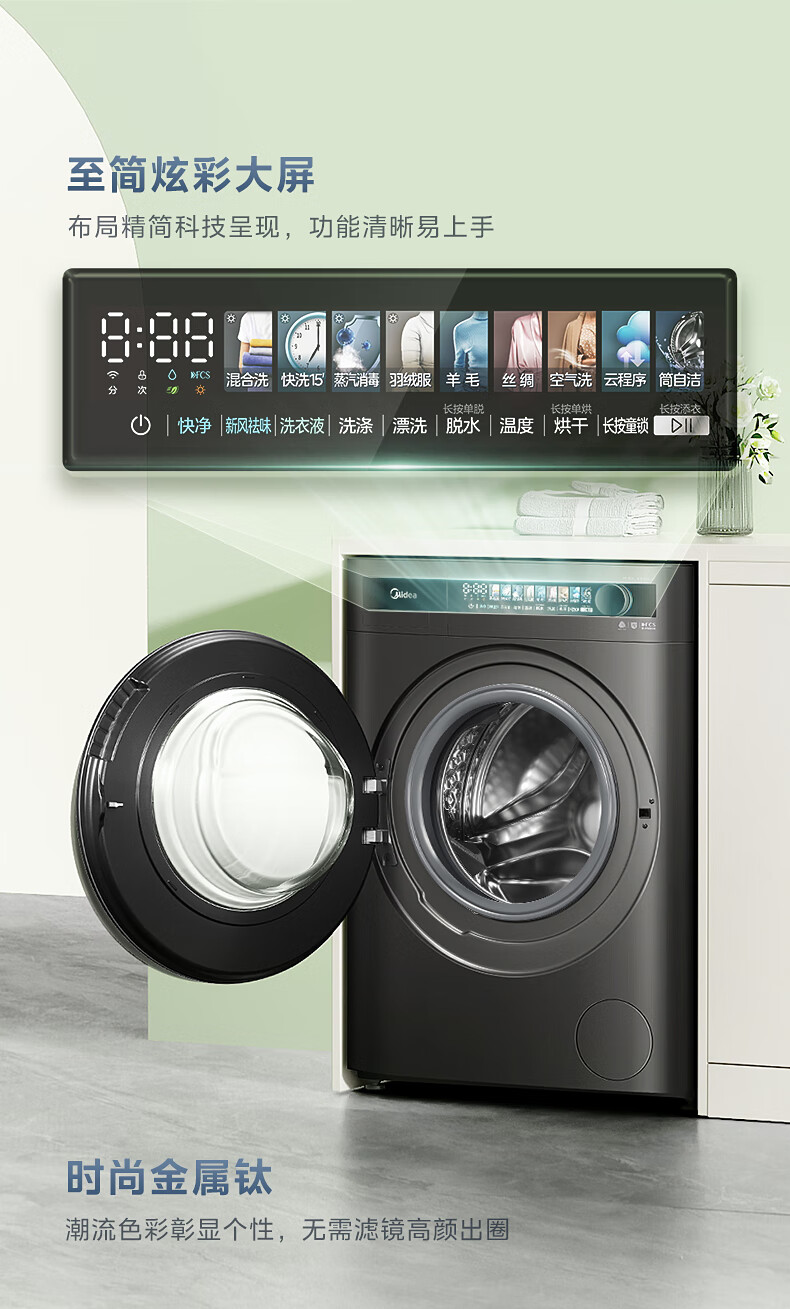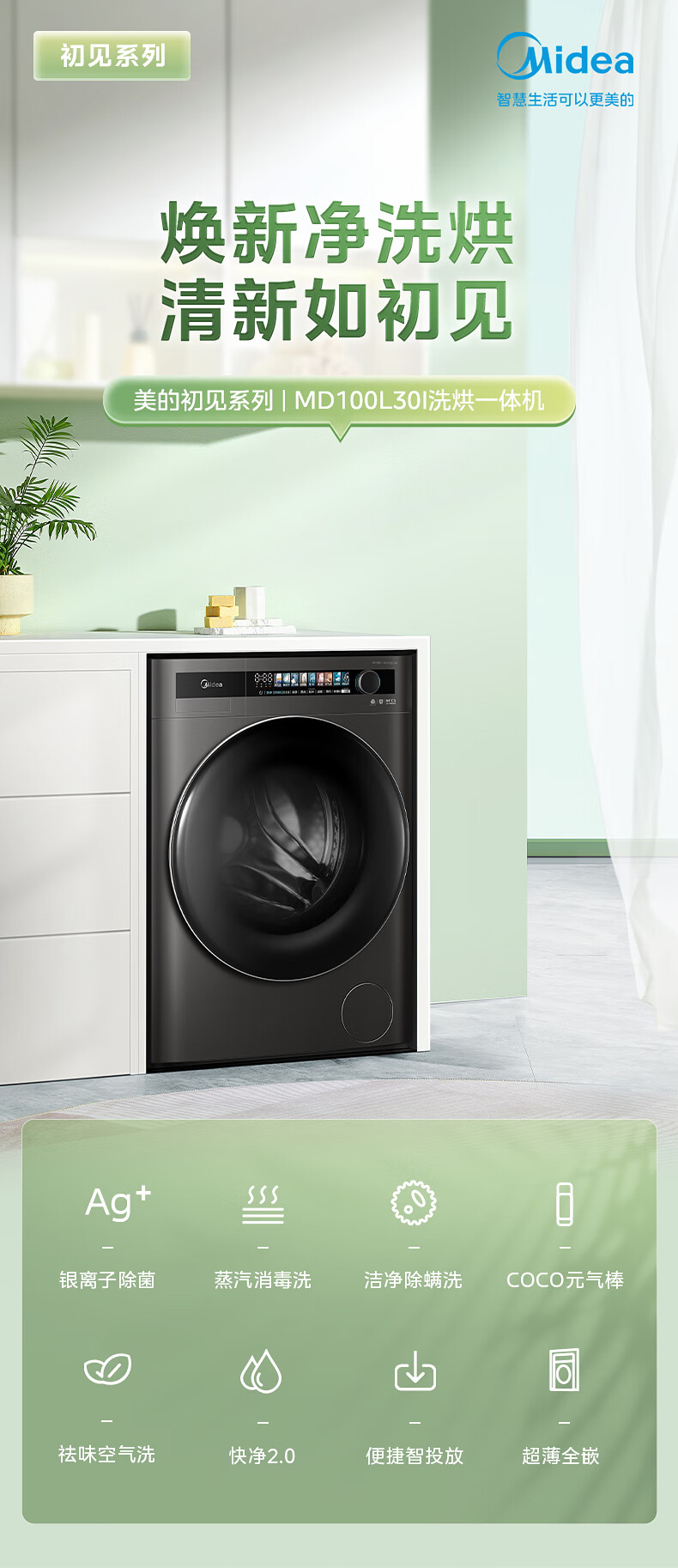 美的洗烘套装10公斤滚筒洗衣机全自动 母婴儿童内衣除螨除菌高温洗涤大容量变频MG100L30I+MH100HL