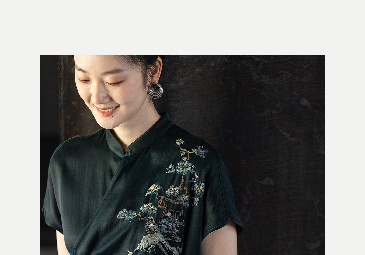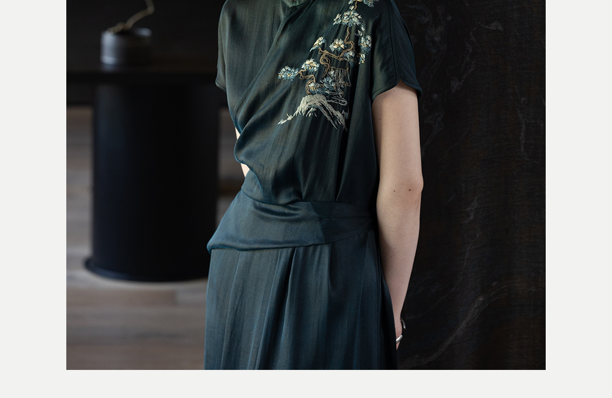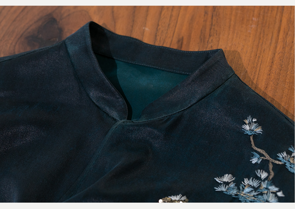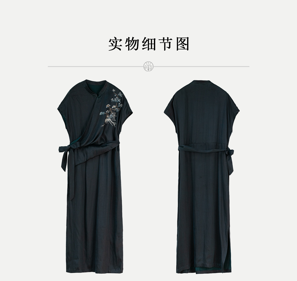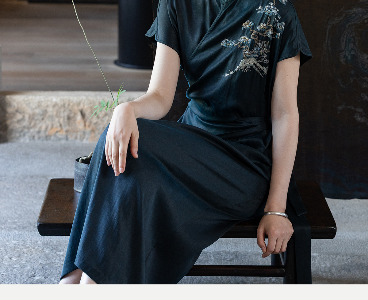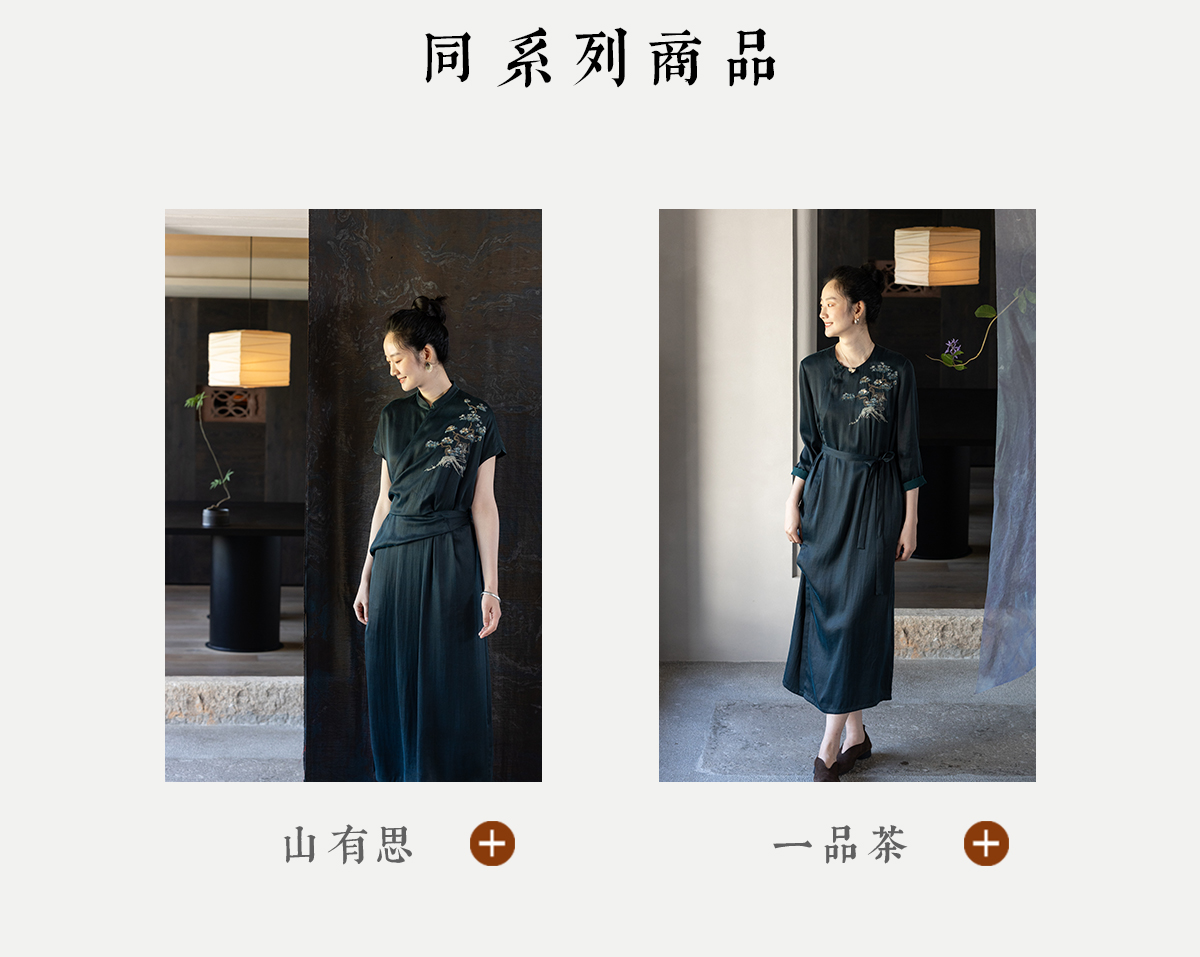 牧衣游原创 19姆米香云纱手工刺绣连衣裙复古中式轻礼服 山有思