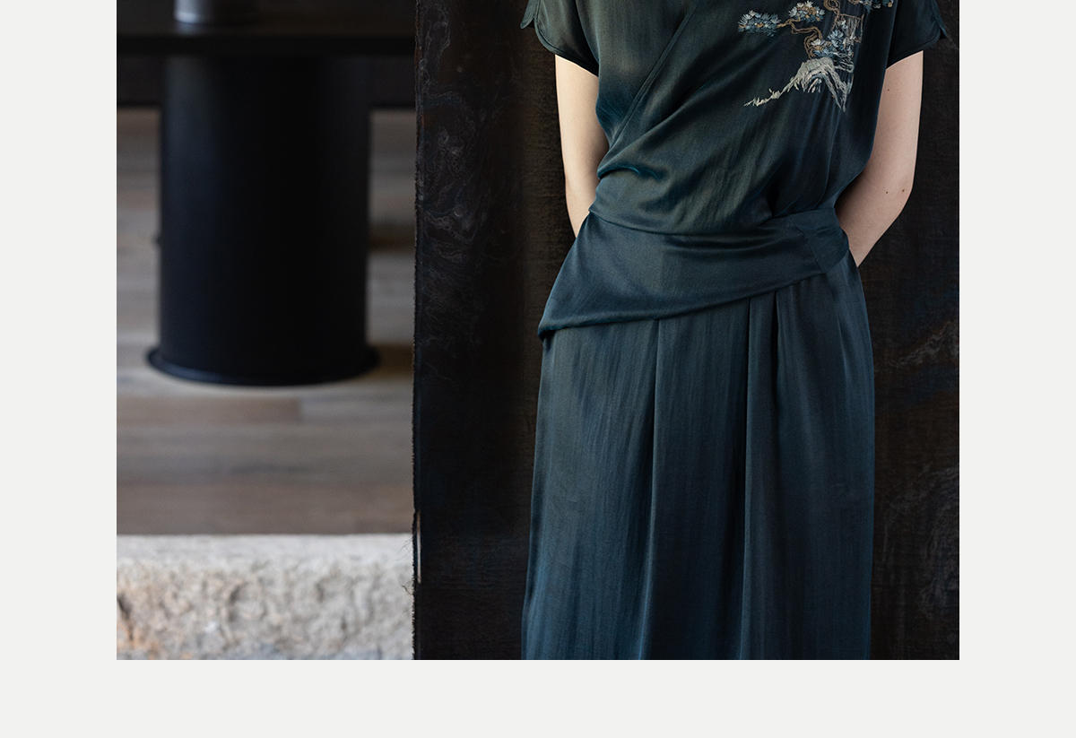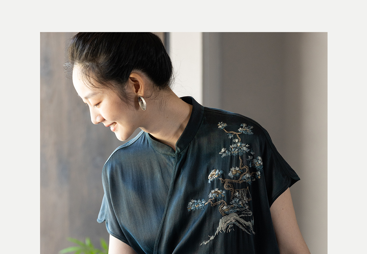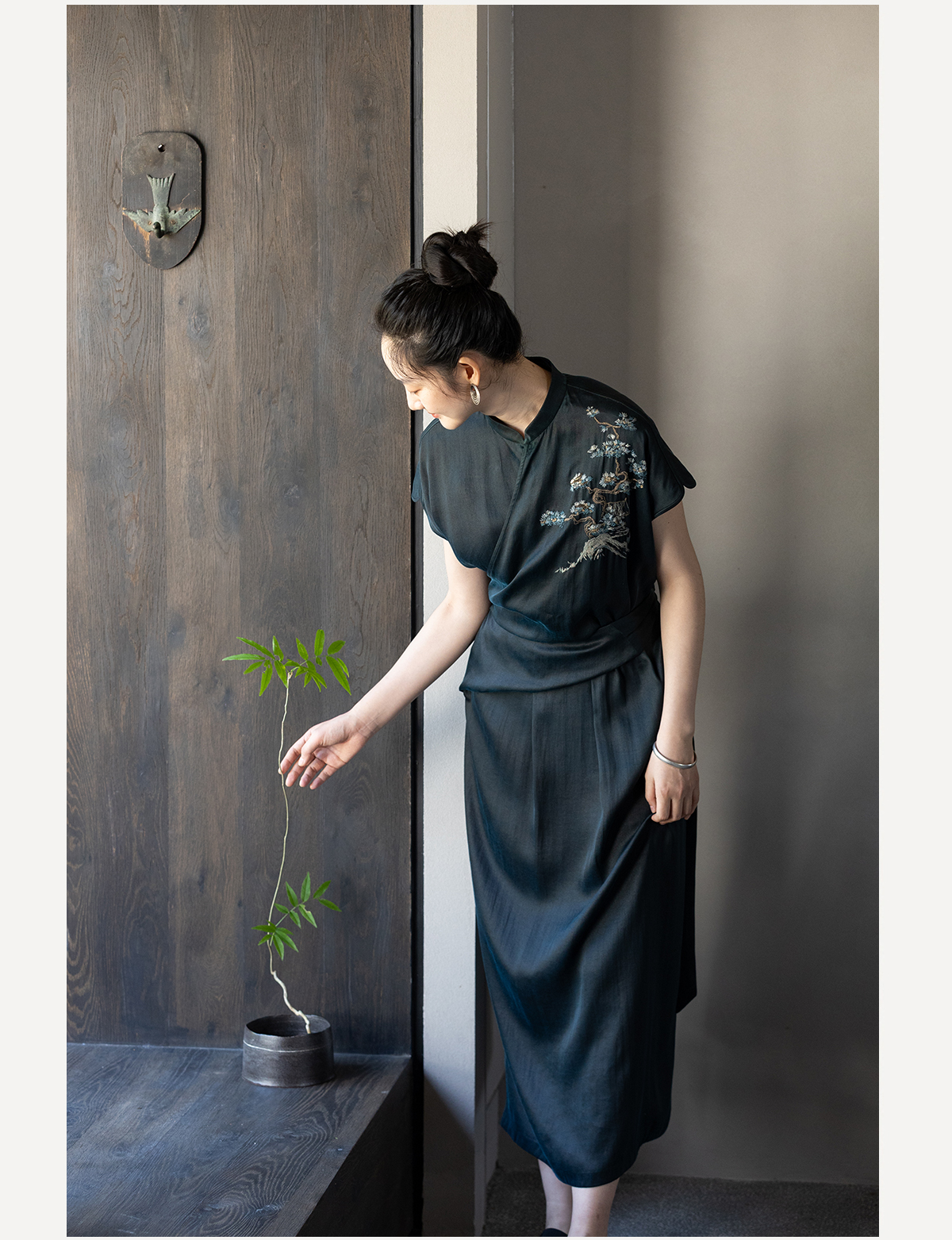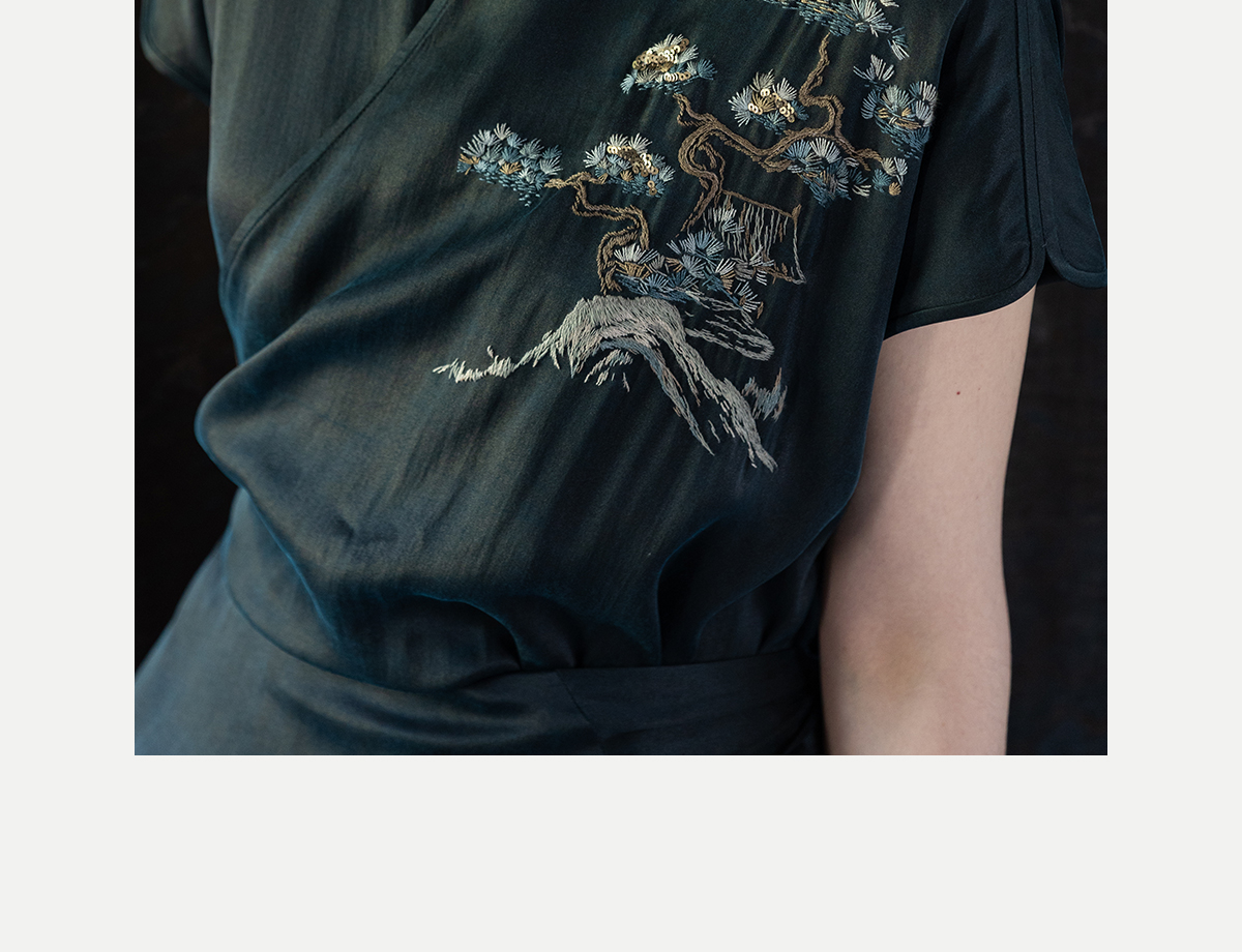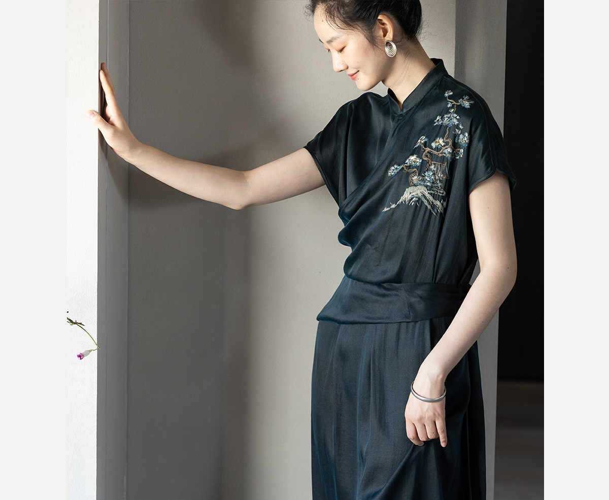 牧衣游原创 19姆米香云纱手工刺绣连衣裙复古中式轻礼服 山有思