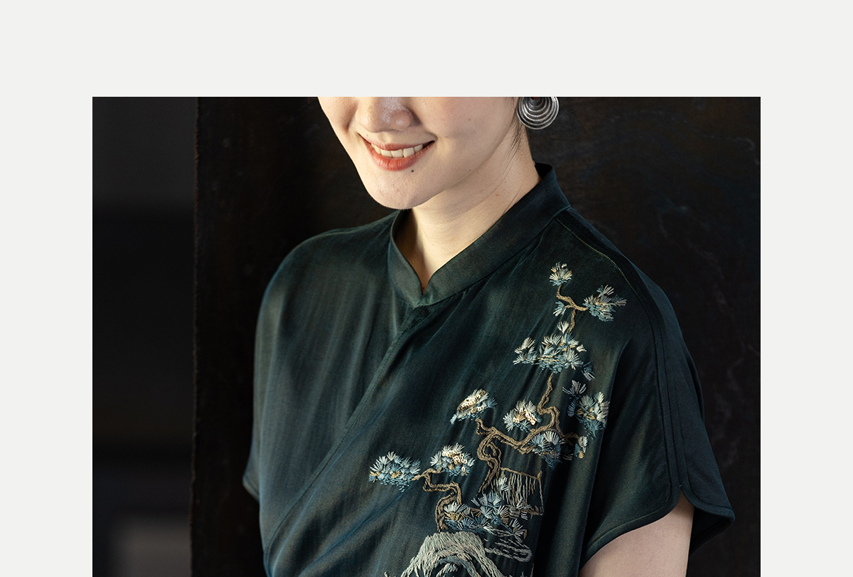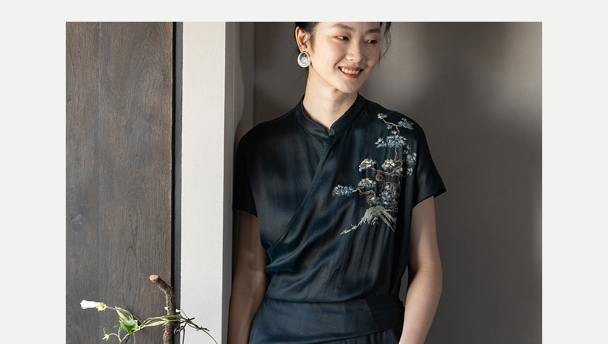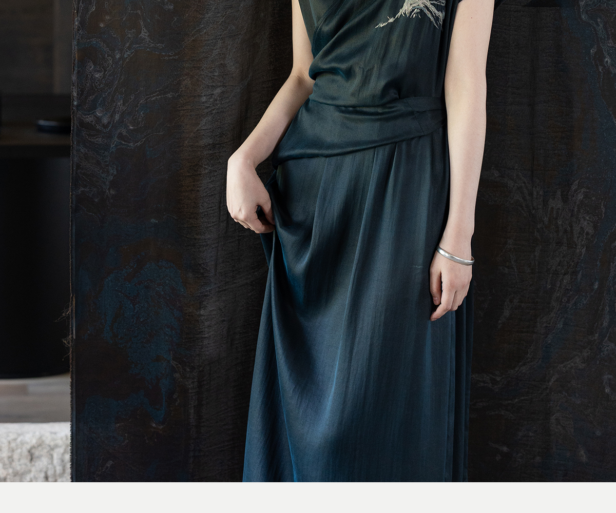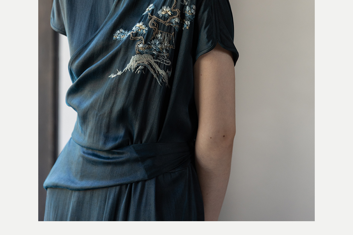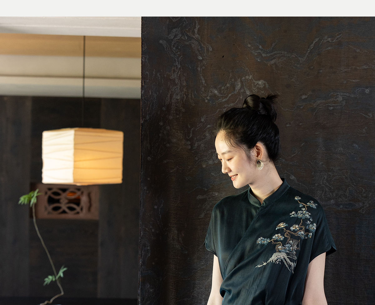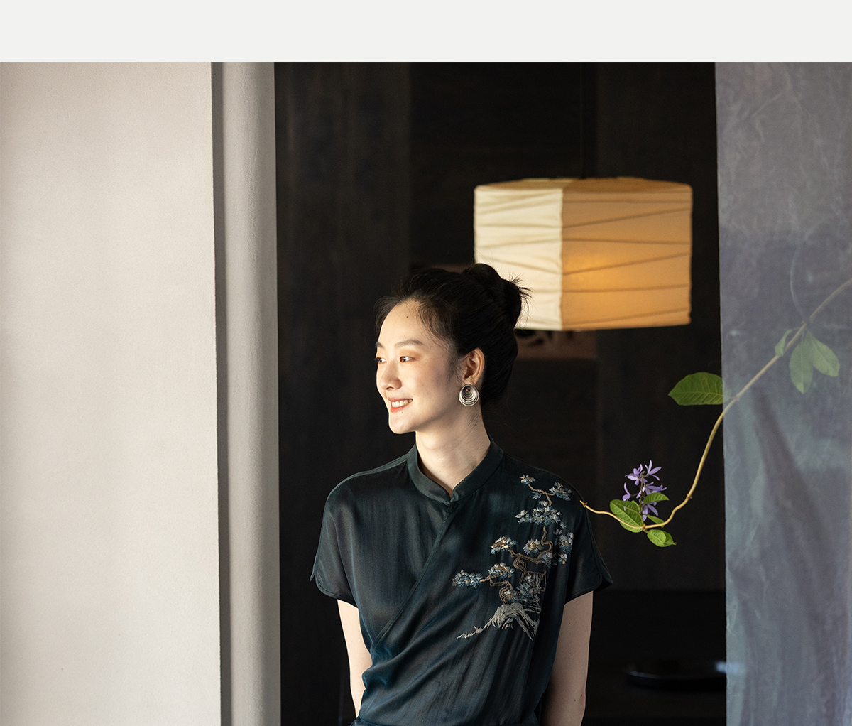 牧衣游原创 19姆米香云纱手工刺绣连衣裙复古中式轻礼服 山有思
