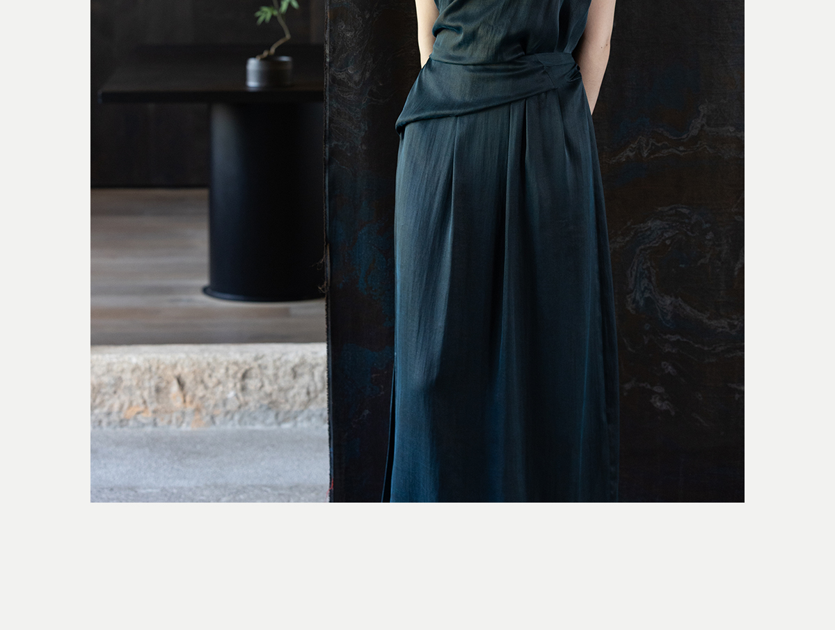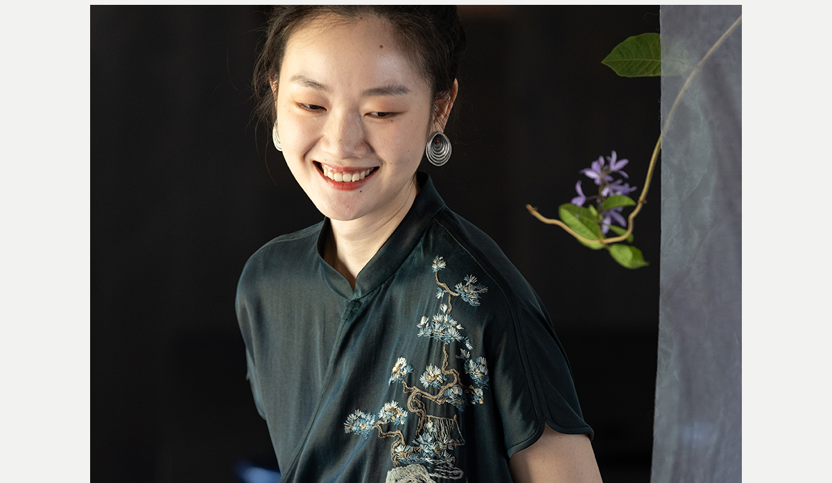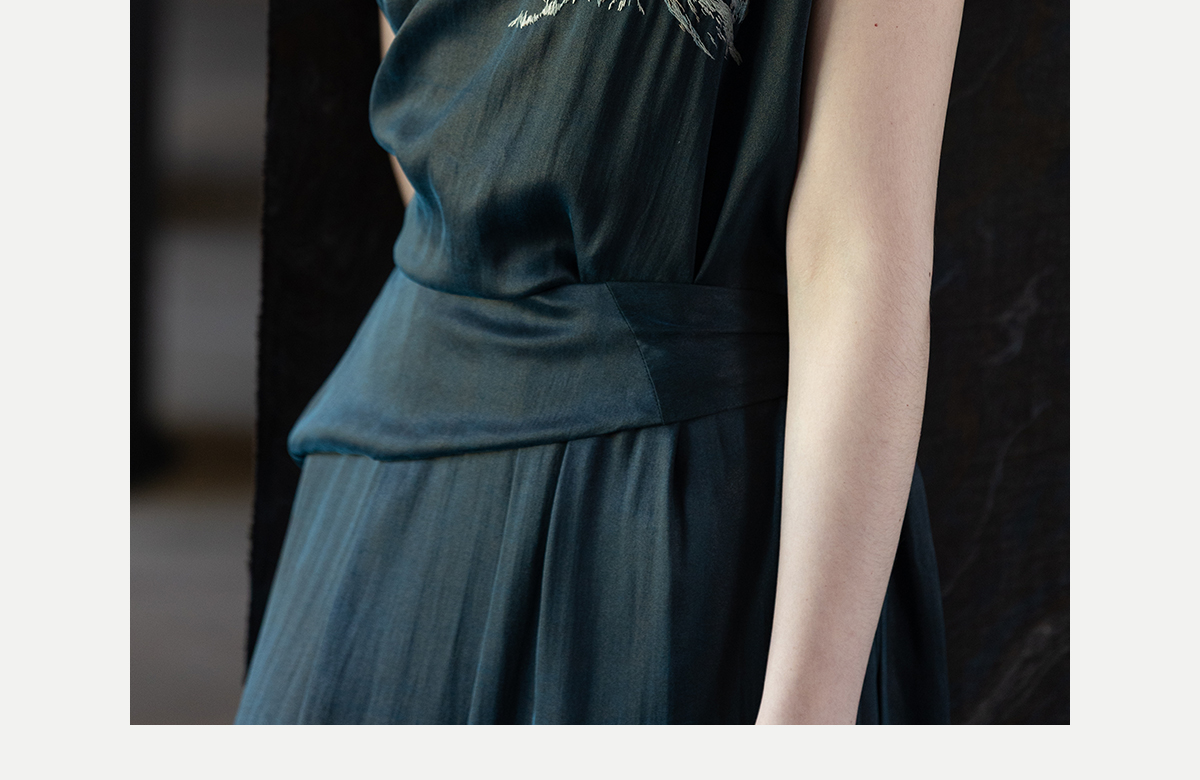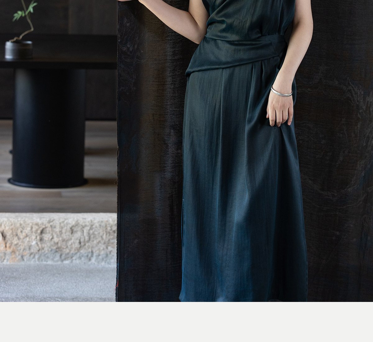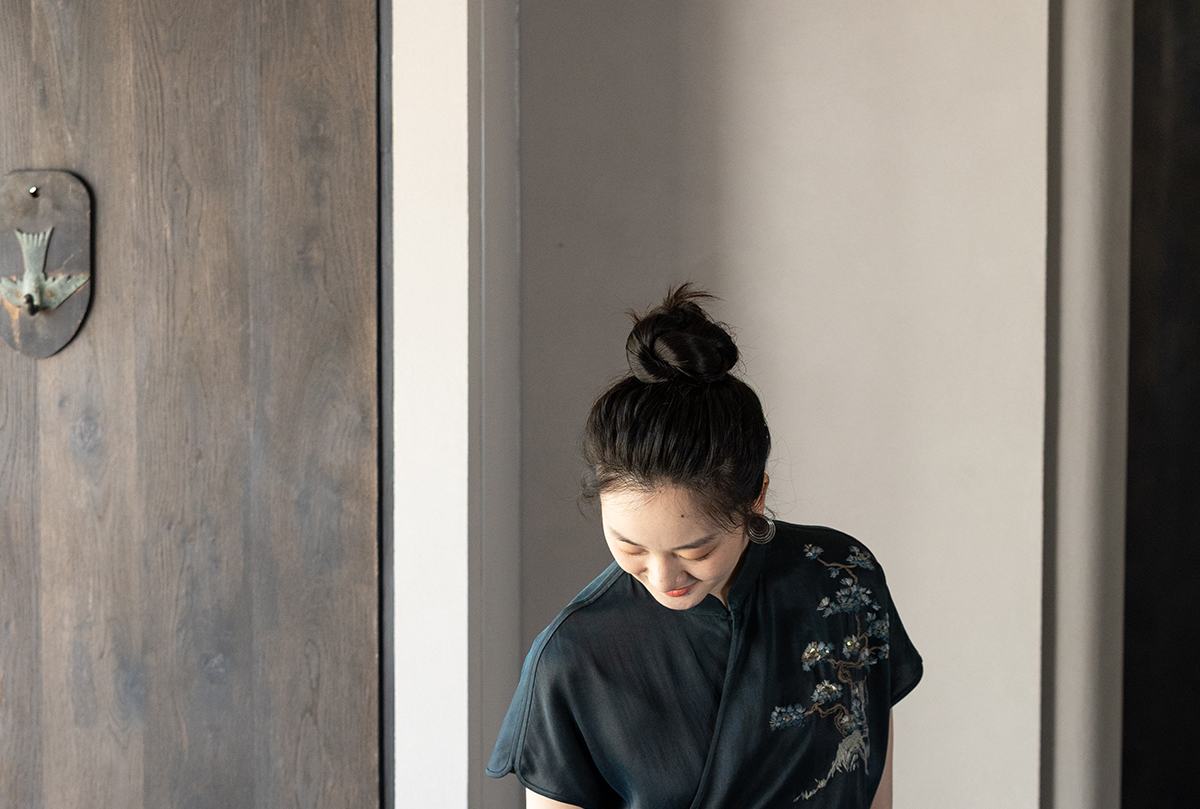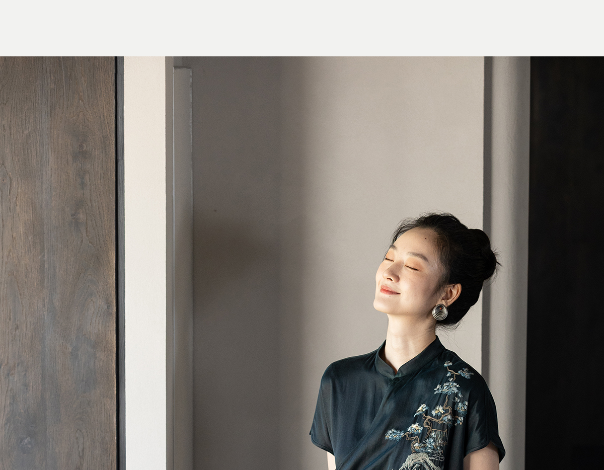 牧衣游原创 19姆米香云纱手工刺绣连衣裙复古中式轻礼服 山有思
