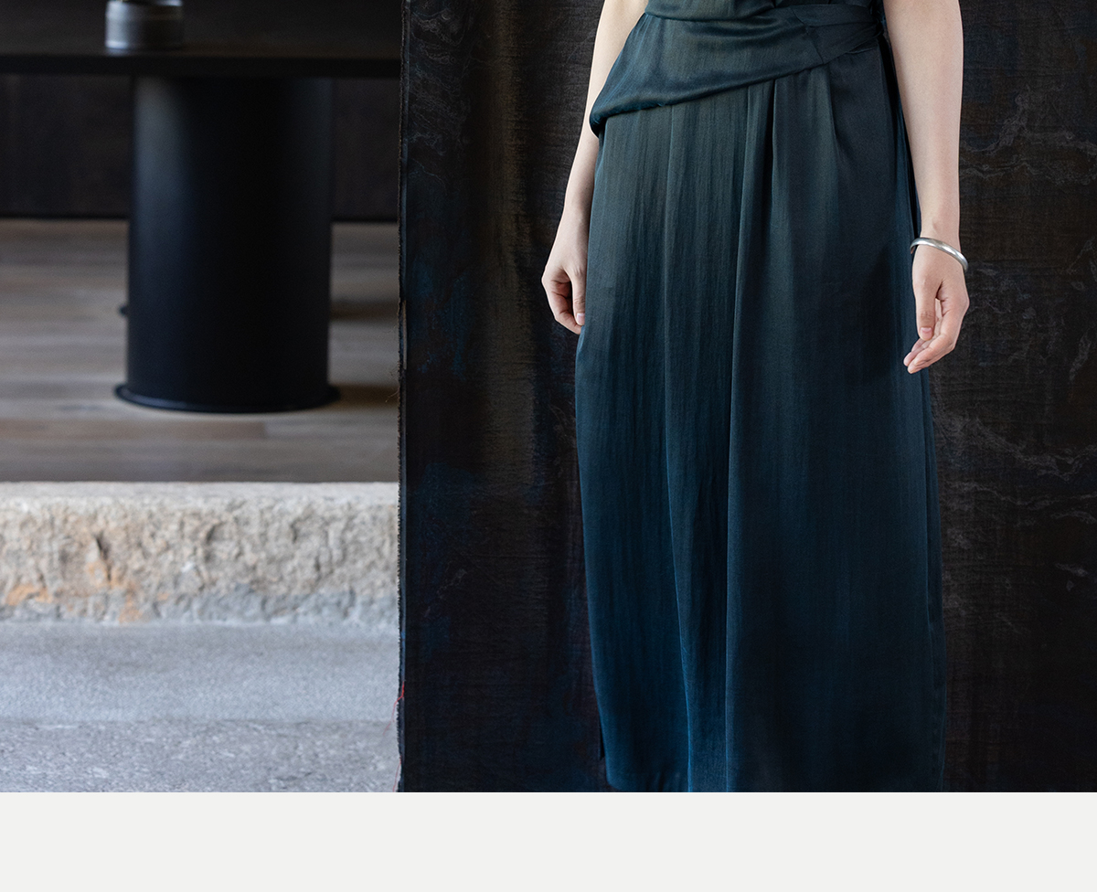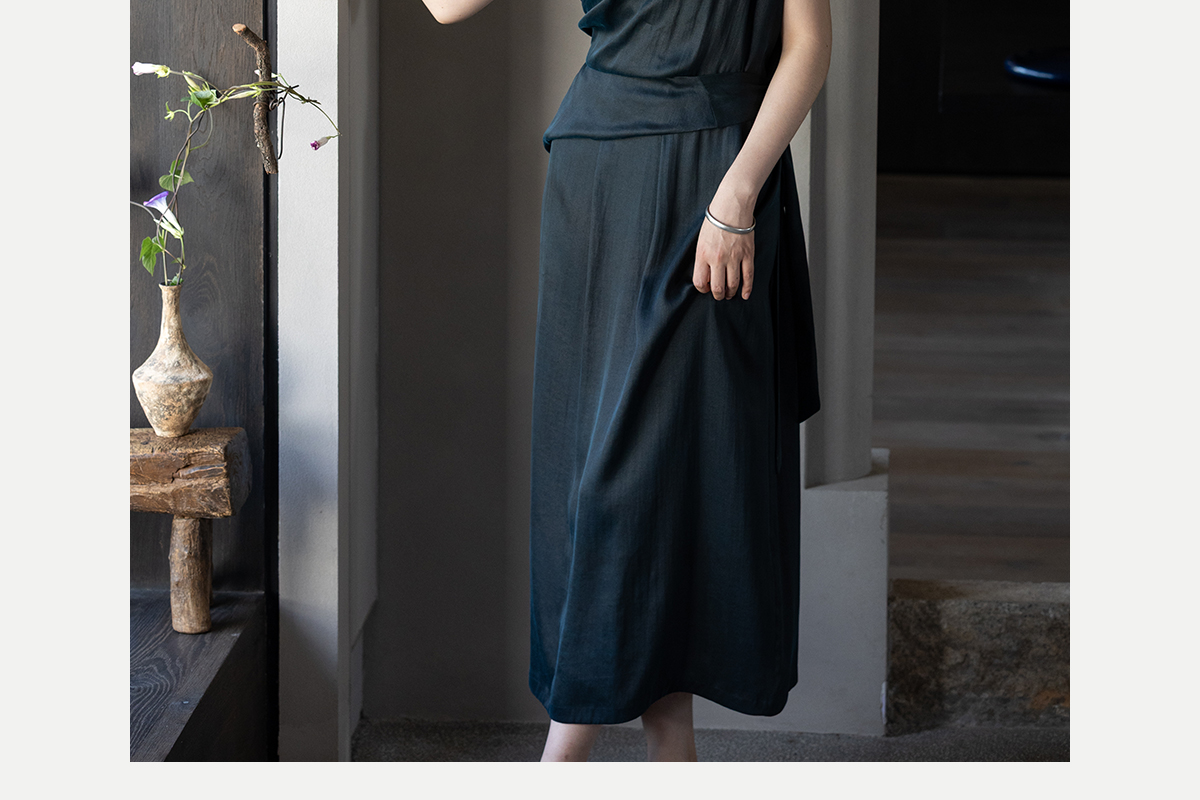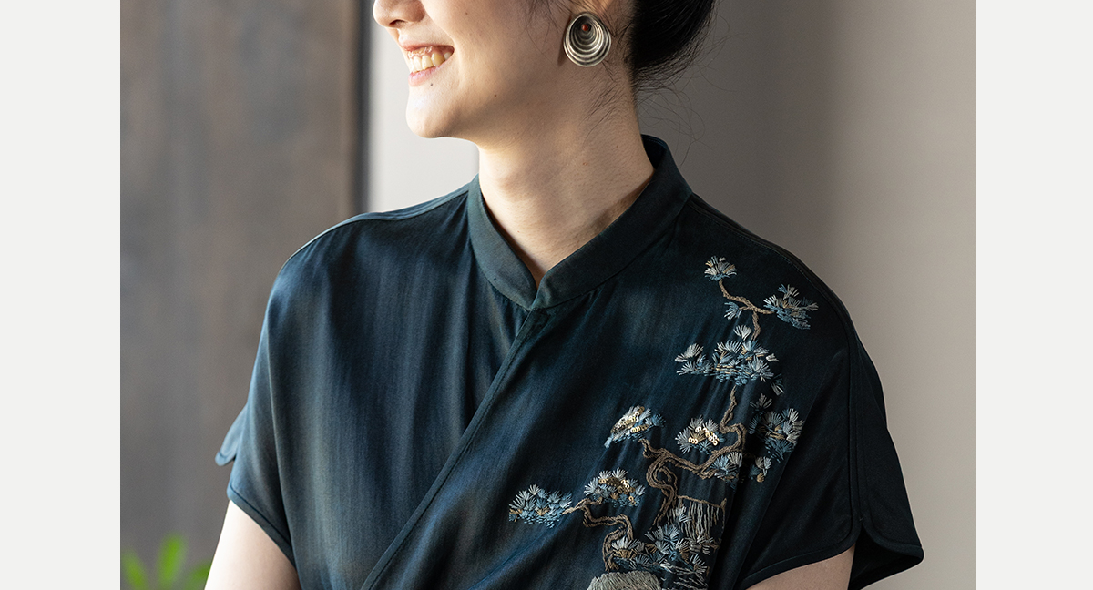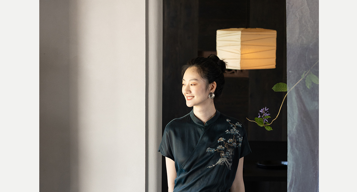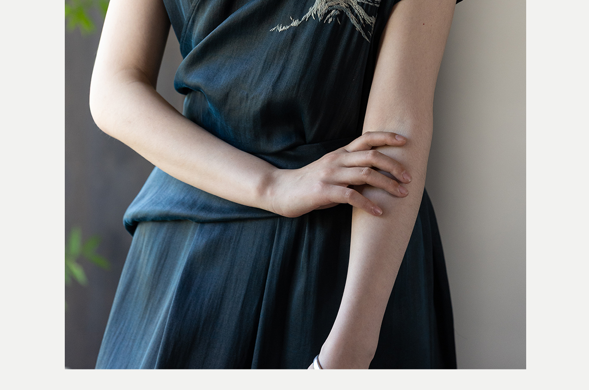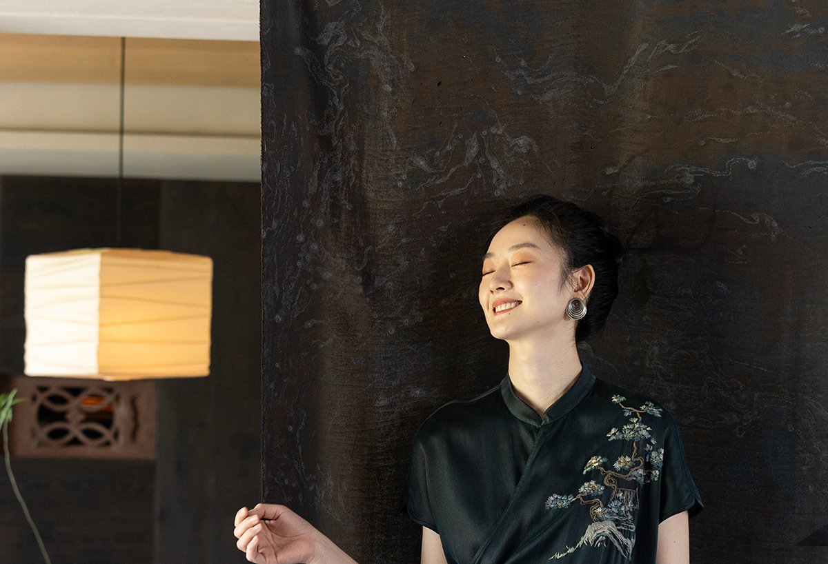 牧衣游原创 19姆米香云纱手工刺绣连衣裙复古中式轻礼服 山有思