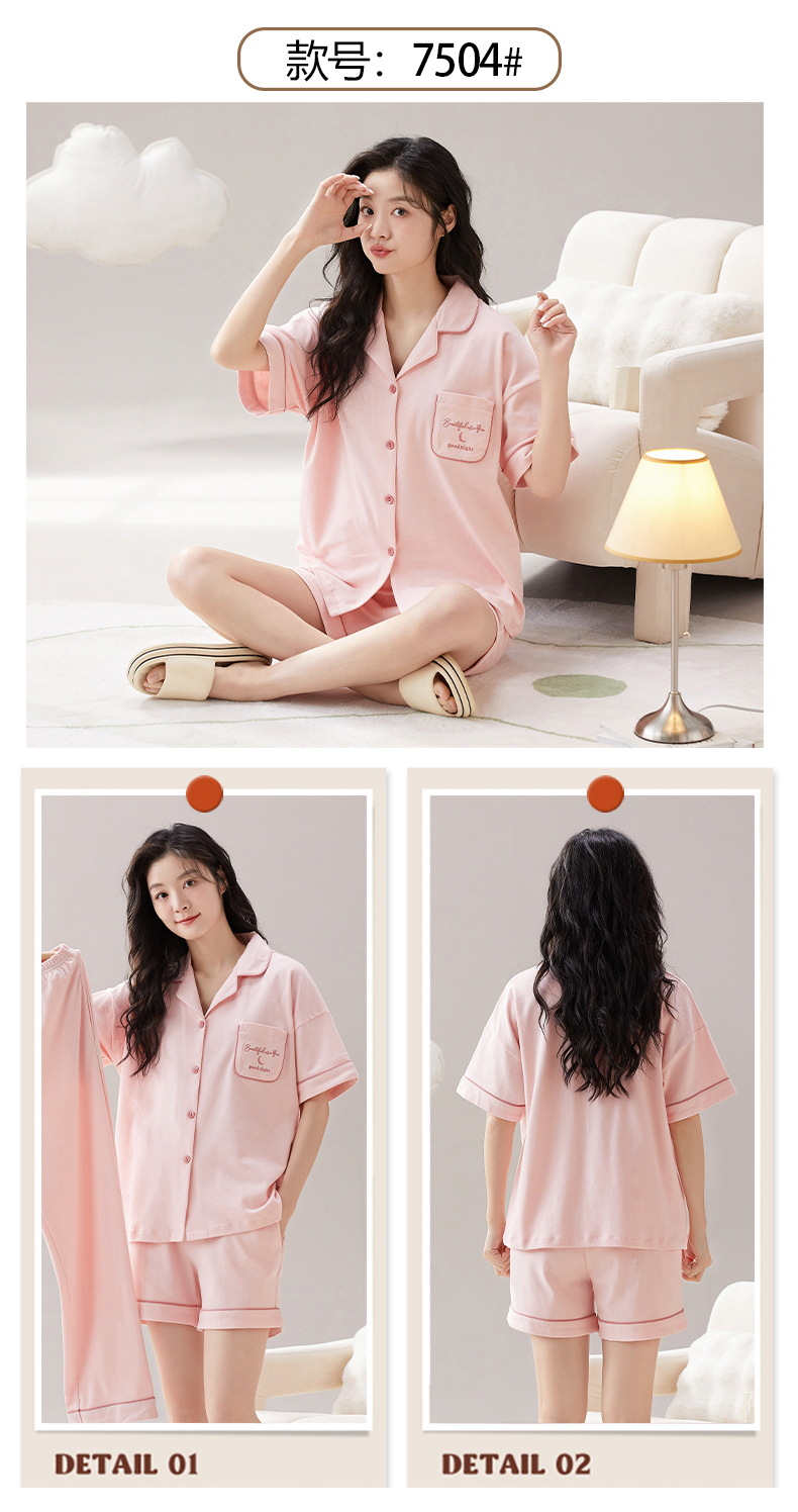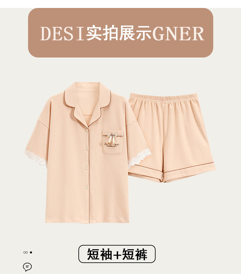 短袖翻领睡衣女夏季薄款简约休闲棉质家居服可外穿套装新款新品 商品图1