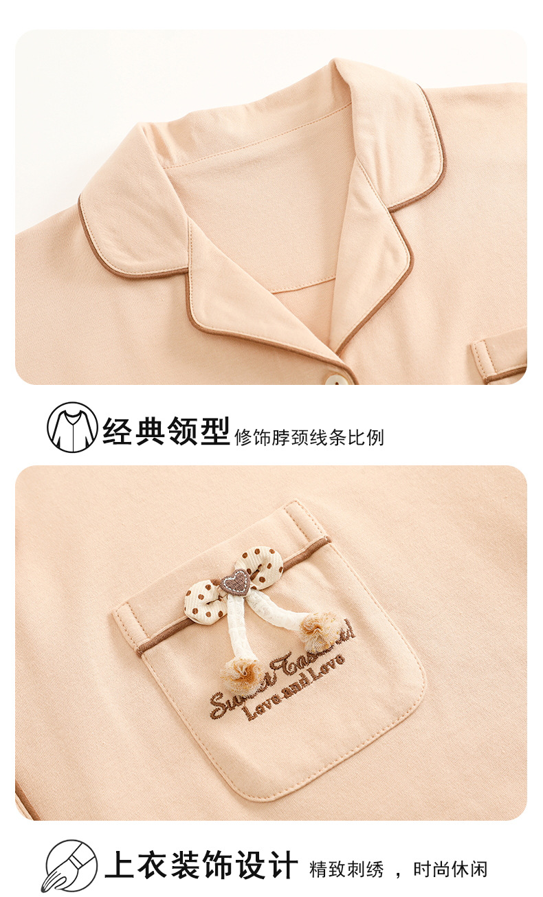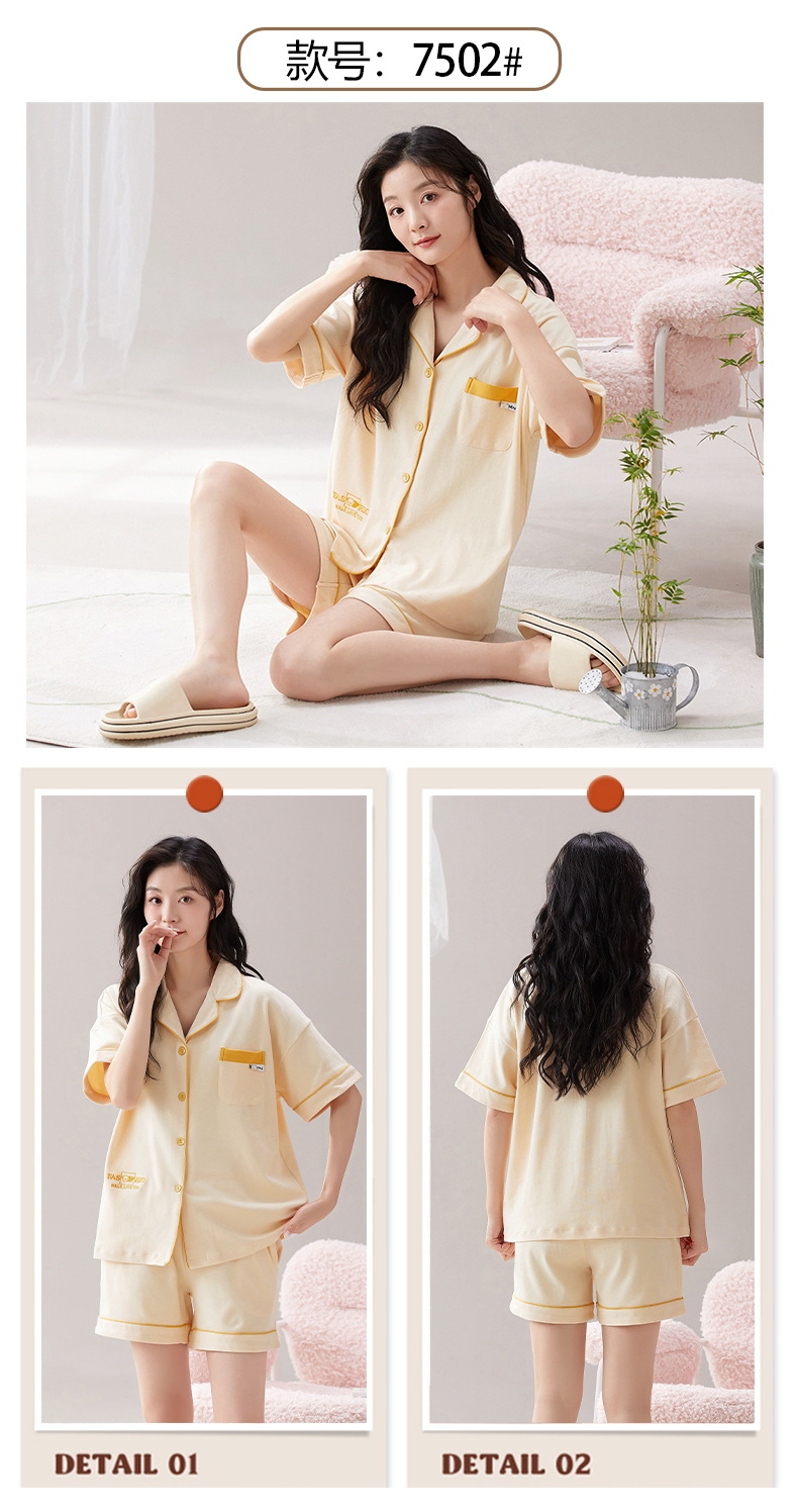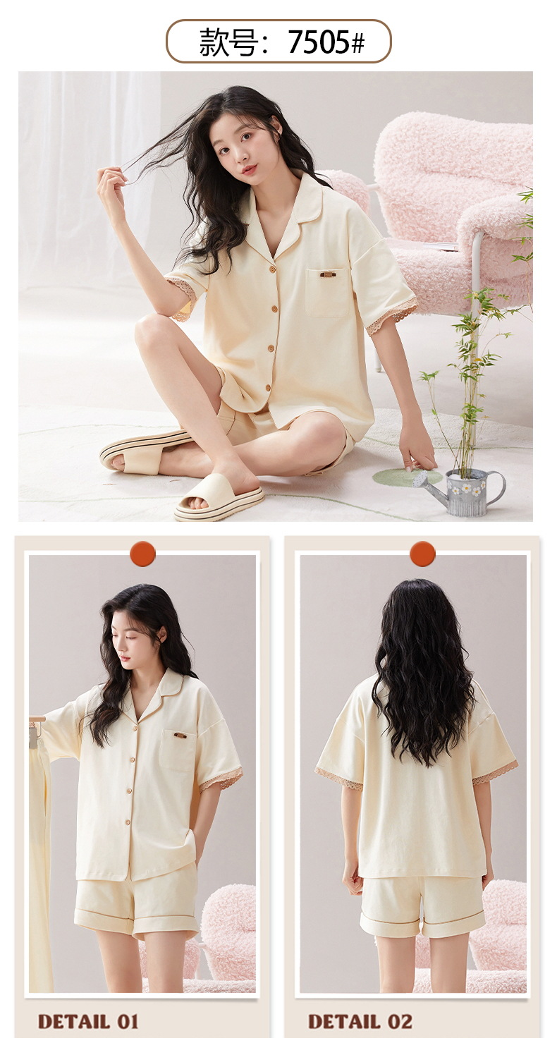 短袖翻领睡衣女夏季薄款简约休闲棉质家居服可外穿套装新款新品 商品图7