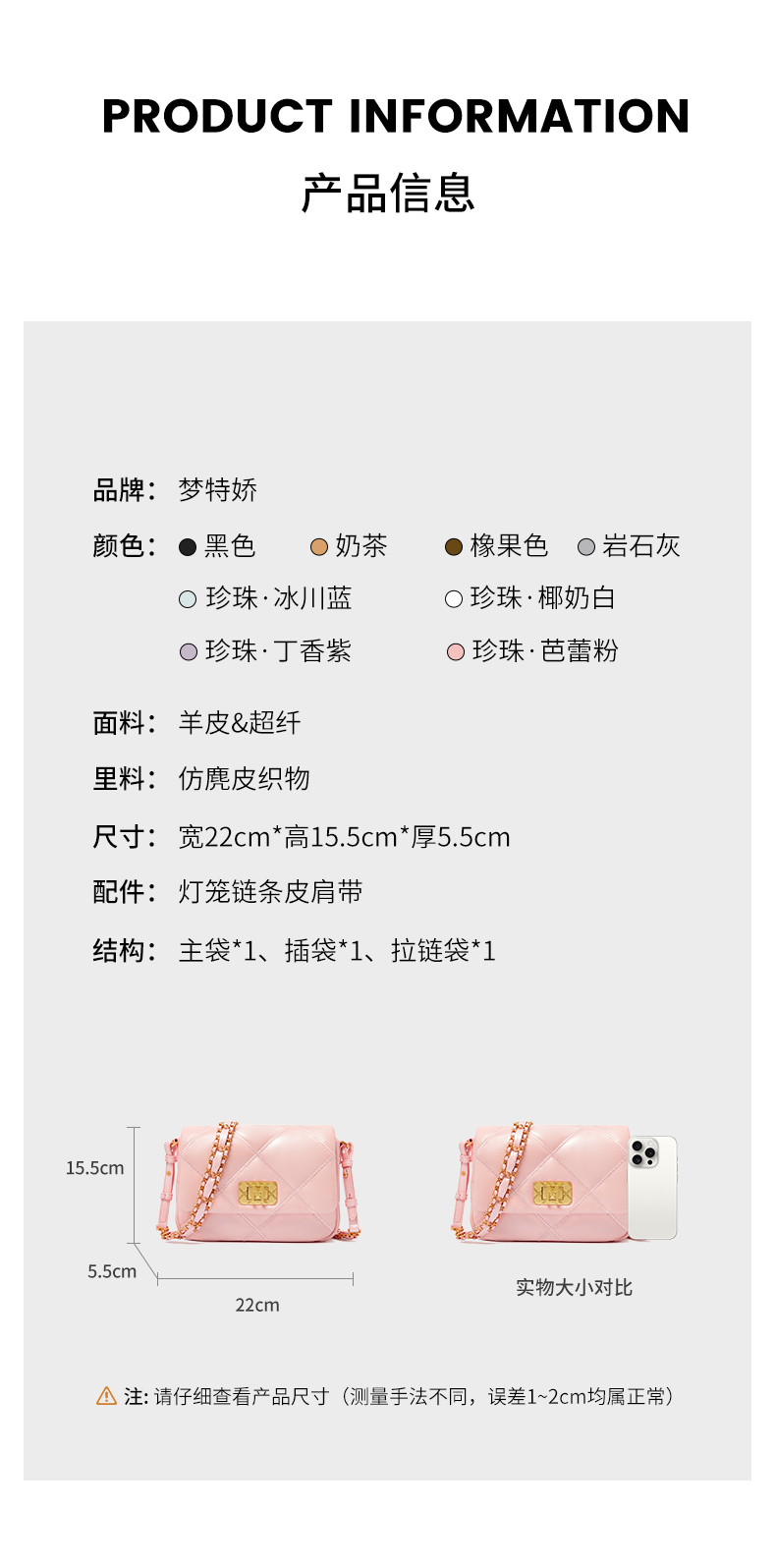 梦特娇2025新品羊皮麻将包斜挎单肩包