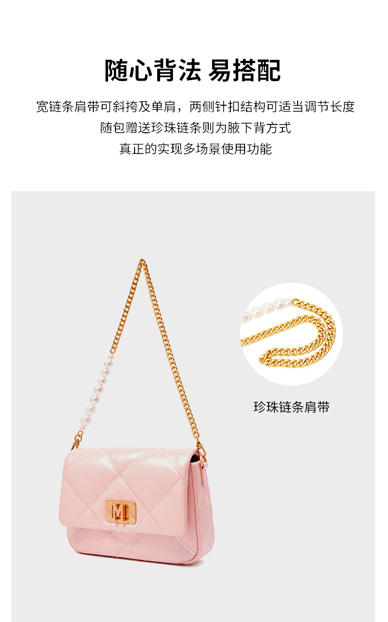 春夏新色梦特娇优雅珍珠法式小香风斜挎包【高级羊皮系列】