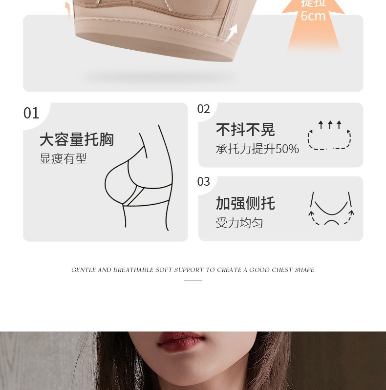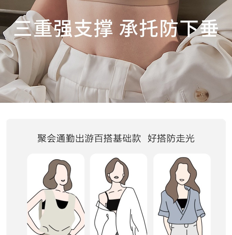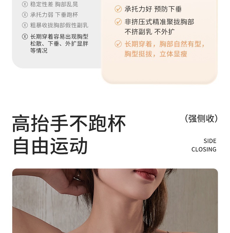 三重支撑 承托防下垂提拉小胸显大无痕内衣女薄款无钢圈聚拢上托美背收副乳防下垂文胸
