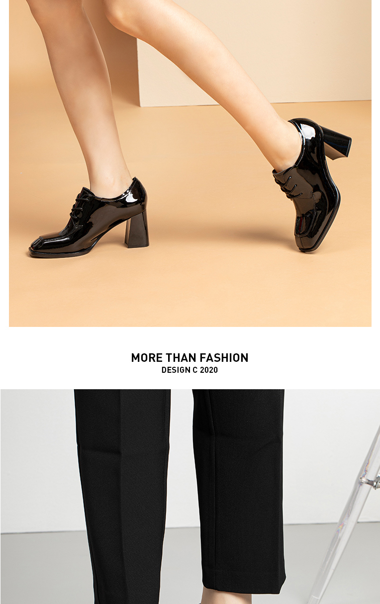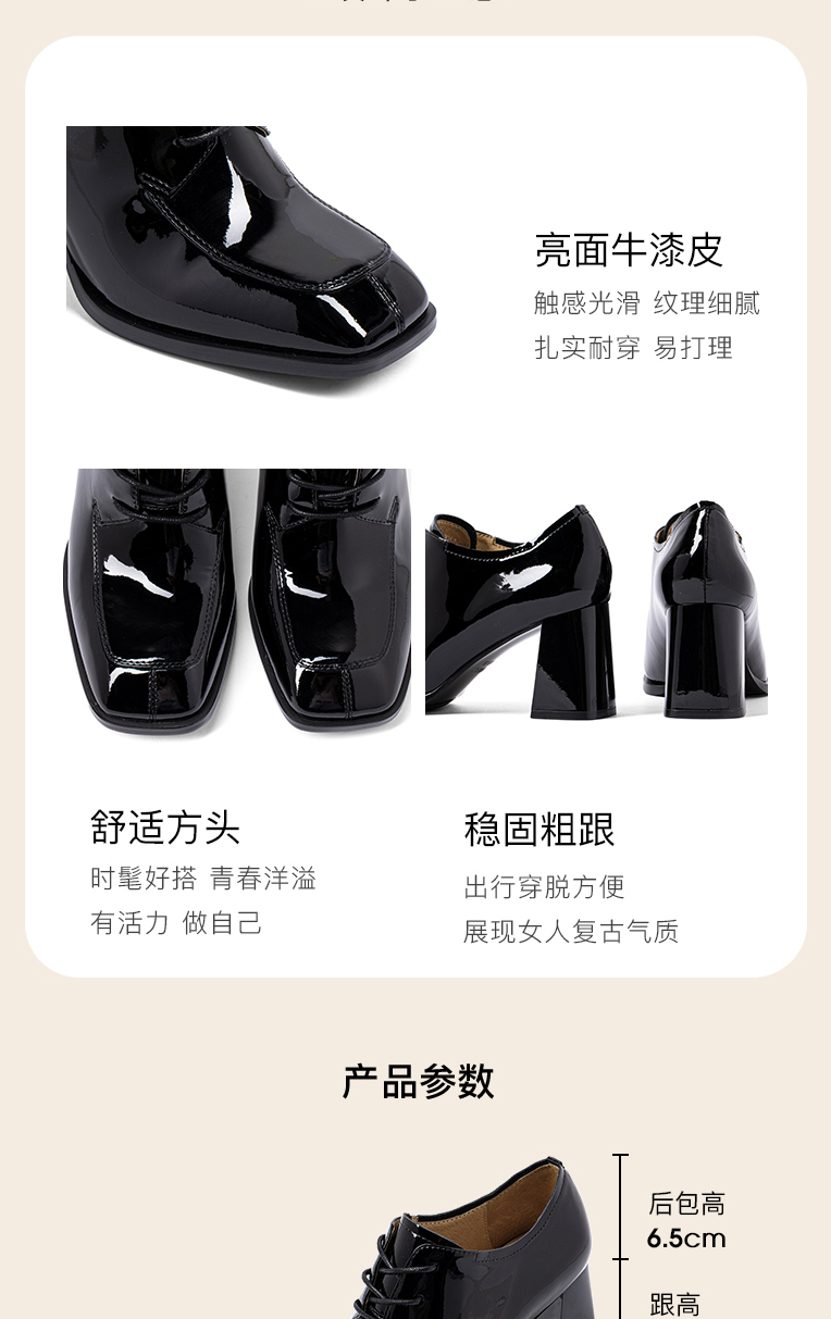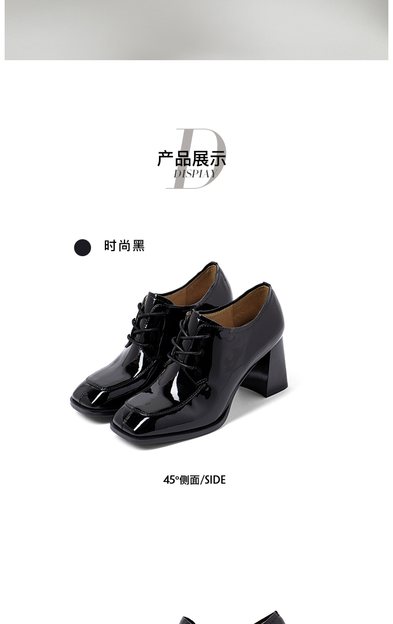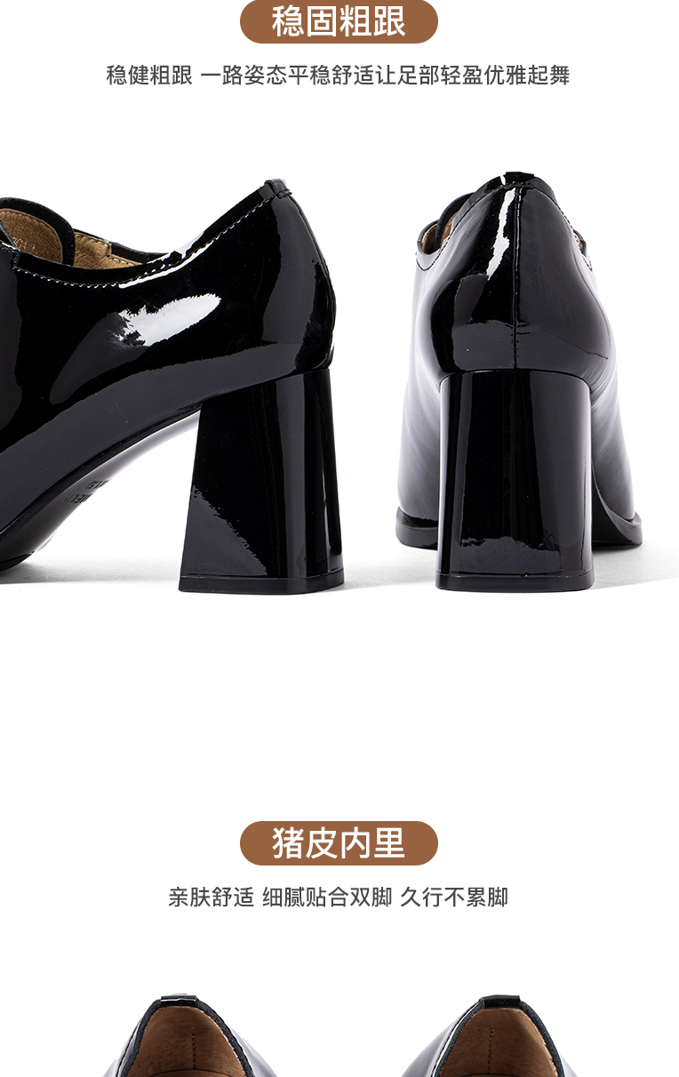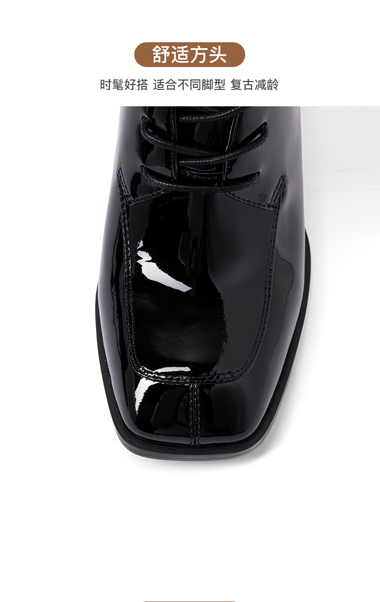 康莉2021早秋新款单鞋女粗跟方头时尚漆皮法式复古小皮鞋 KYQ16399DC01CM1