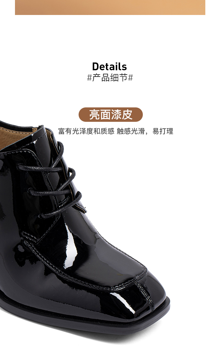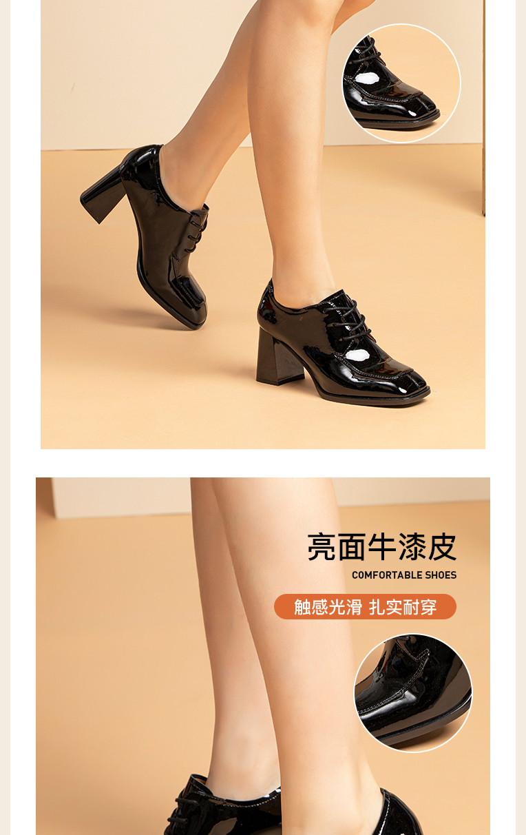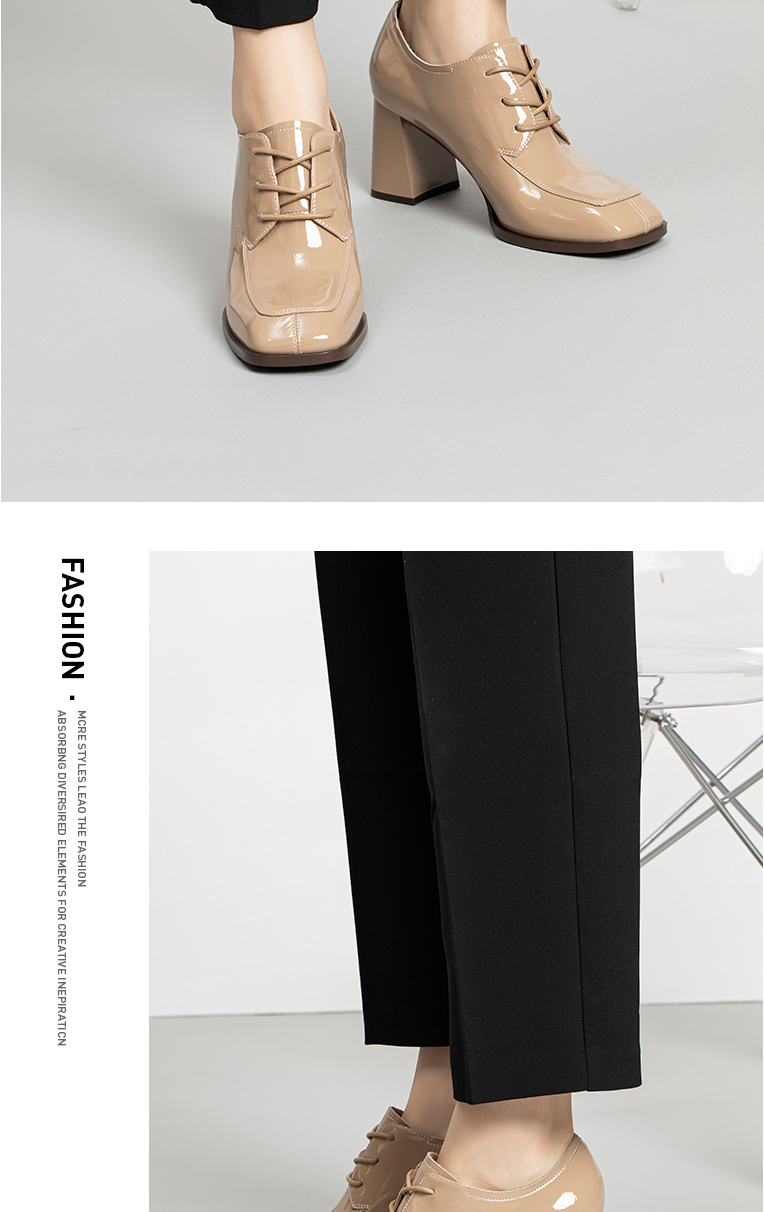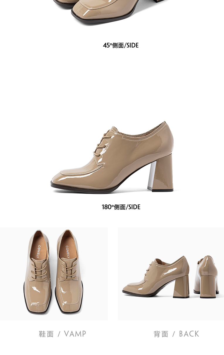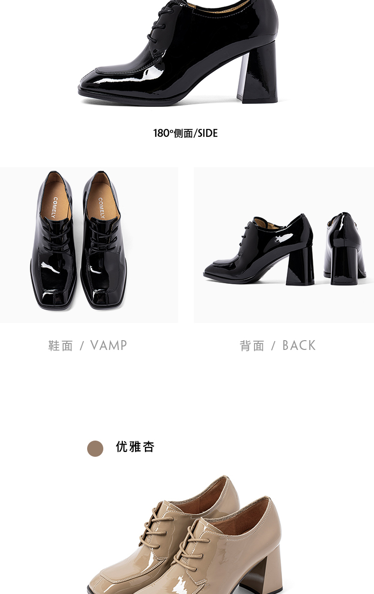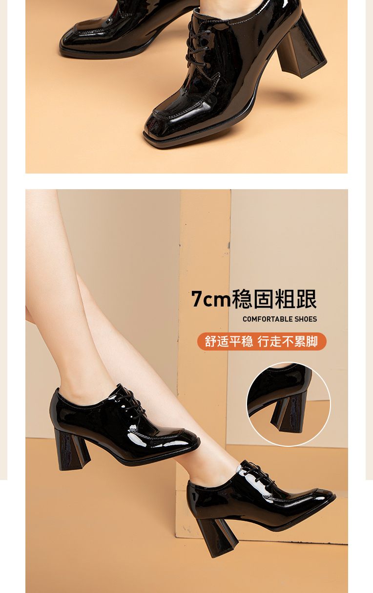 康莉2021早秋新款单鞋女粗跟方头时尚漆皮法式复古小皮鞋 KYQ16399DC01CM1