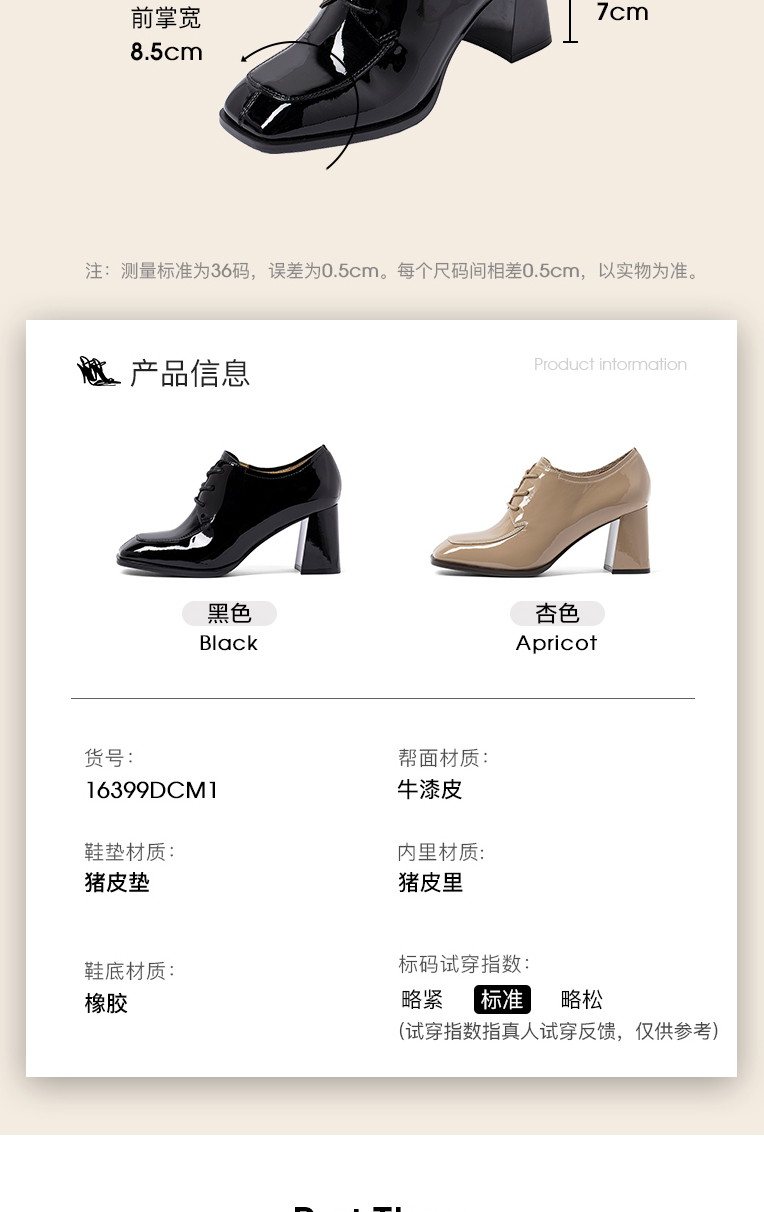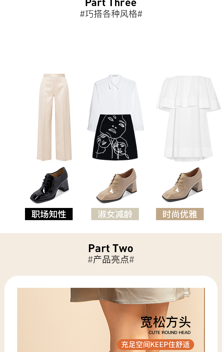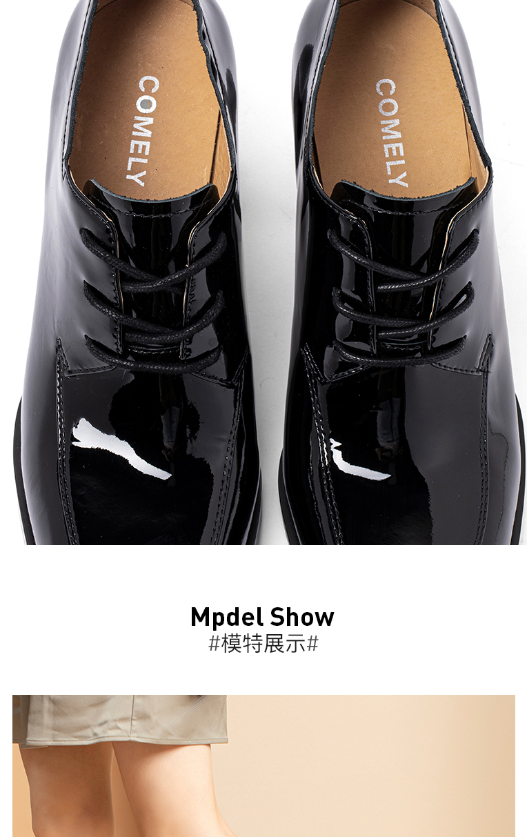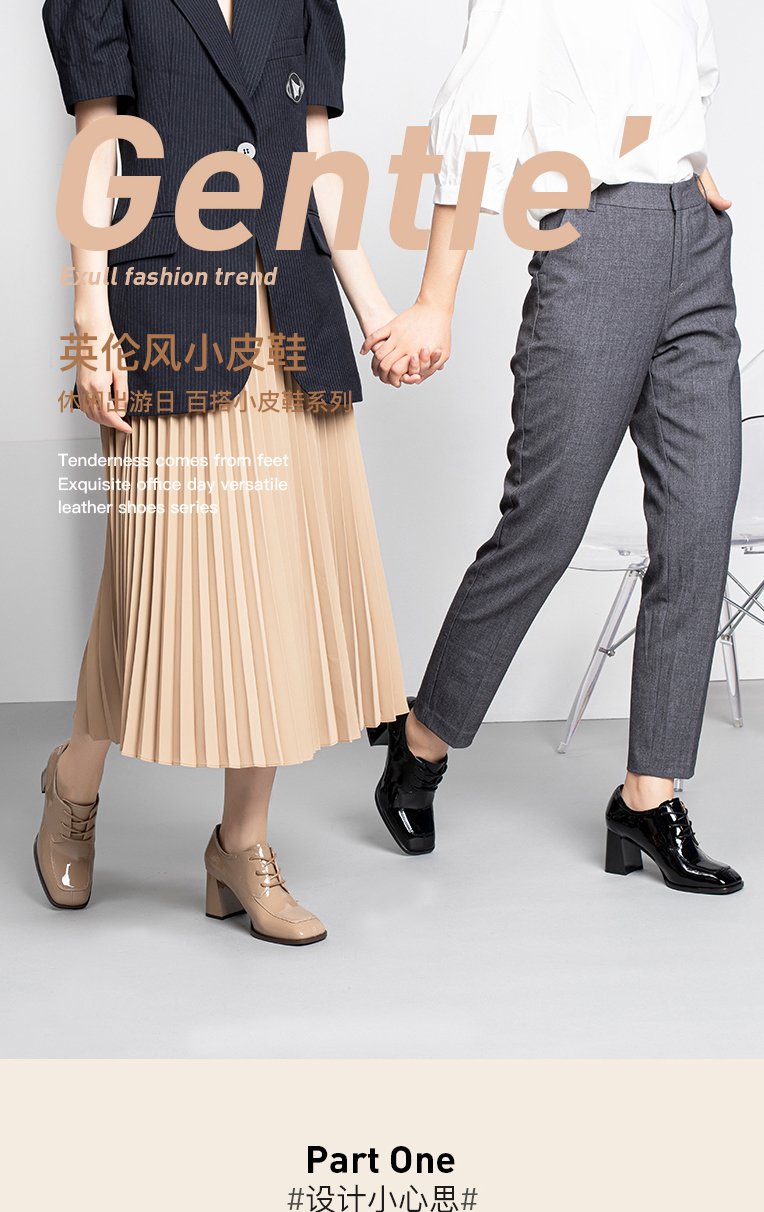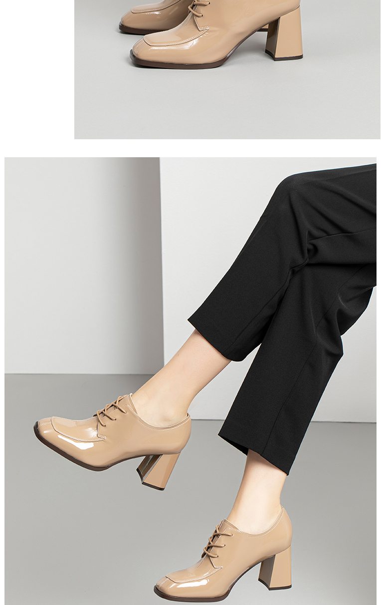 康莉2021早秋新款单鞋女粗跟方头时尚漆皮法式复古小皮鞋 KYQ16399DC01CM1