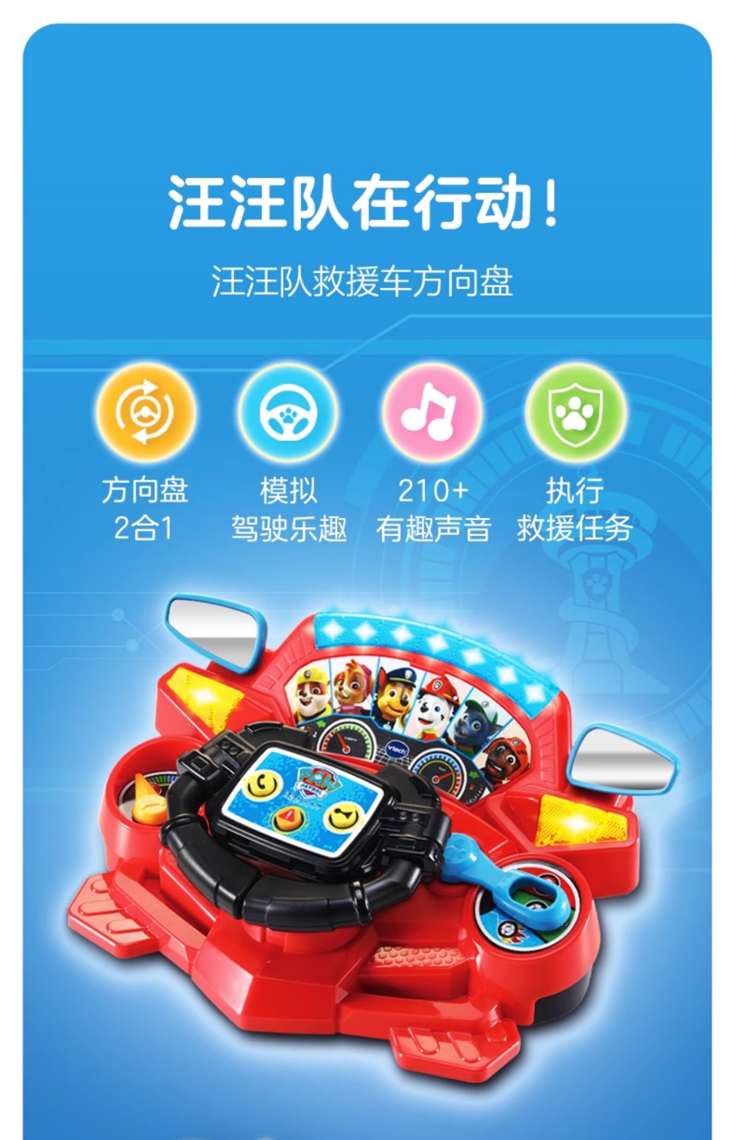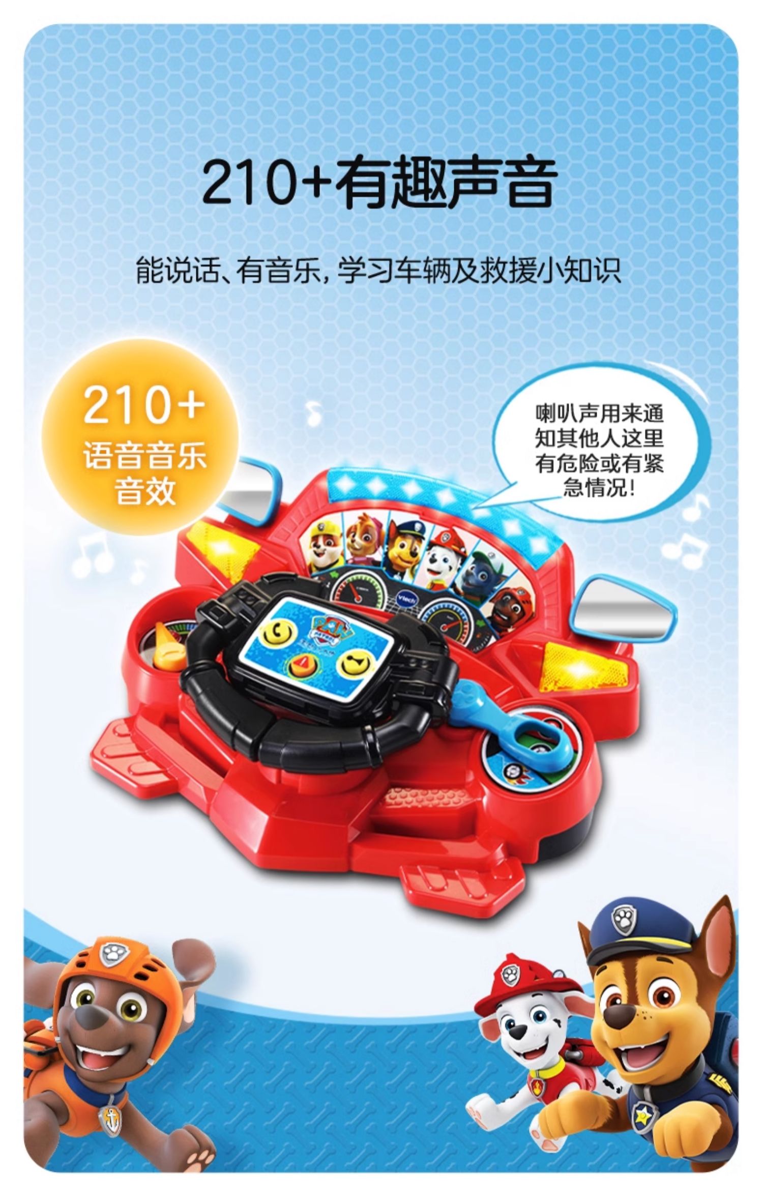 伟易达汪汪队救援儿童方向盘仿真方向盘副驾驶玩具益智模拟小汽车