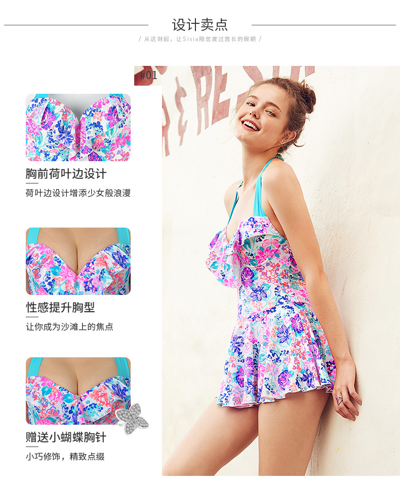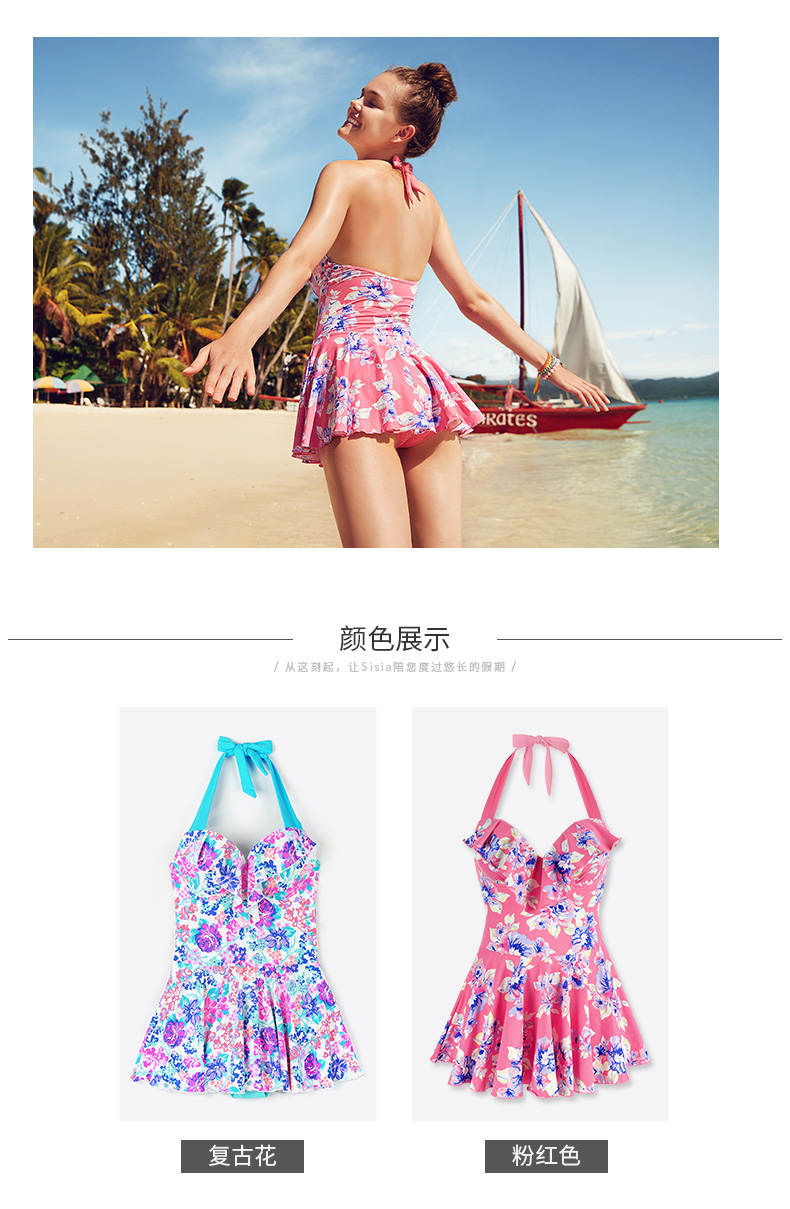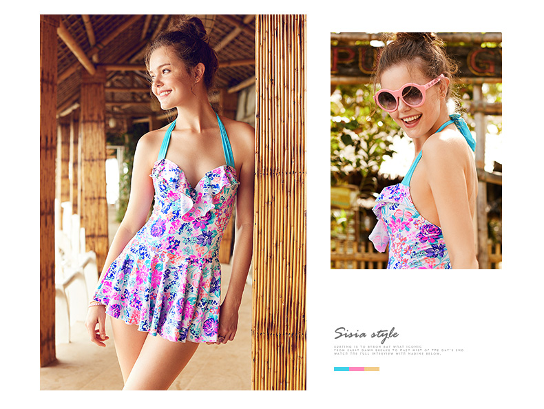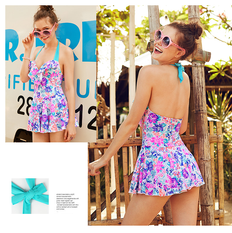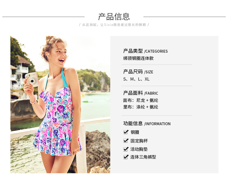 | 袖长: 无袖 | 款式: 裙式连体泳衣 |