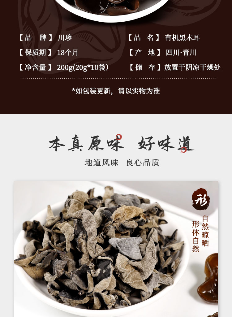 【四川】川珍 有机黑木耳200g/袋