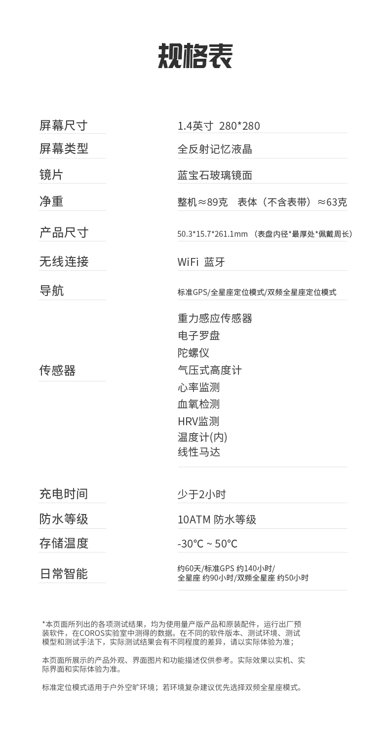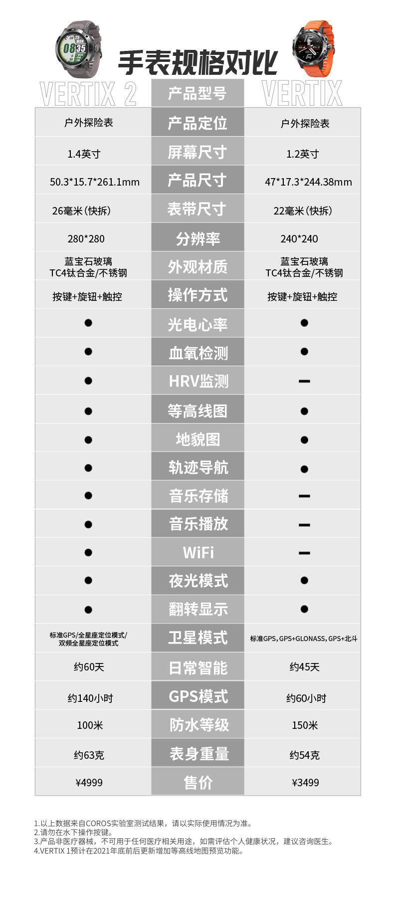 COROS 高驰 VERTIX2 户外探险手表 ECG心电 心率血氧地图 音乐功能