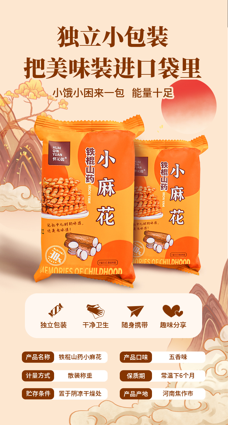 怀沁园 铁棍山药小麻花(散装称重)约30g/袋*30/箱