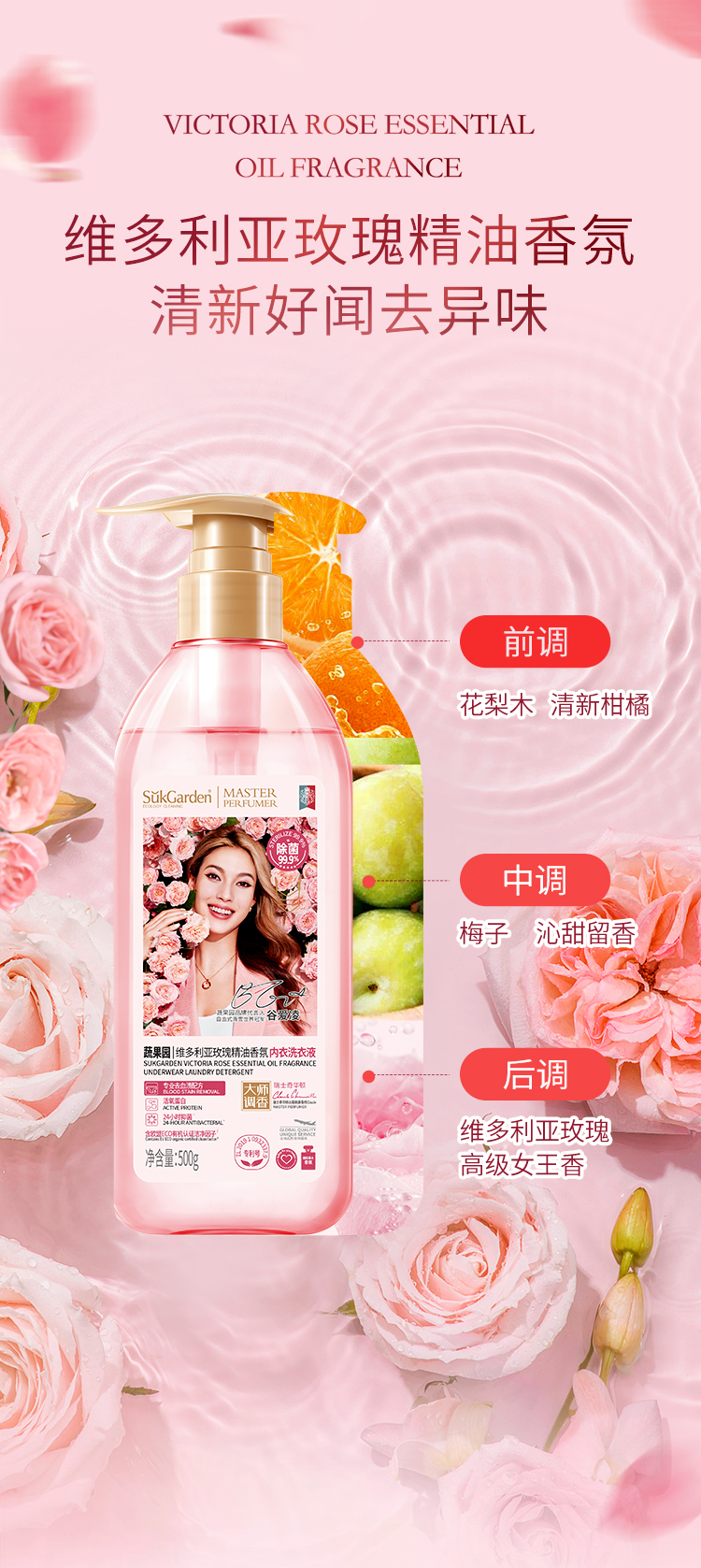 蔬果园维多利亚玫瑰精油香氛内衣洗衣液