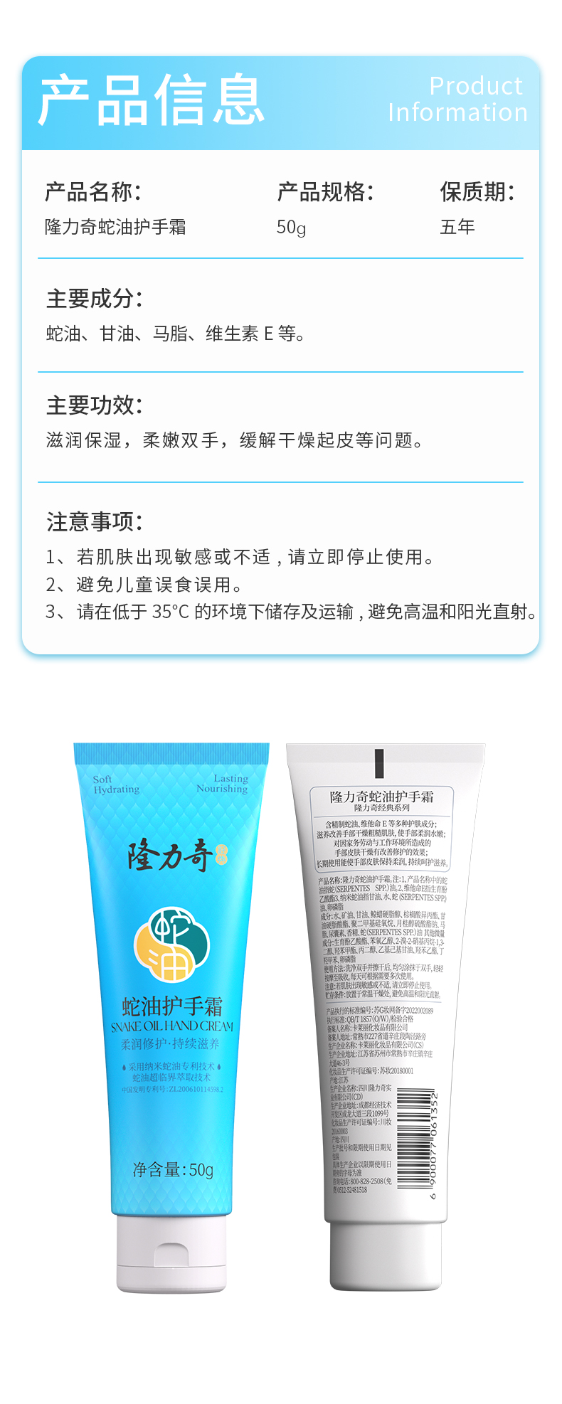 隆力奇蛇油护手霜50g滋润保湿润手霜防裂防干燥补水