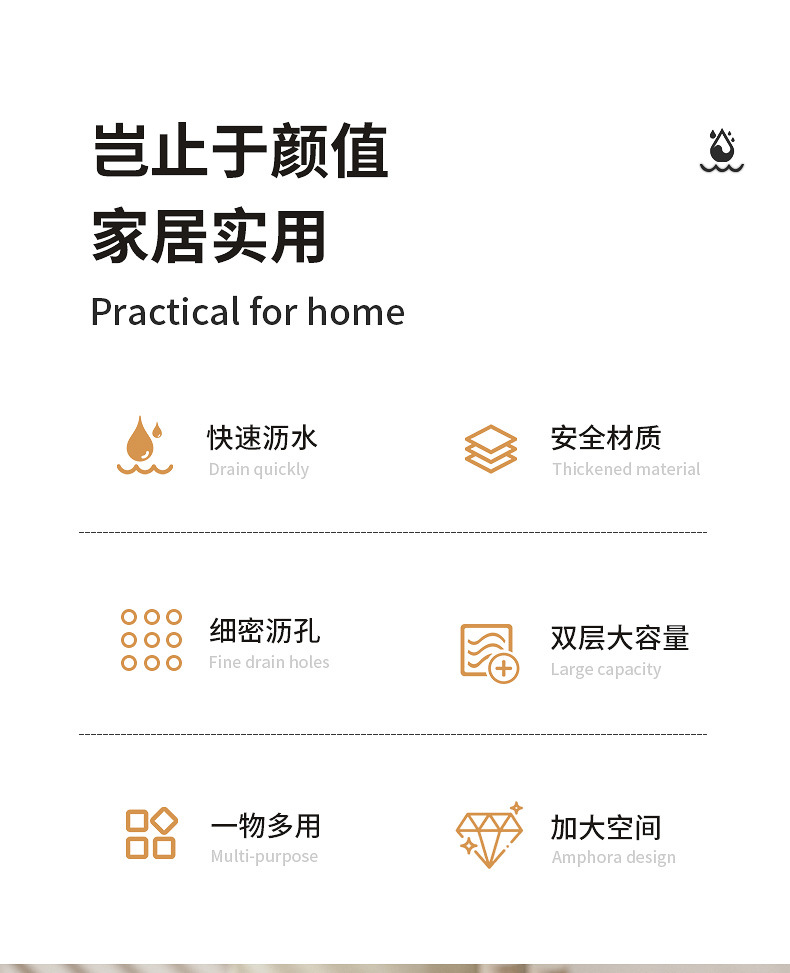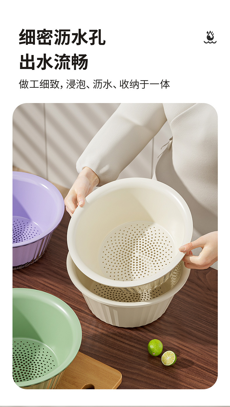 【食品级材质,夏日厨房必备!】新款双层果蔬沥水篮容量NYC,体积小巧方便收纳。一物多用。淘米、水果、蔬菜洗净无残留,掀盖立刻分离水与菜,八快速沥水让清洗再简单不过!