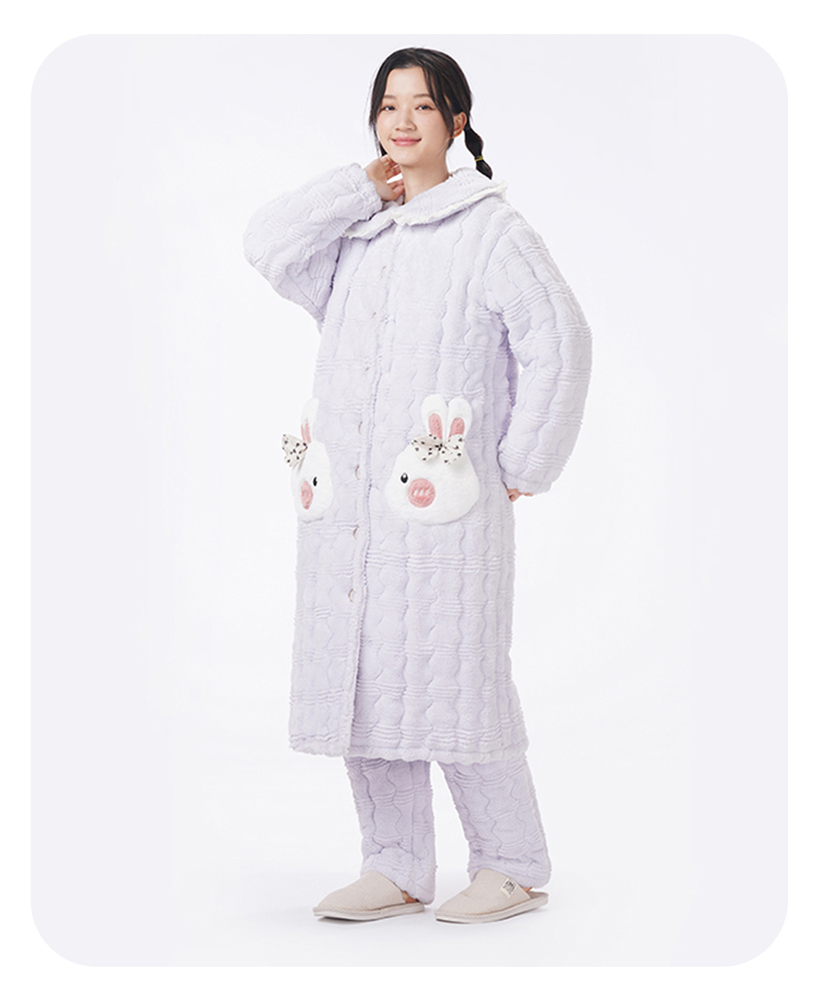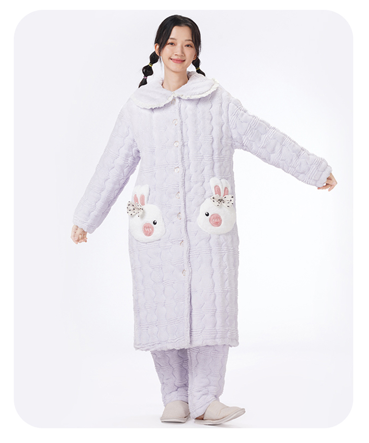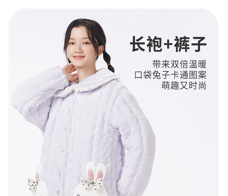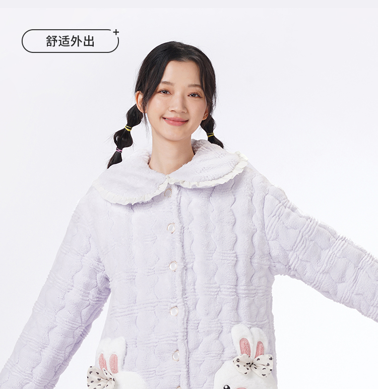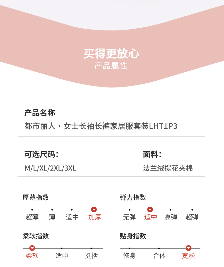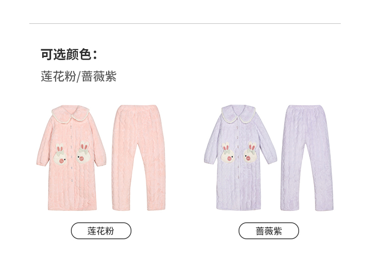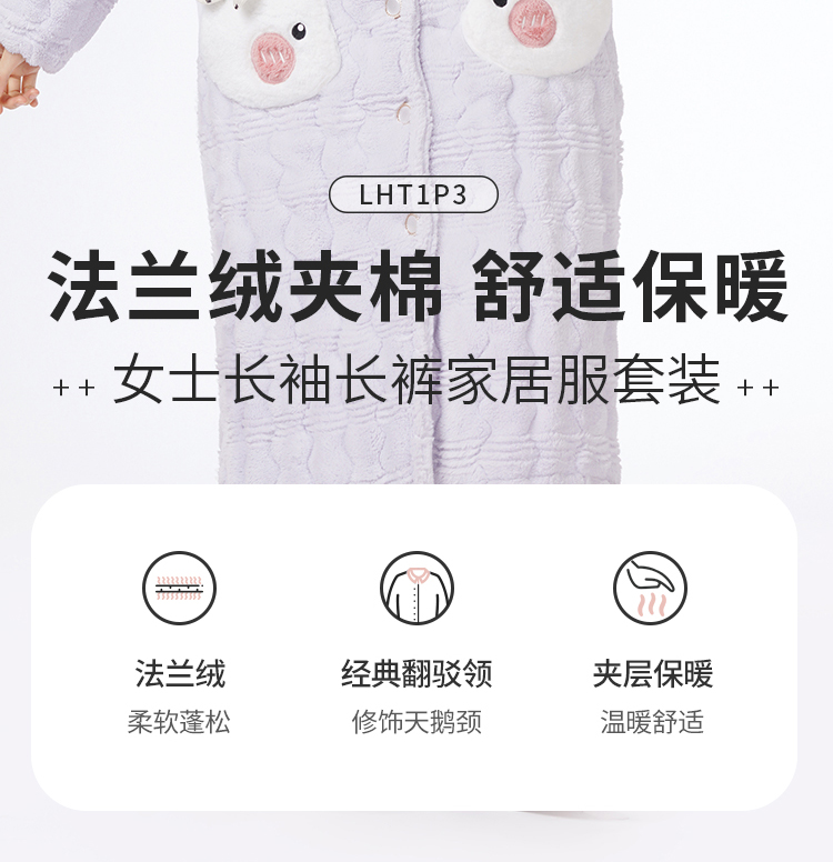 都市丽人睡衣夹棉系列长袖家居服法兰绒提花夹棉加厚女士夹棉套装LHT1P3