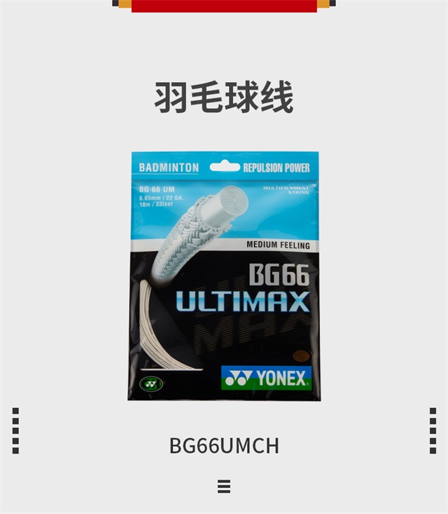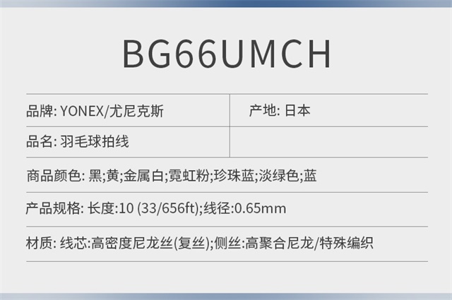 尤尼克斯羽弦-BG66UMCH(高弹性) 球拍线 羽毛球线 羽弦