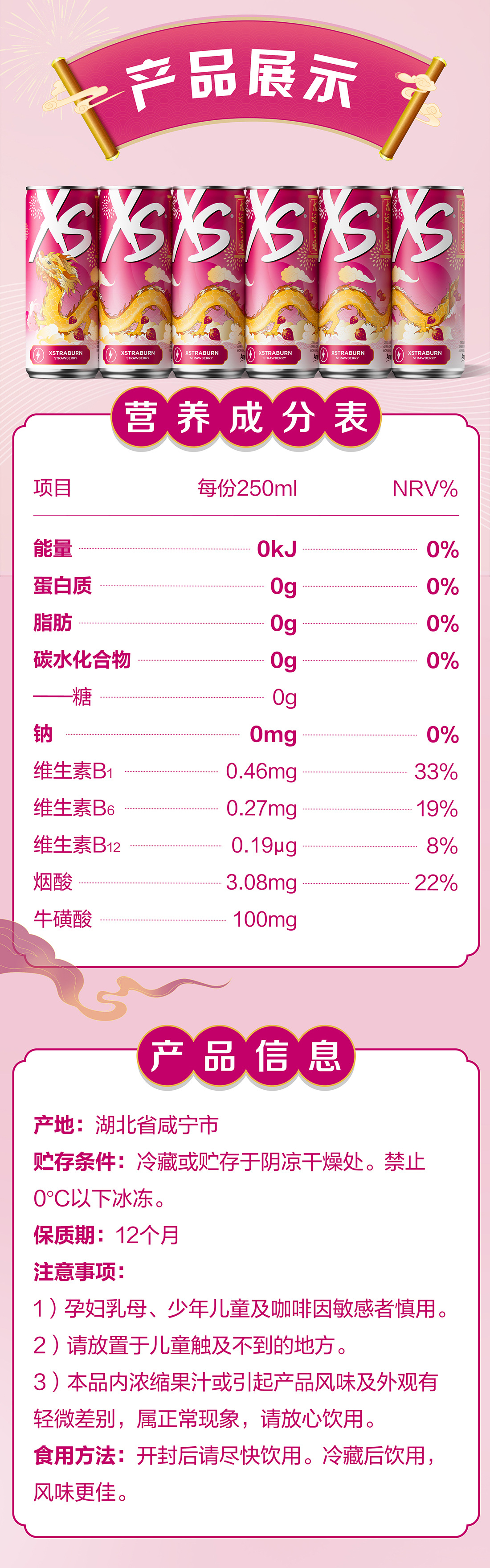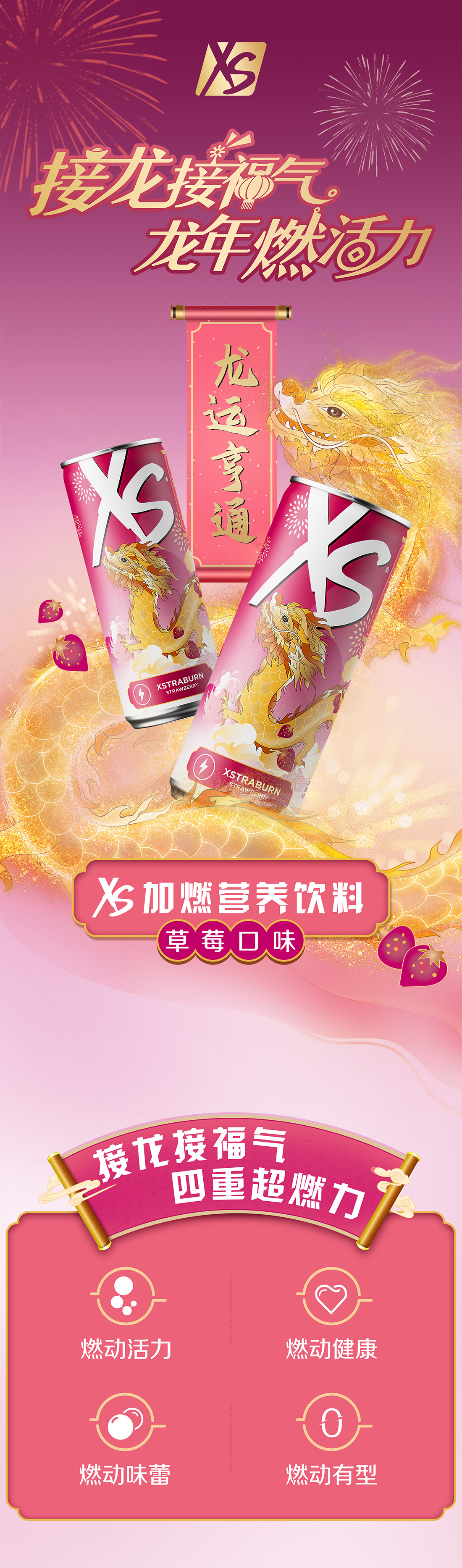 安利XS加燃营养饮料草莓口味 (龙年限量版) [XS龙罐]