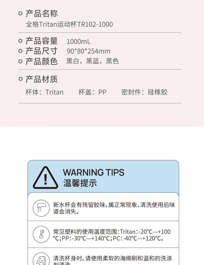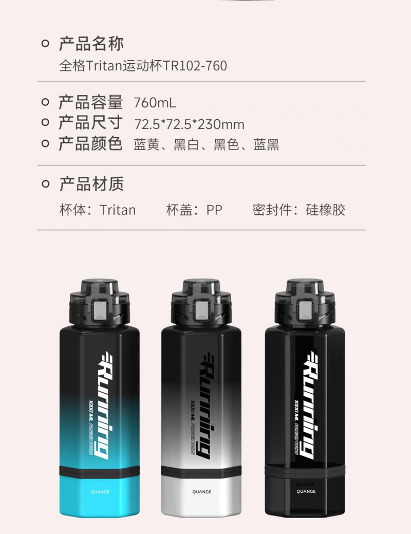 【自营】全格 Tritan运动水杯子水壶【容量:760mL】 TR102-1000