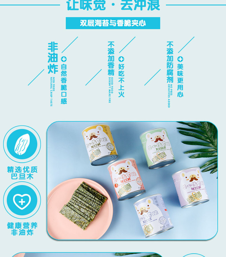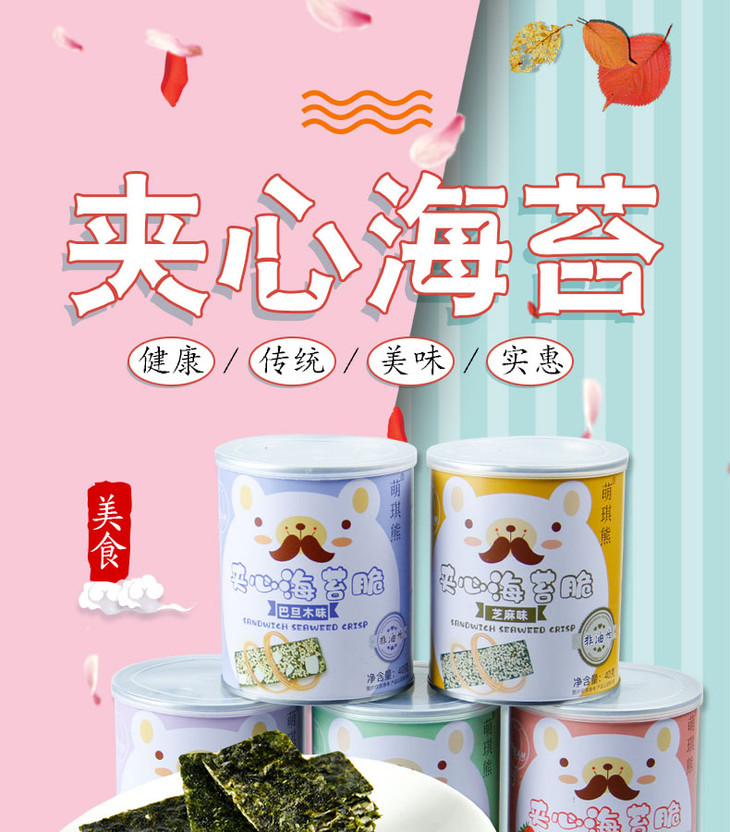 【19.9元5罐】萌琪熊芝麻夹心海苔夹心脆40g罐装*5罐