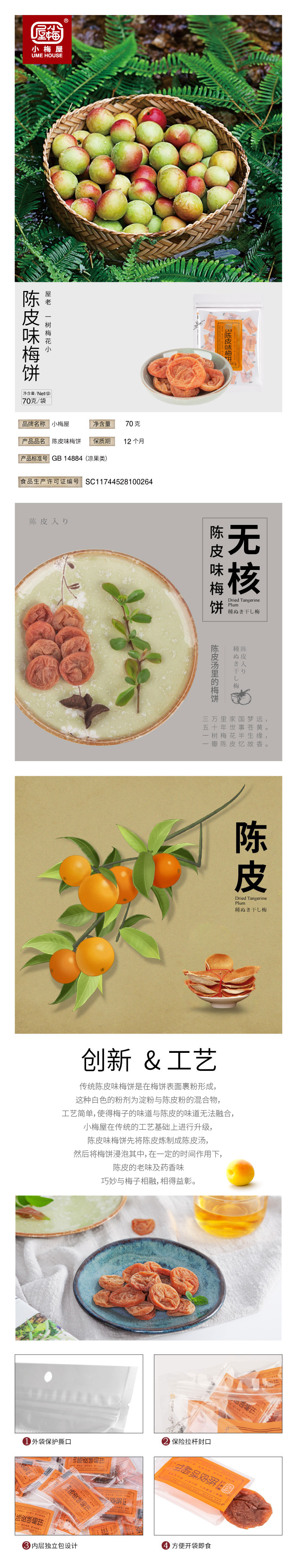 小梅屋陈皮味梅饼70g小梅屋蜂蜜味梅饼80g小梅屋六味老梅干80g