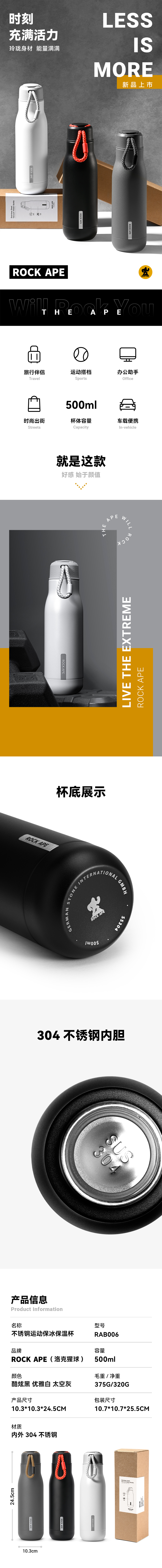 【自营】洛克猩球不锈钢运动保冰保温杯白
