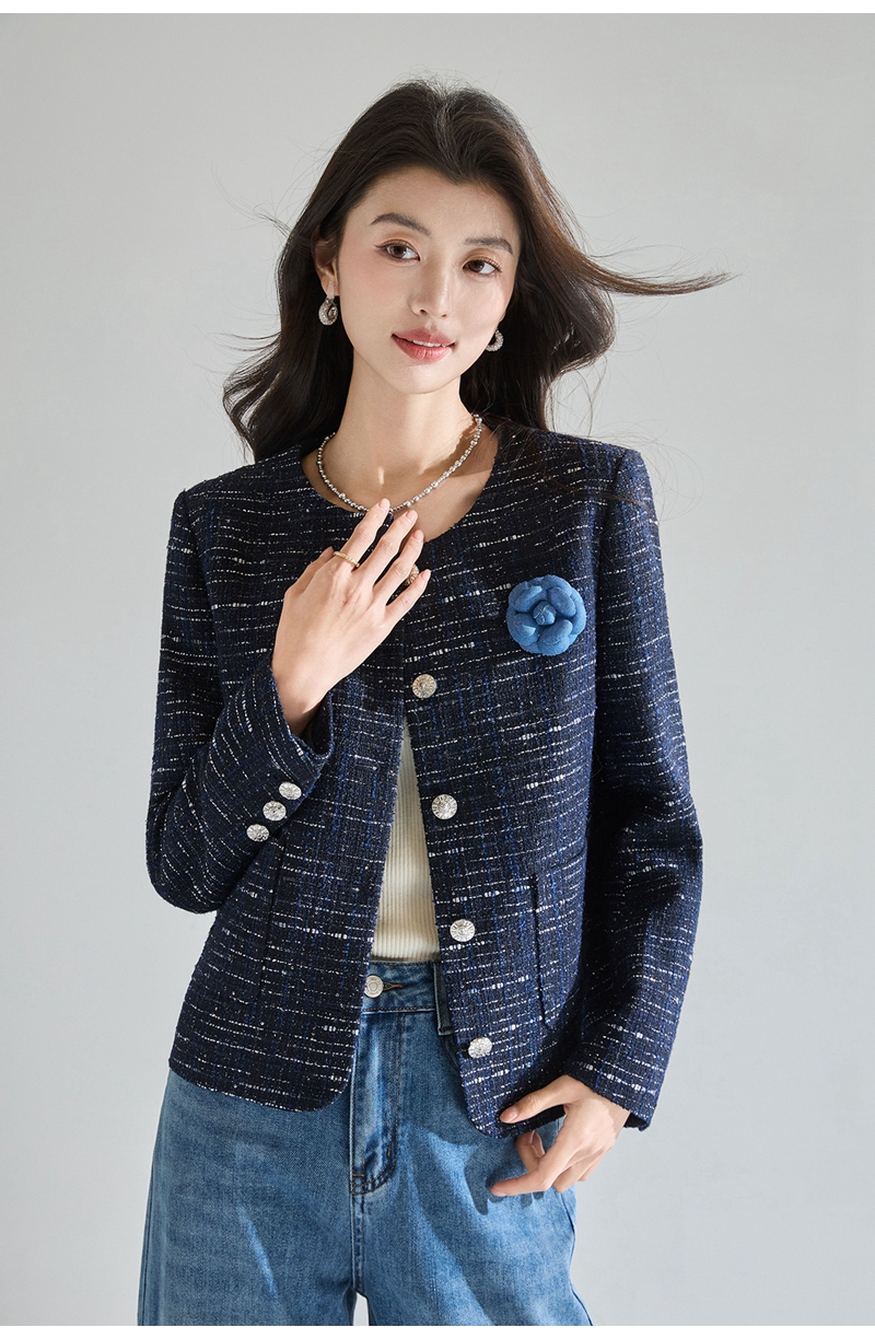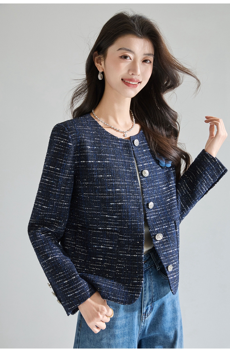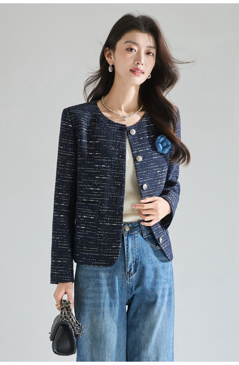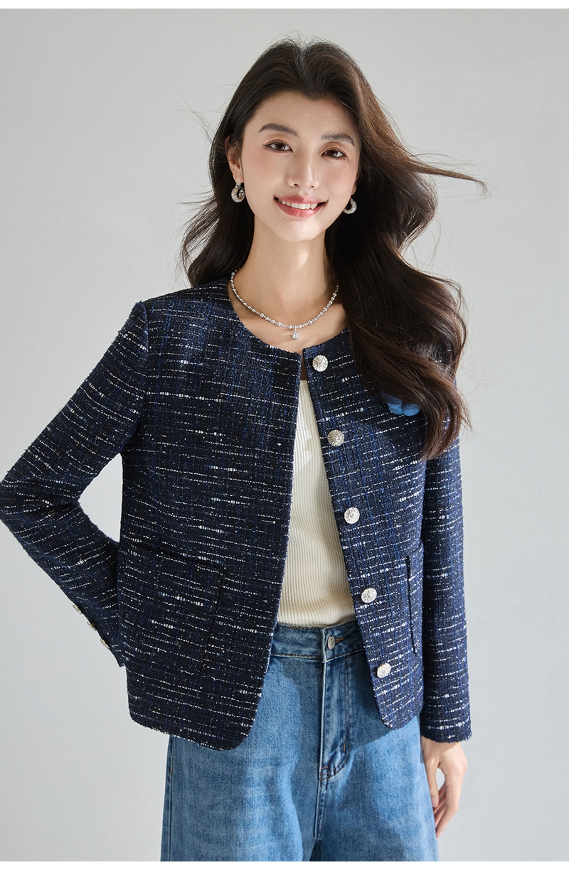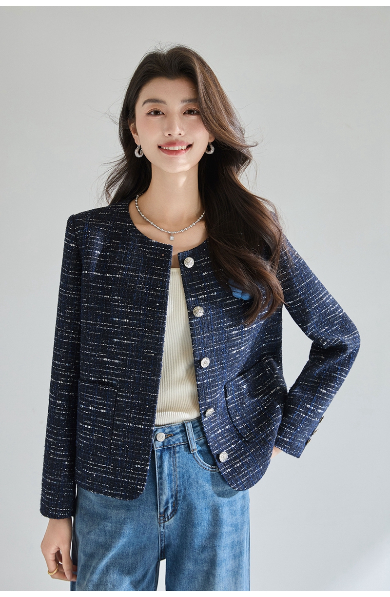 2026春装 闪片小香风圆领长袖单排扣短外套