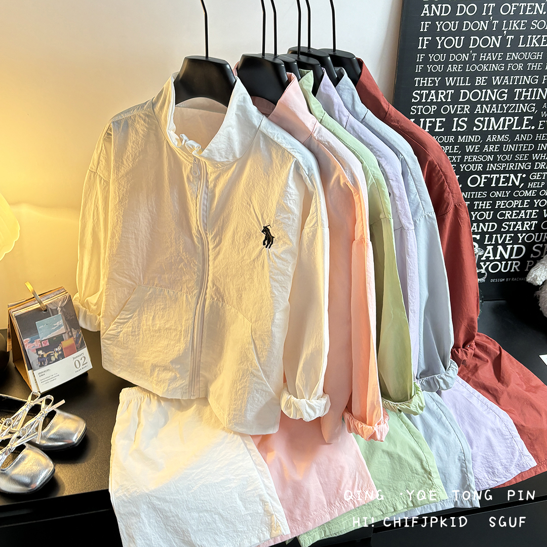 【紧急紧急❗︎夏日必备防晒一套仅需39.9元】90-160码儿童夏季防晒服套装男童运动上衣短裤两件套女宝宝薄款拉链皮肤衣