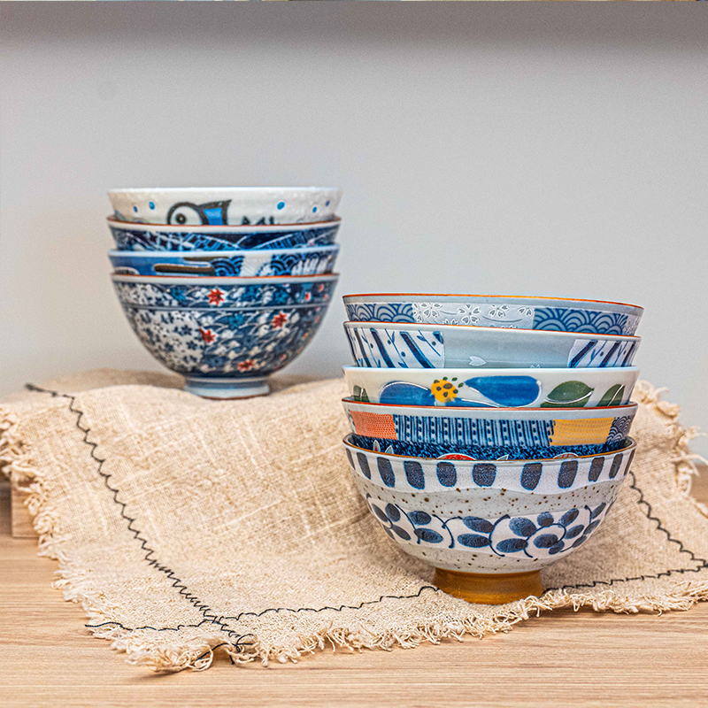 日本进口美浓烧釉下彩工艺陶瓷饭碗散件餐具任选